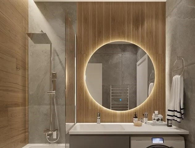 Зеркало для ванной AuraMira круглое зеркало с антизапотеванием , 65 см х 65 см
