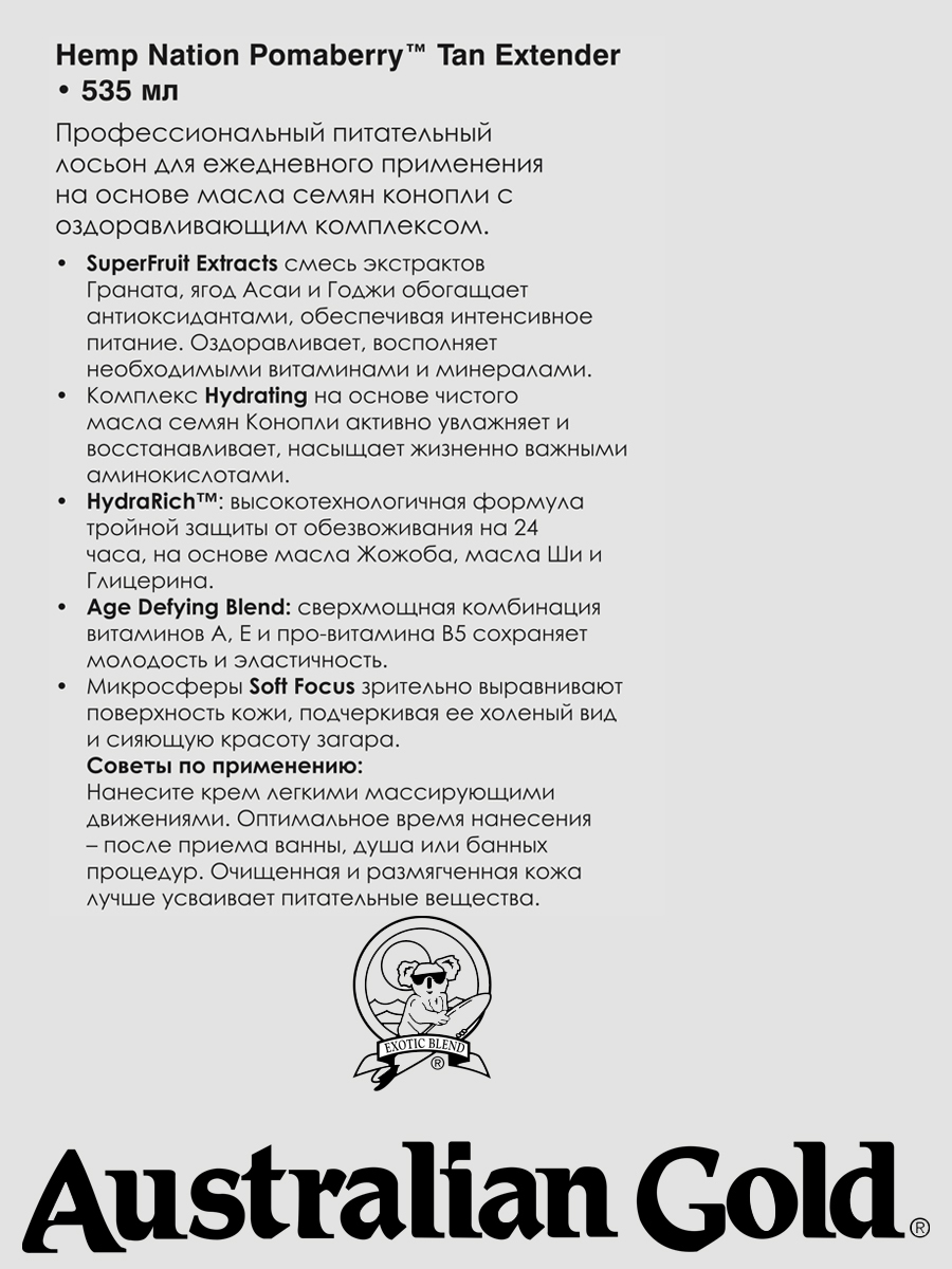 Australian Gold Лосьон для тела увлажняющий Hemp Nation Wild Berries & Lavender, 535 мл, США