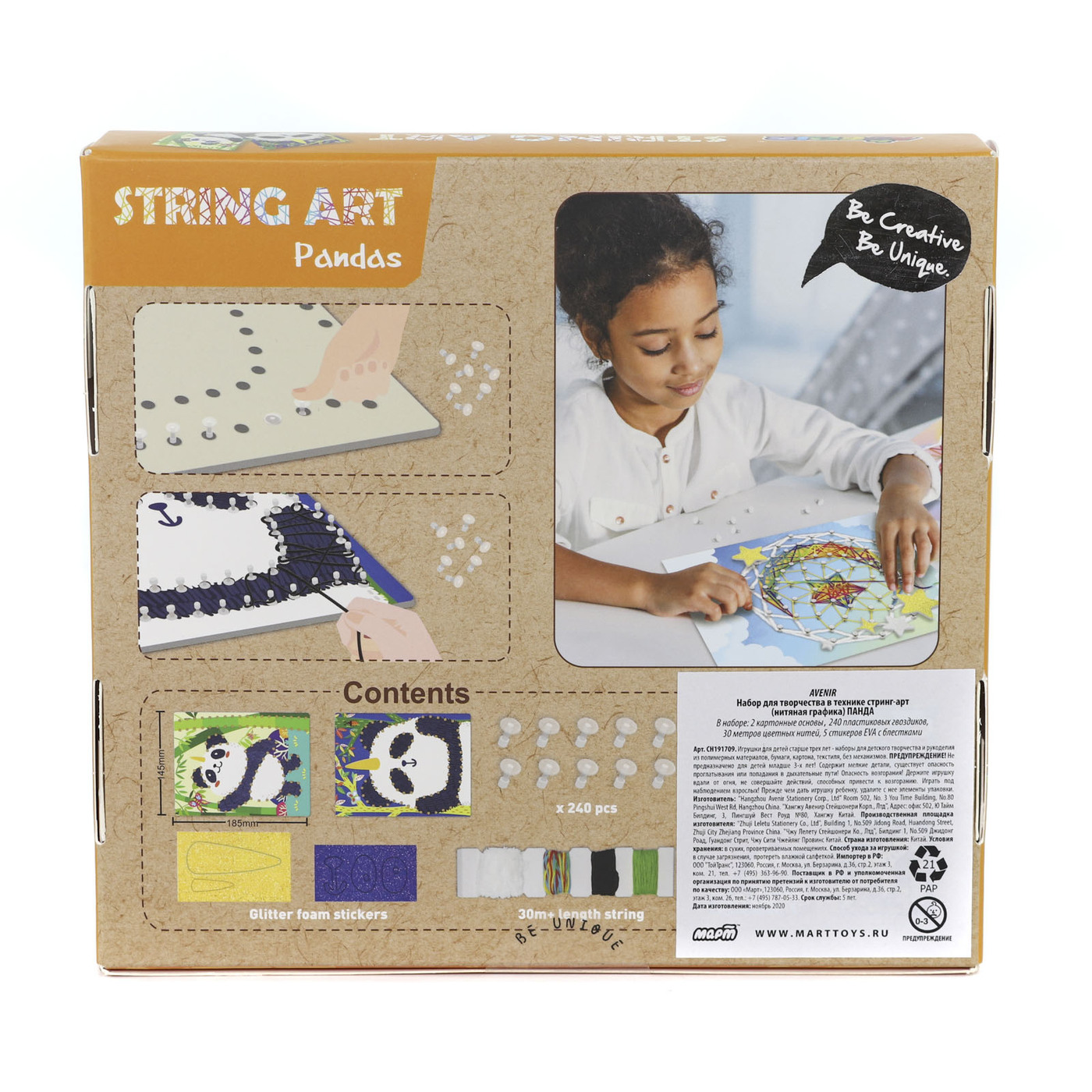 Набор для творчества Avenir Art в технике стринг-арт (нитяная графика) ПАНДА, 2 панно 14,5Х18,5 см