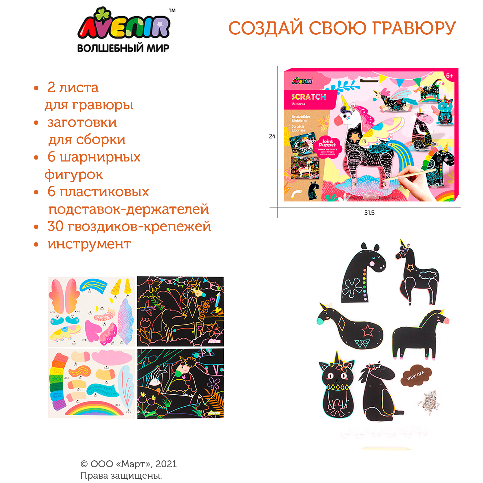 Набор для создания гравюры Avenir Art Шарнирные игрушки ЕДИНОРОГИ, 6 фигурок