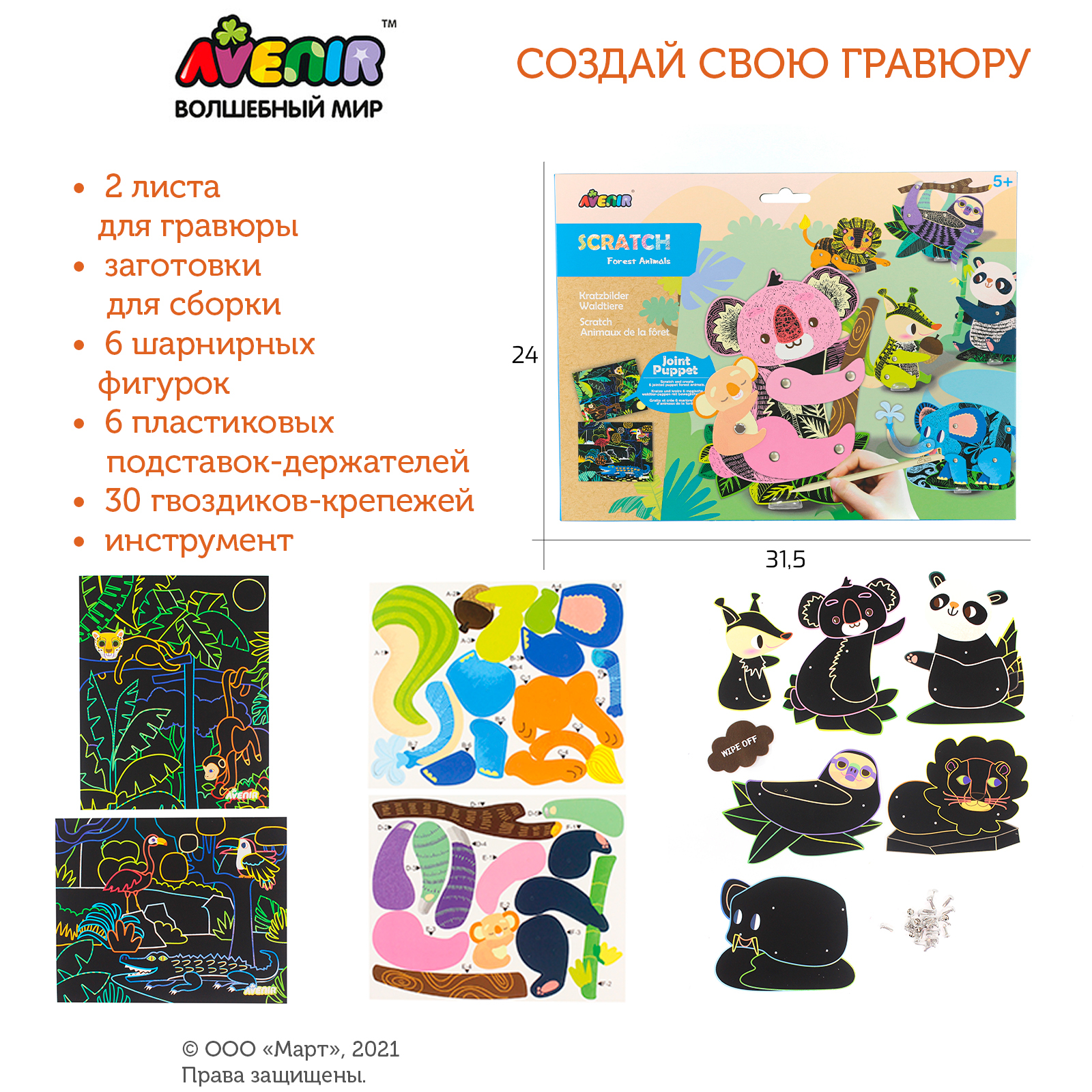 Набор для создания гравюры Avenir Art Шарнирные игрушки ЛЕСНЫЕ ЖИВОТНЫЕ, 6 фигурок