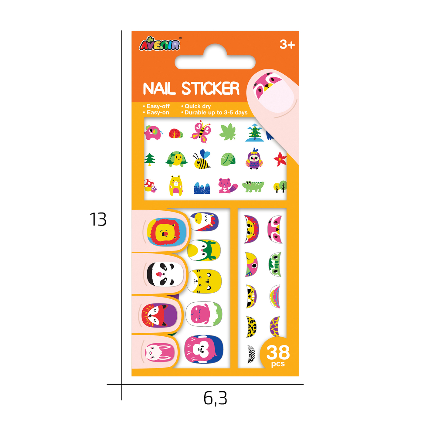 Наклейки на ногти детские Avenir Art ЖИВОТНЫЕ, 38 шт