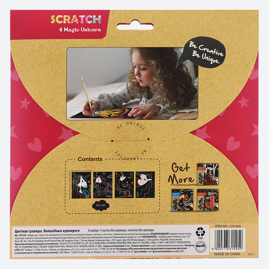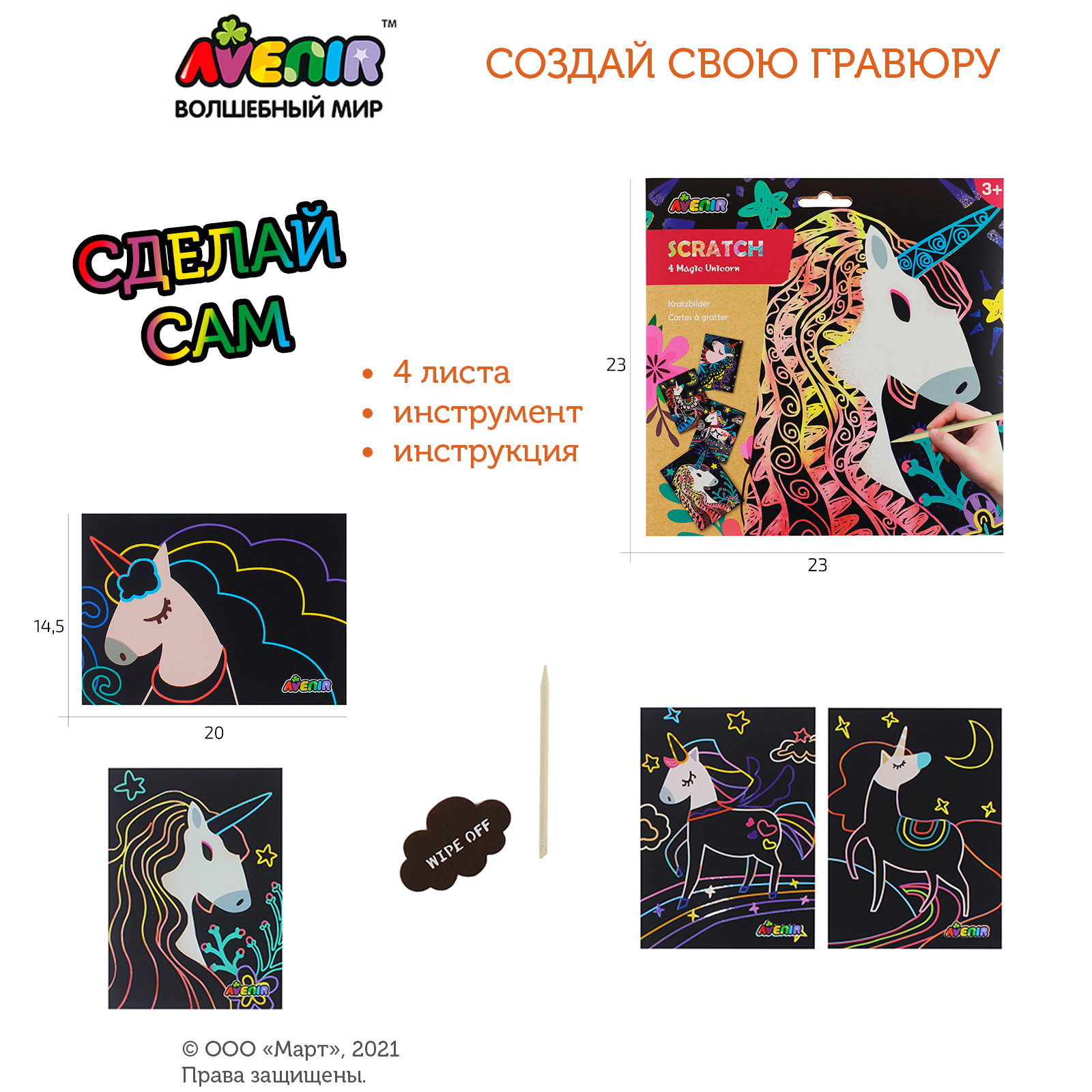 Набор для создания гравюры Avenir Art ВОЛШЕБНЫЕ ЕДИНОРОГИ, 4 листа
