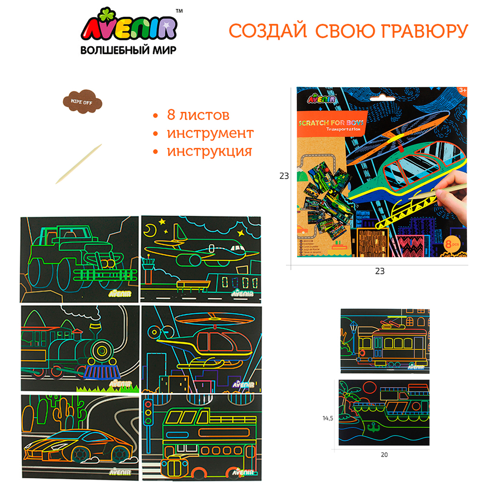 Набор для создания гравюры Avenir Art ТРАНСПОРТ, 8 листов