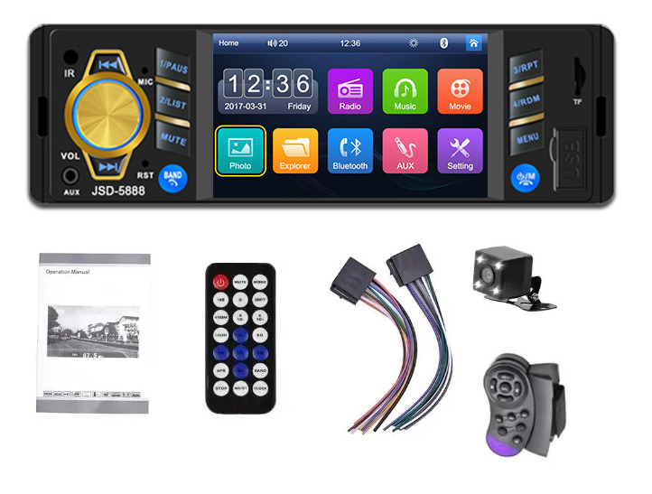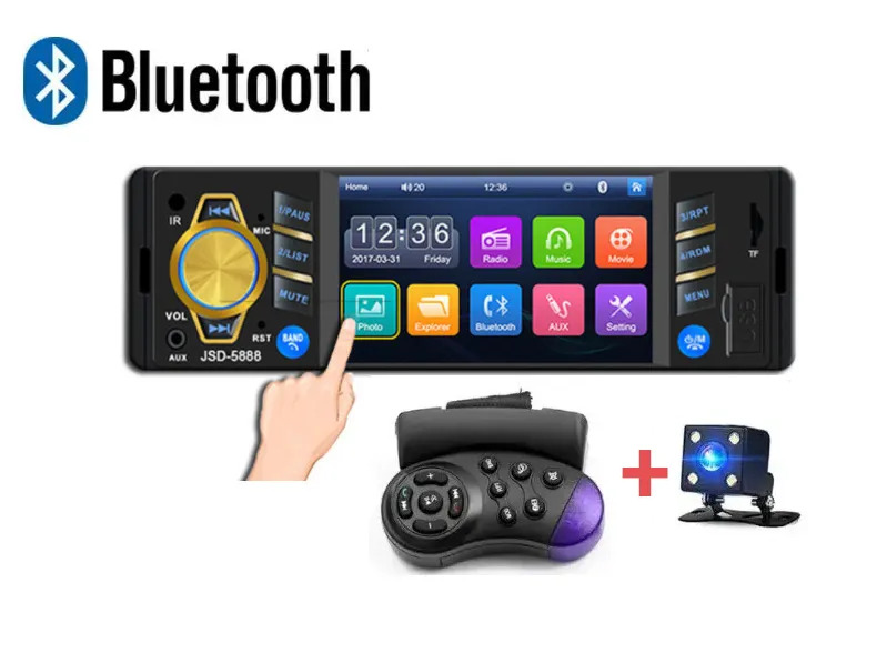 Автомагнитола 1Din GT-44 (Сенсорная) Bluetooth, AUX, SD, USB, Пульт на руль + КАМЕРА заднего вида