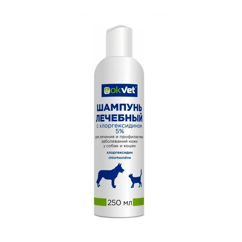 Шампунь Okvet с хлоргексидином 5% для кошек и собак, 250 мл