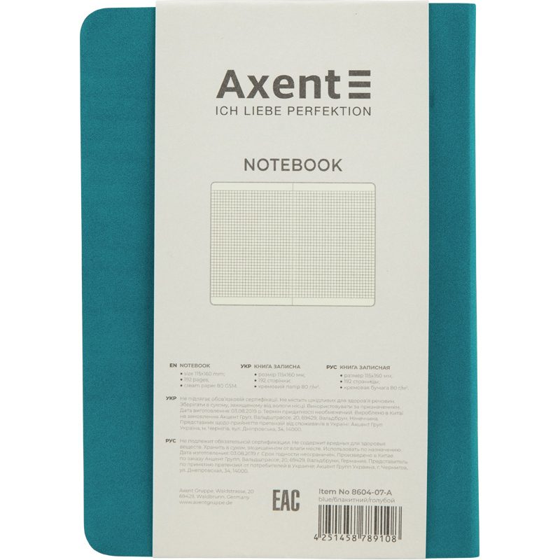 Записная книга Axent Nuba Soft в клетку, 115 x 160 мм, 96 листов, голубая