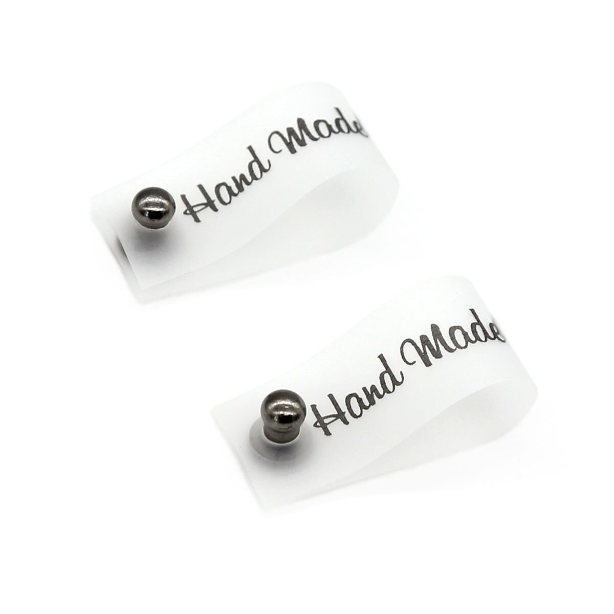Силиконовая бирка Hand Made с кнопкой черная печать 1,5*7 см, 4 шт, Айрис