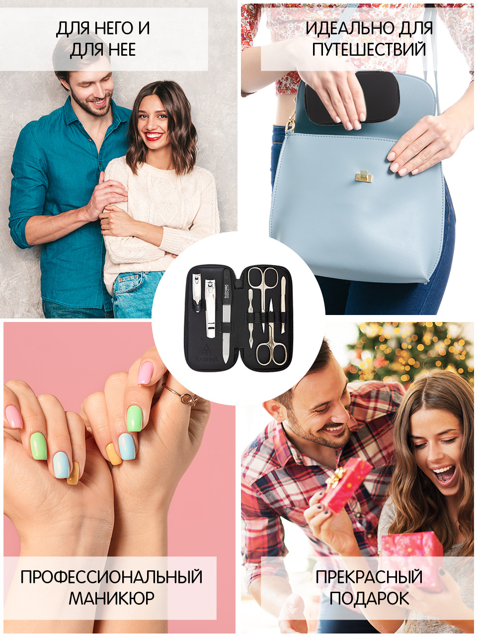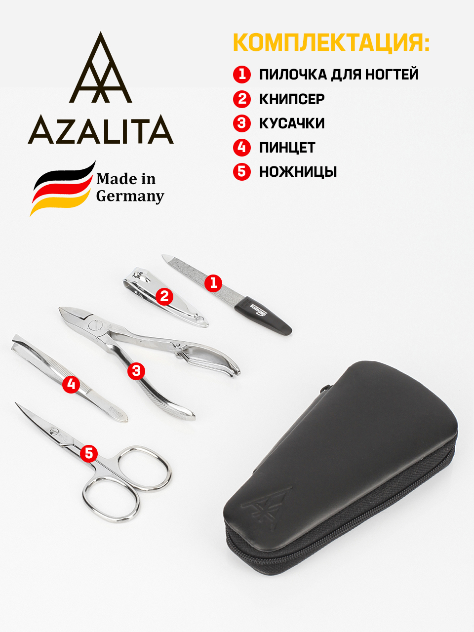 Azalita / Профессиональный маникюрный набор, 5 предметов / Набор для маникюра, педикюра с кусачками