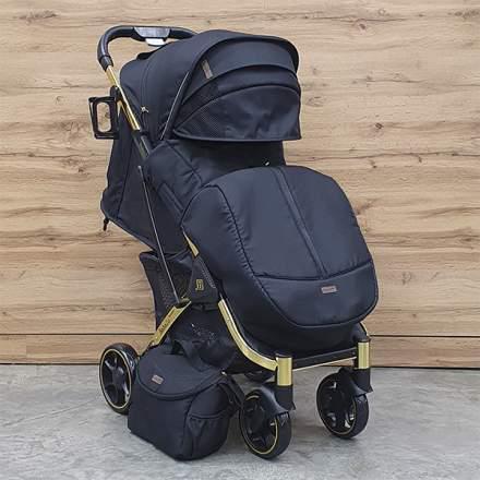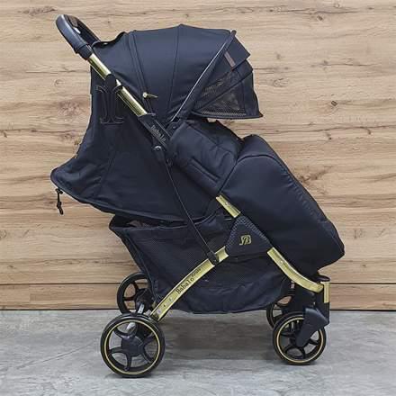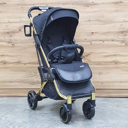 Детская коляска Babalo Future 2022 Механическая спинка Черная с золотыми полосками белая рама