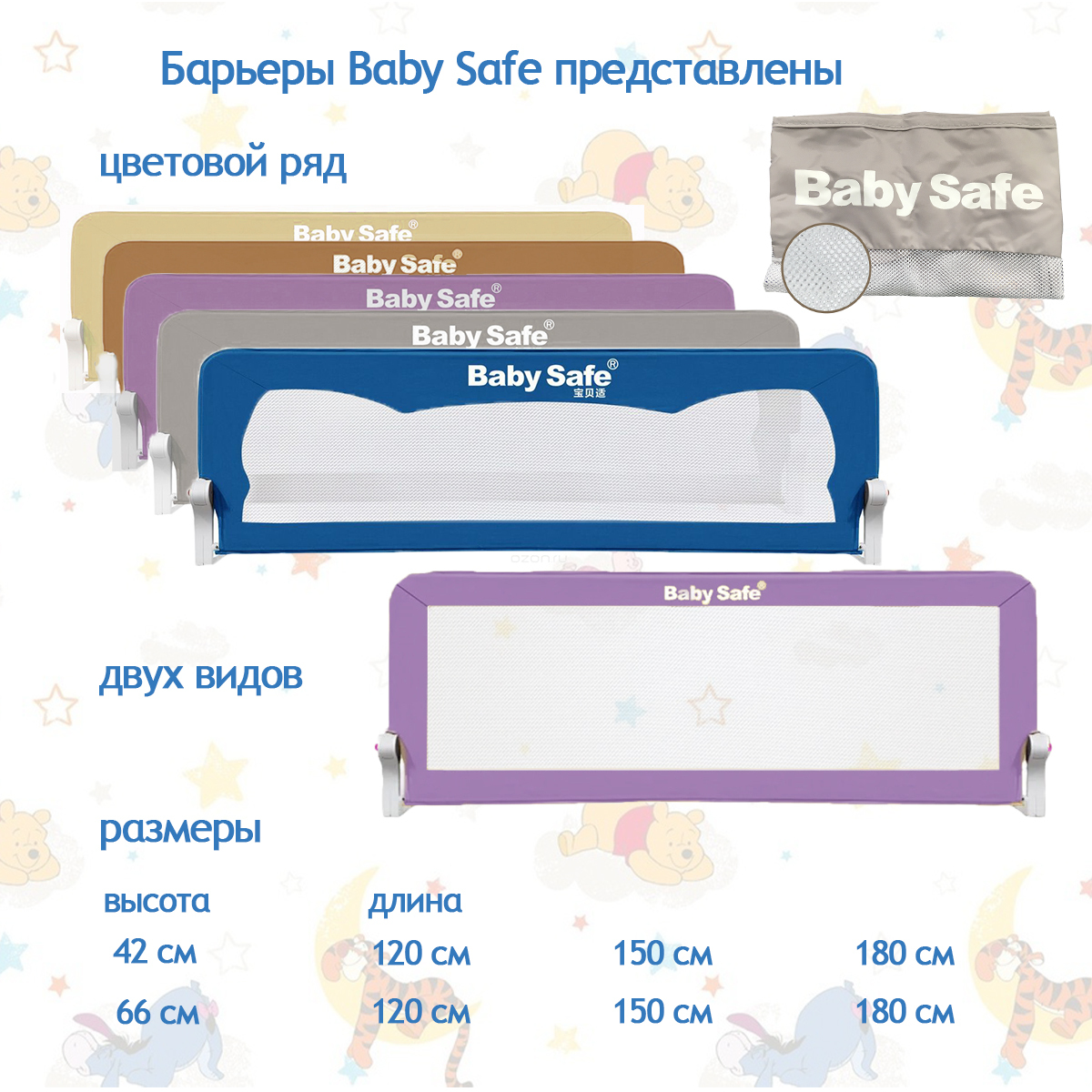 Барьер защитный для кроватки Baby Safe складной "Ушки" 150х42 см серый