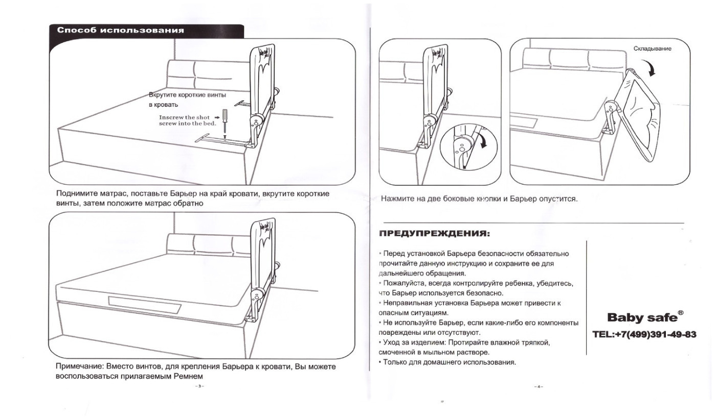 Барьер защитный для кроватки Baby Safe складной 120х42 см бежевый . Уцененный товар