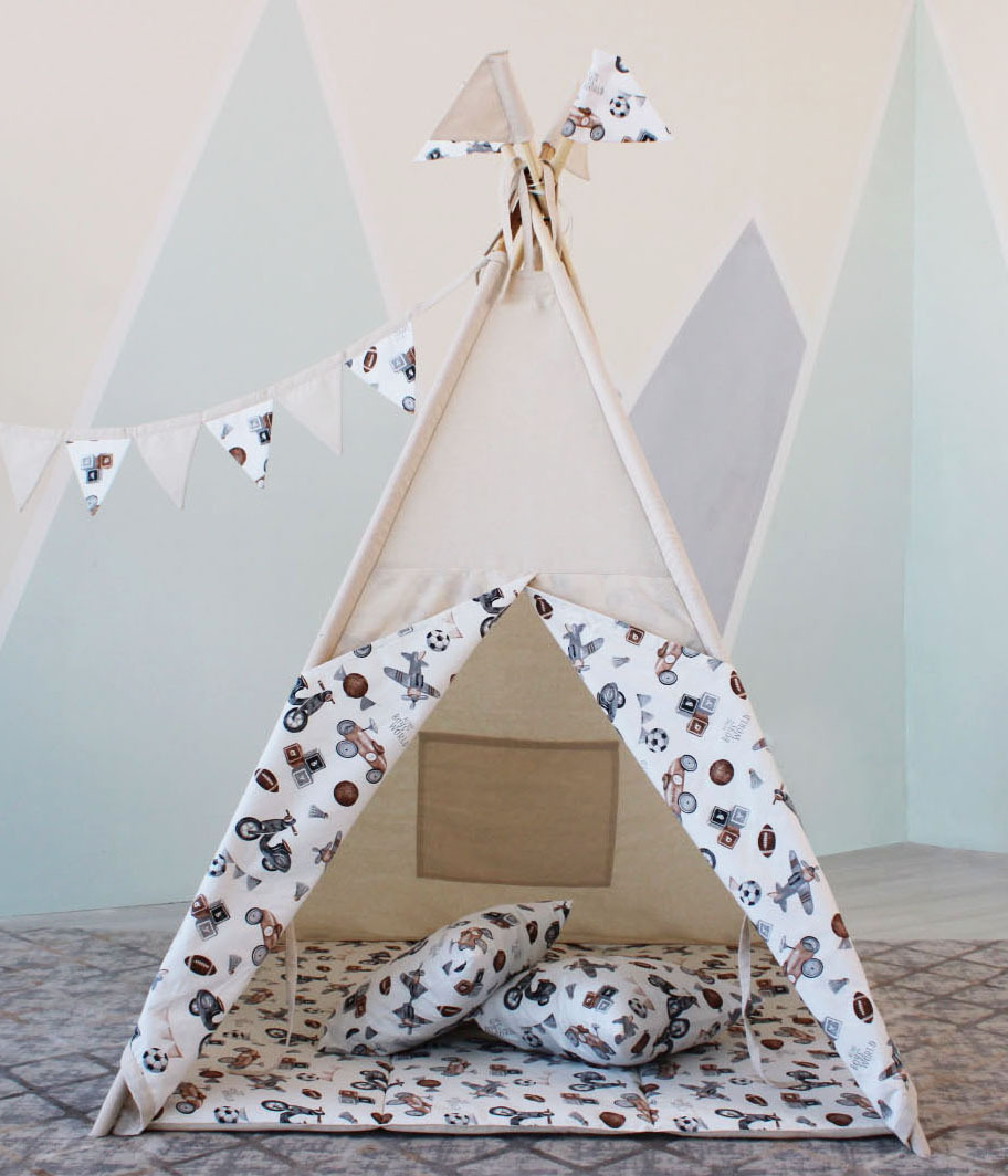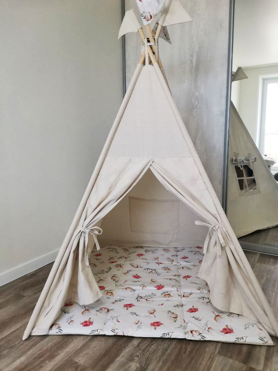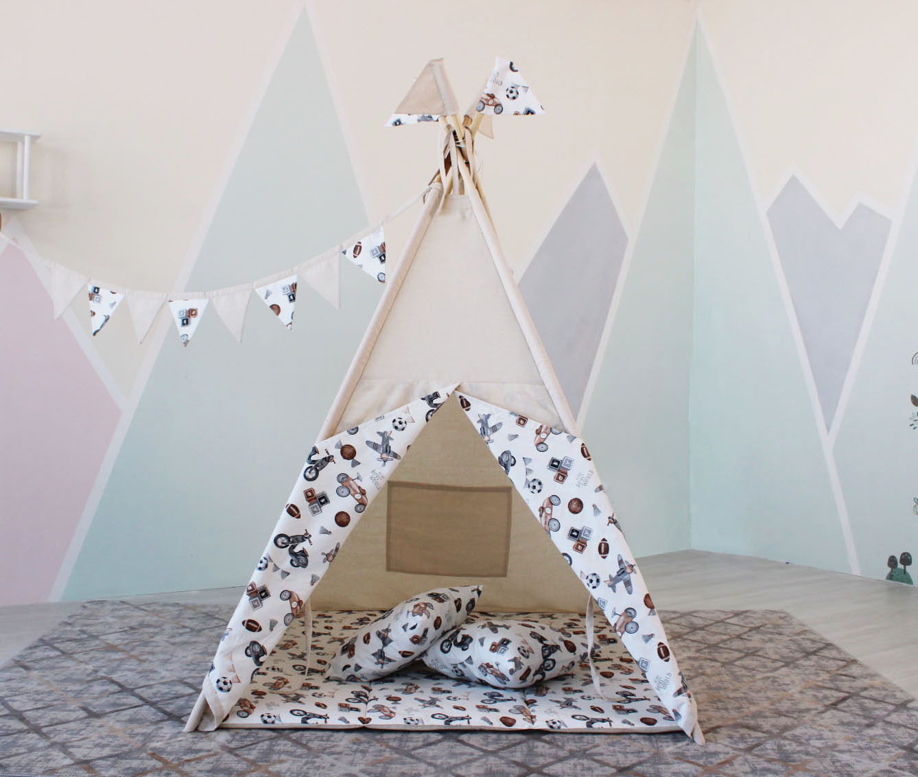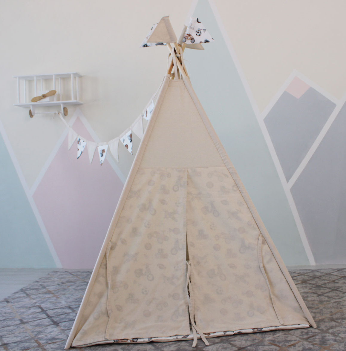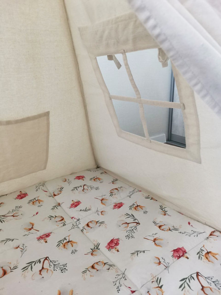 Детский вигвам Хлопковый РЕТРО, с окошком, ковриком и системой антискладывания (стартовый комплект)