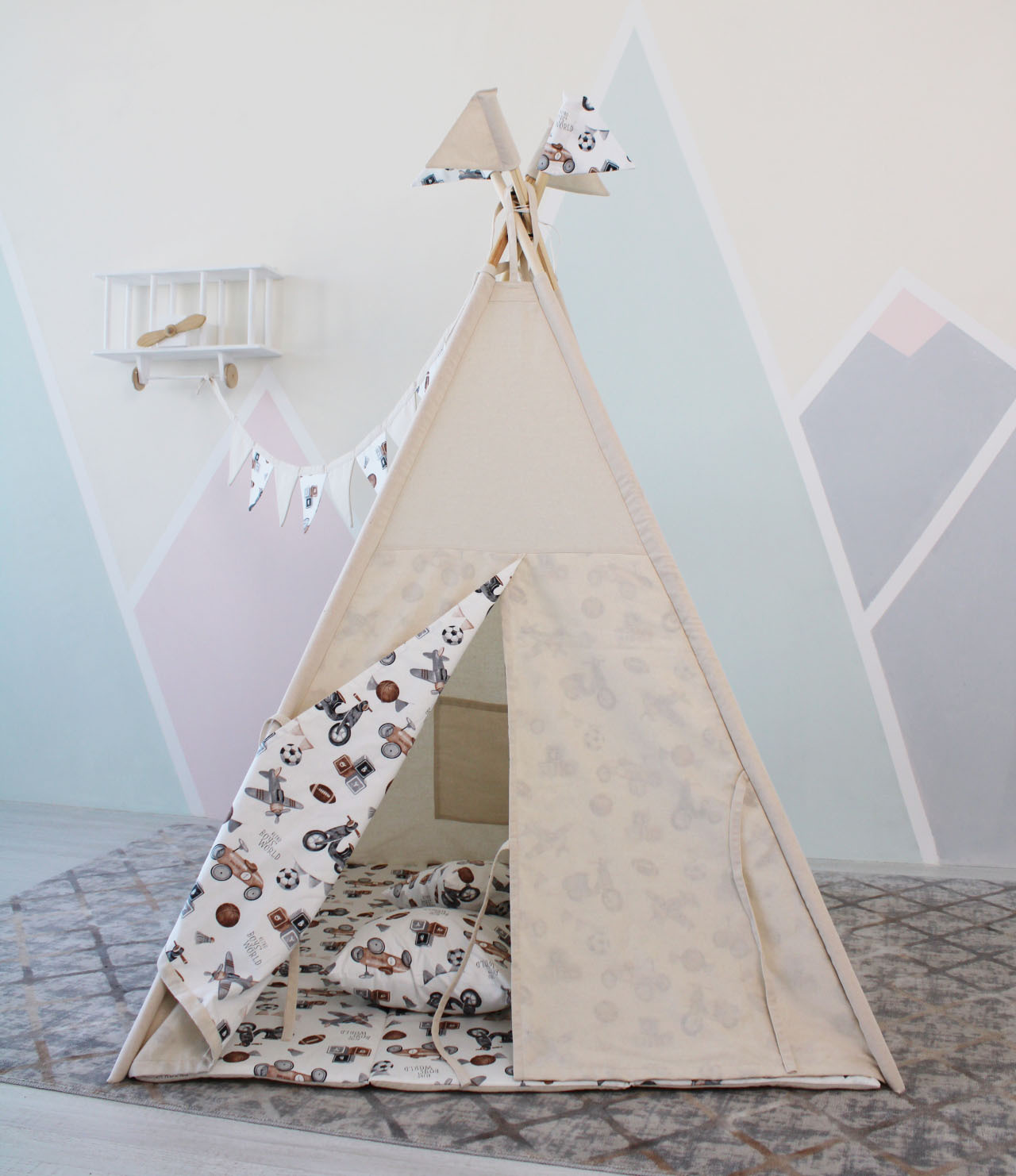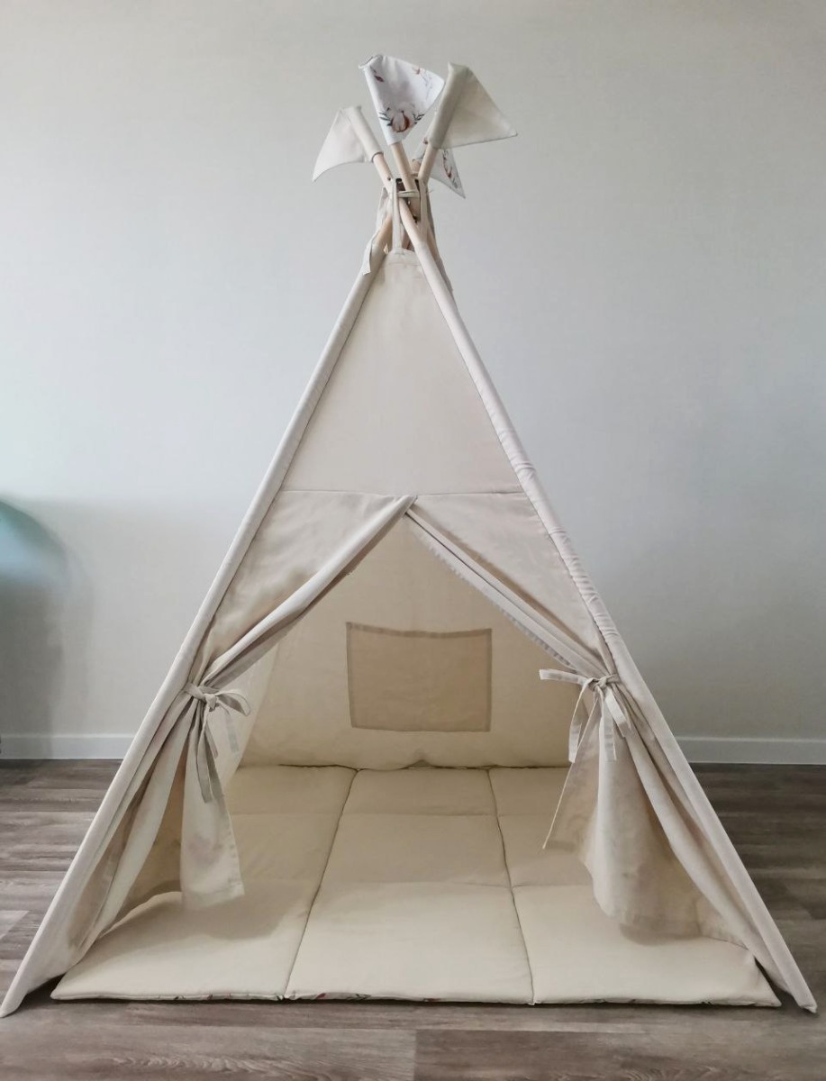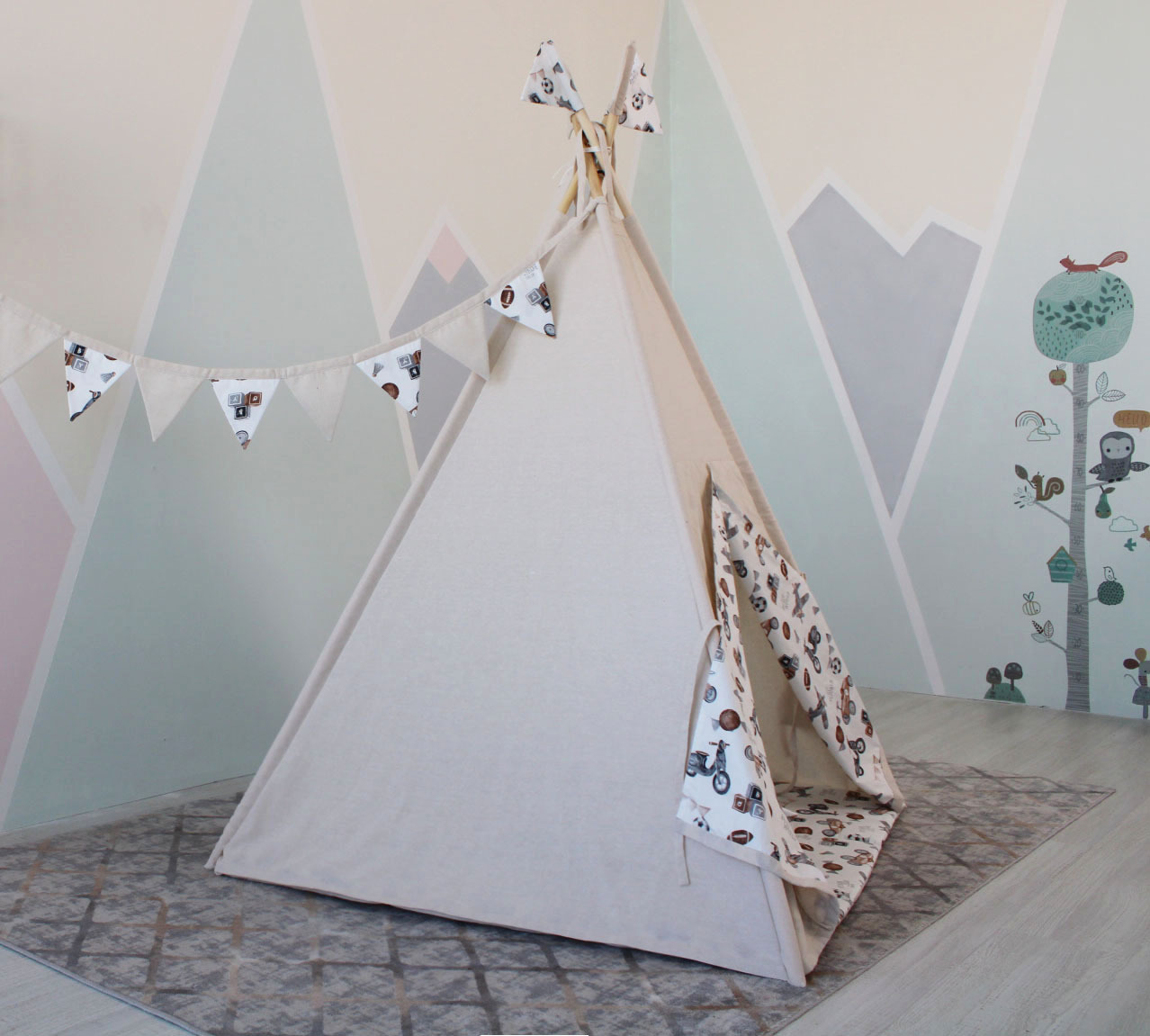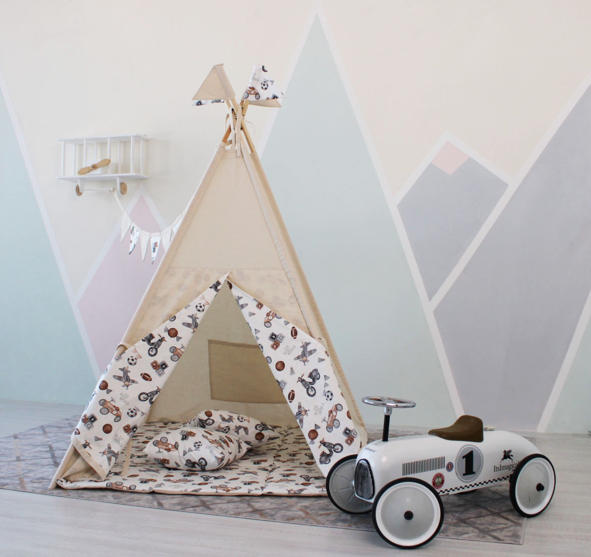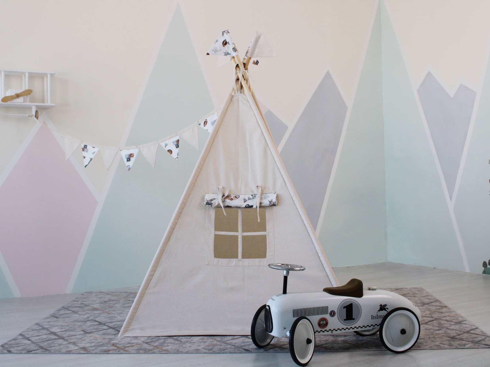 Детский вигвам Хлопковый РЕТРО, с окошком, ковриком и системой антискладывания (стартовый комплект)
