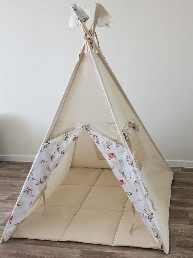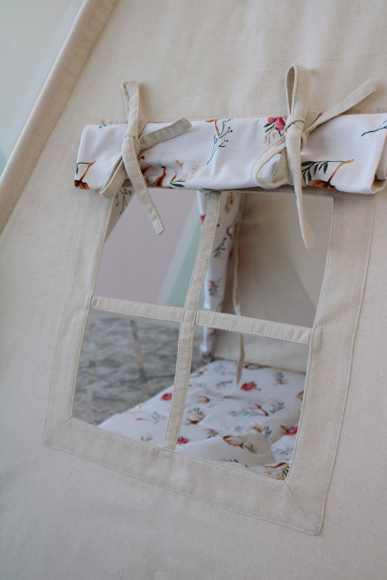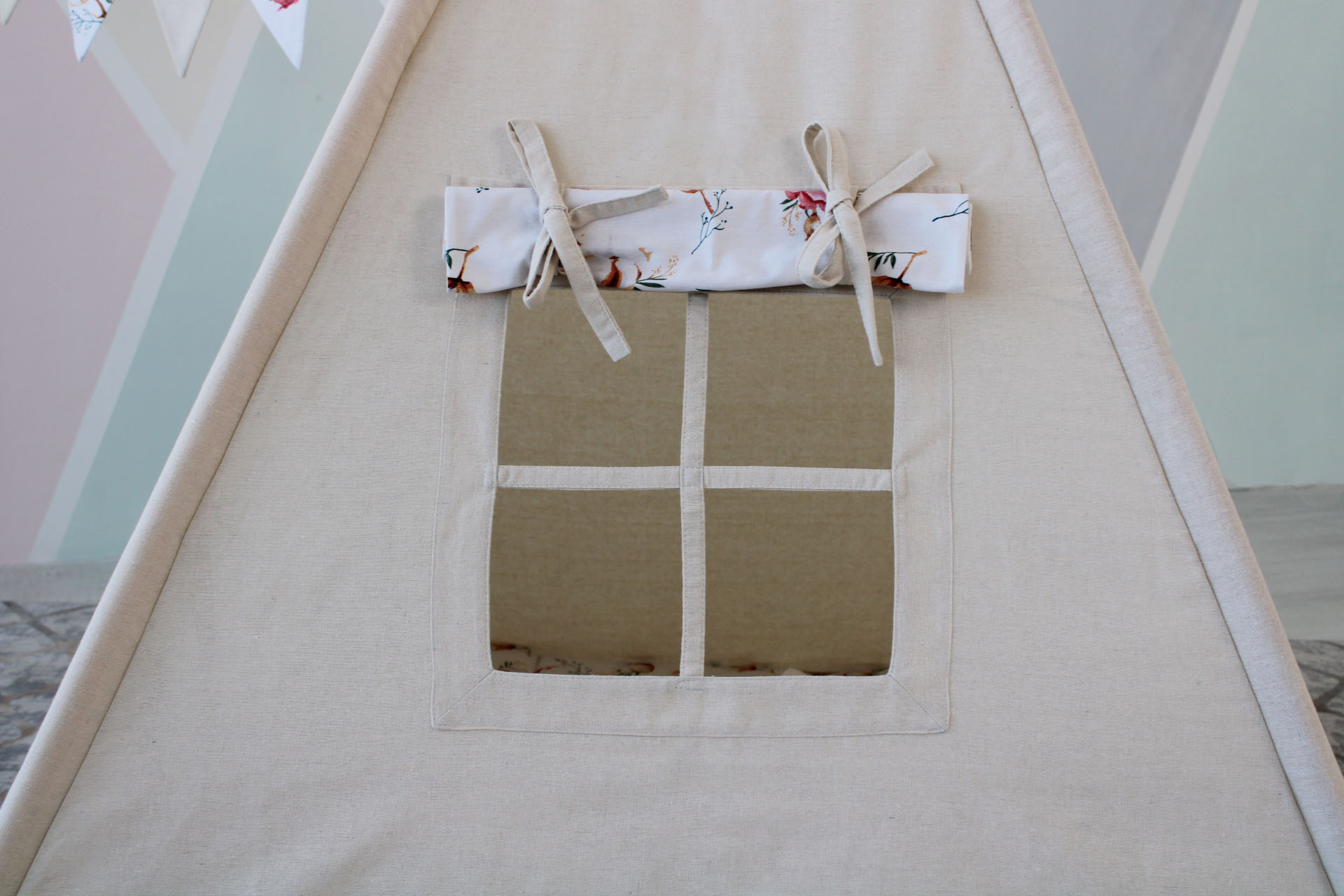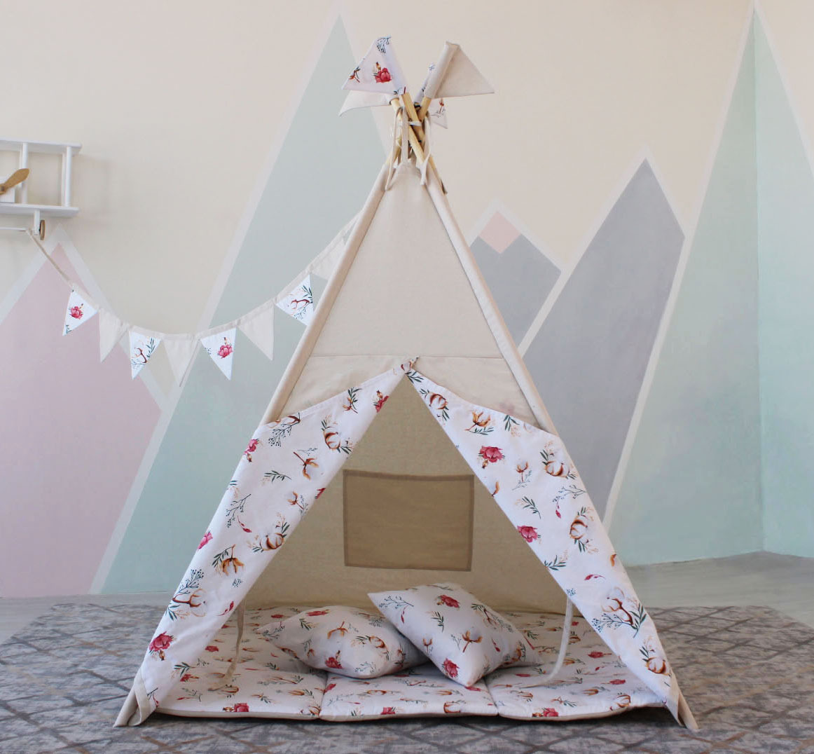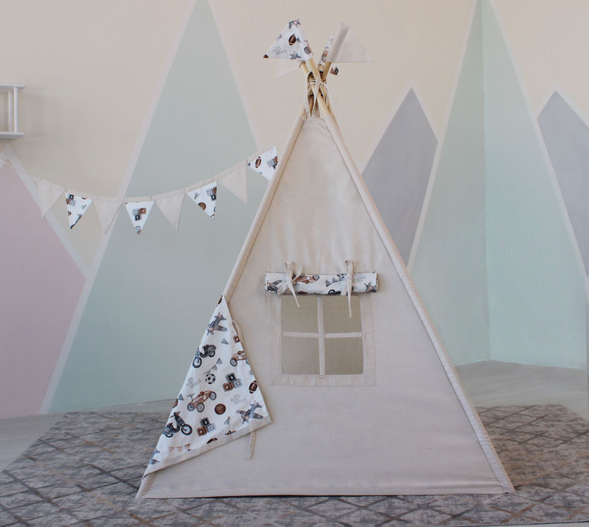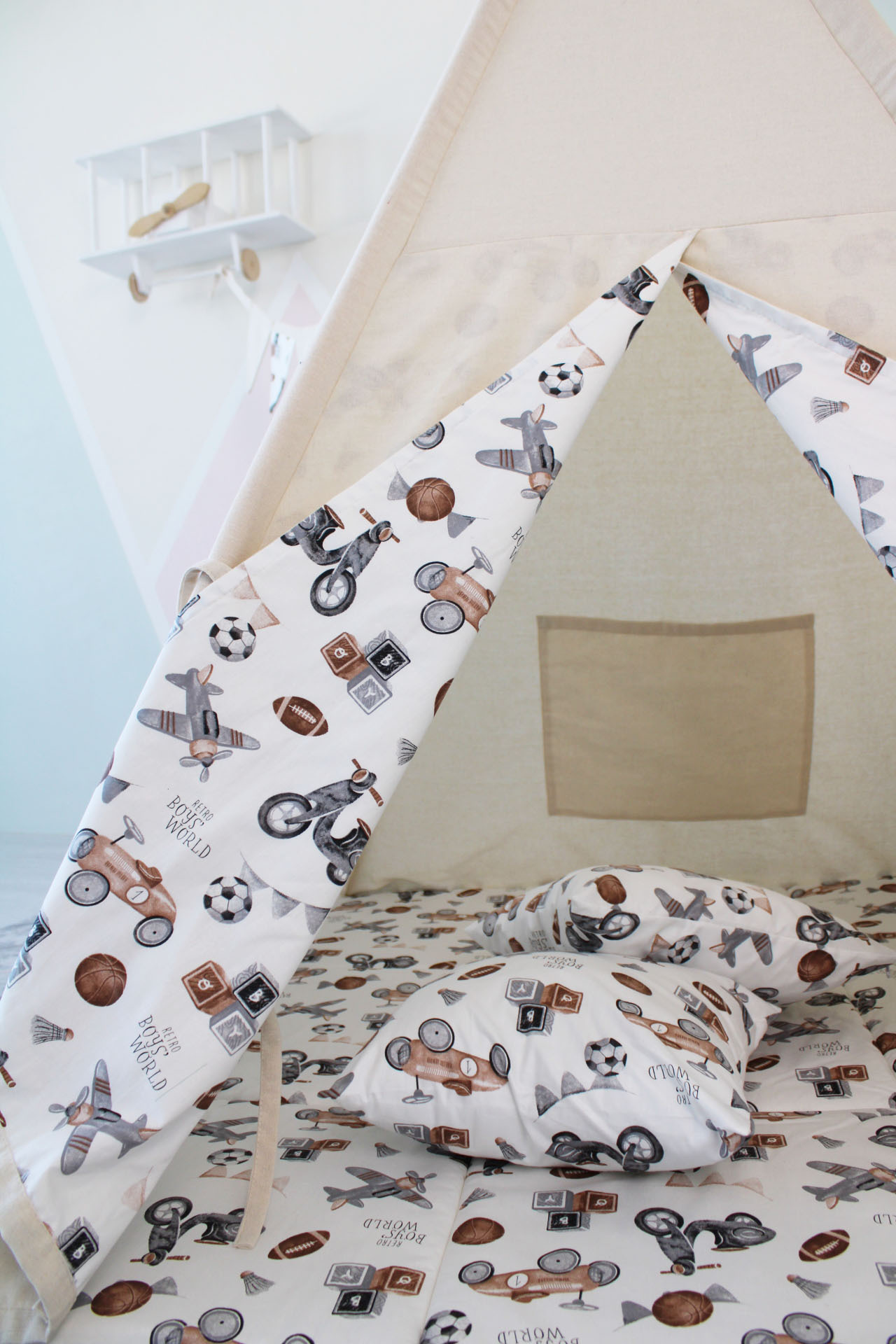 Детский вигвам Хлопковый РЕТРО, с окошком, ковриком и системой антискладывания (стартовый комплект)