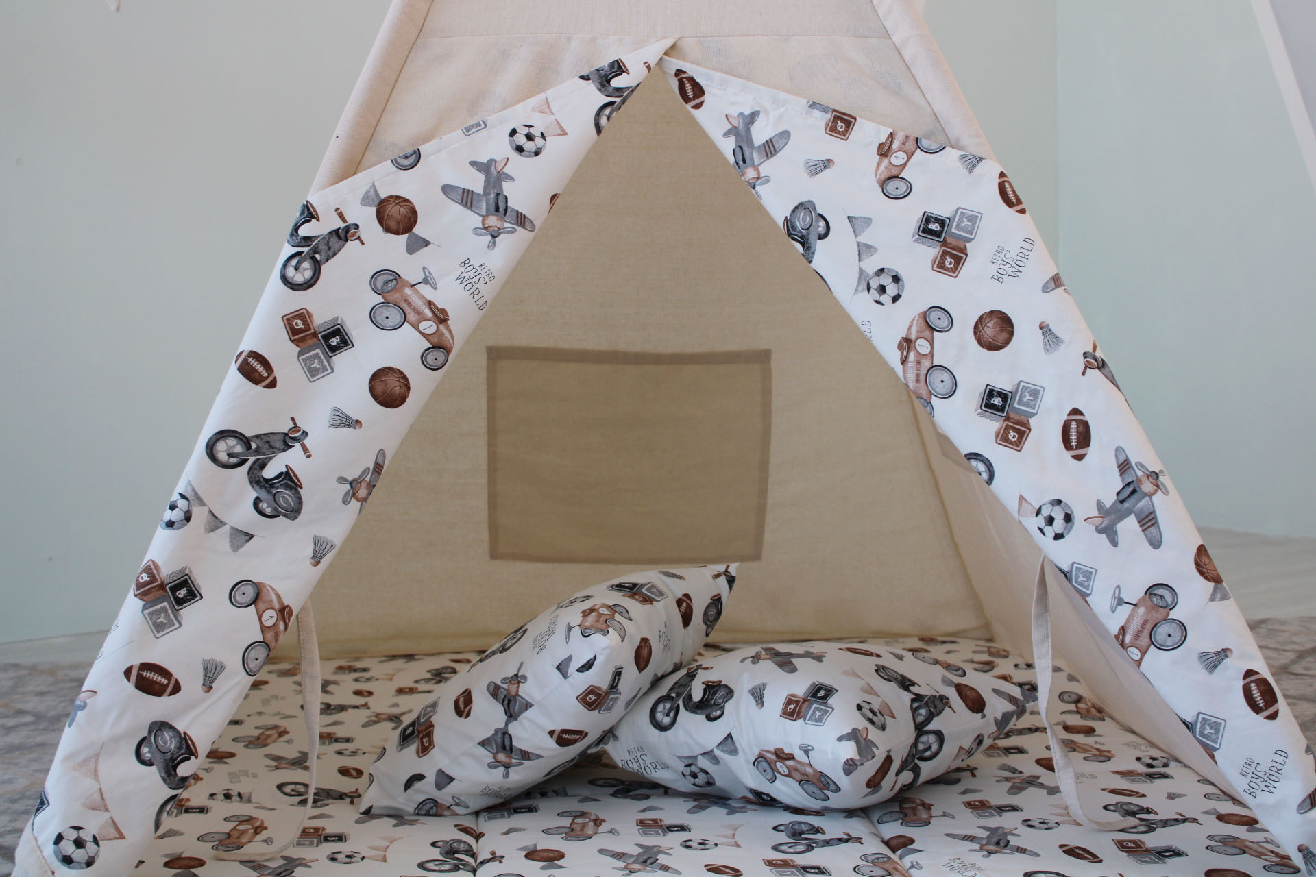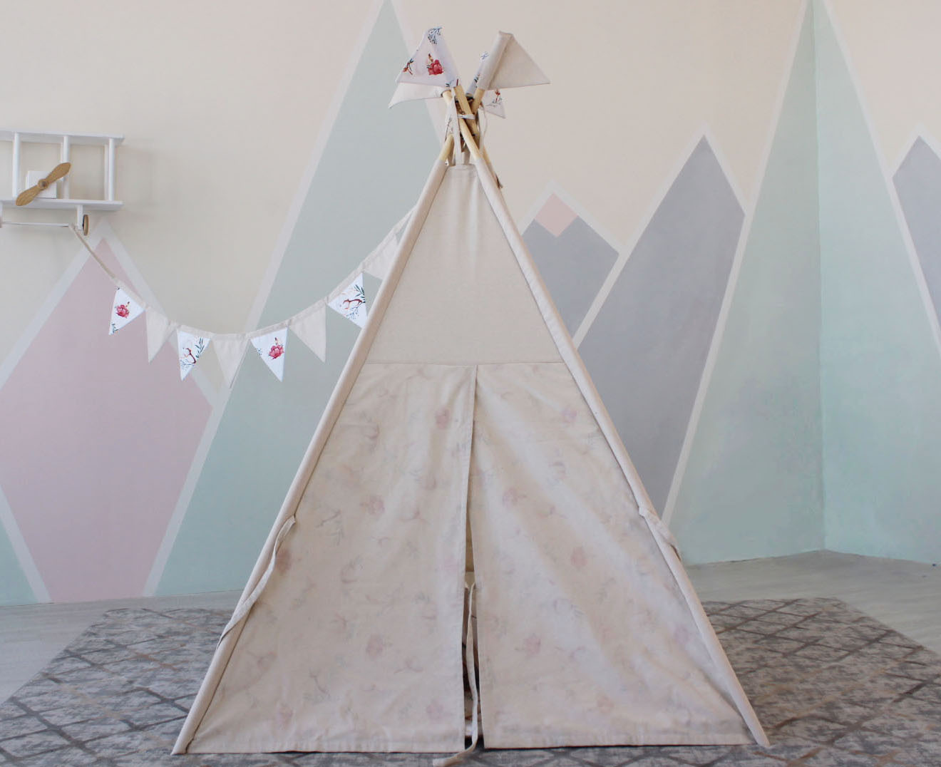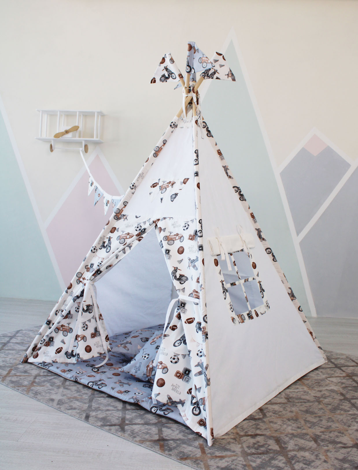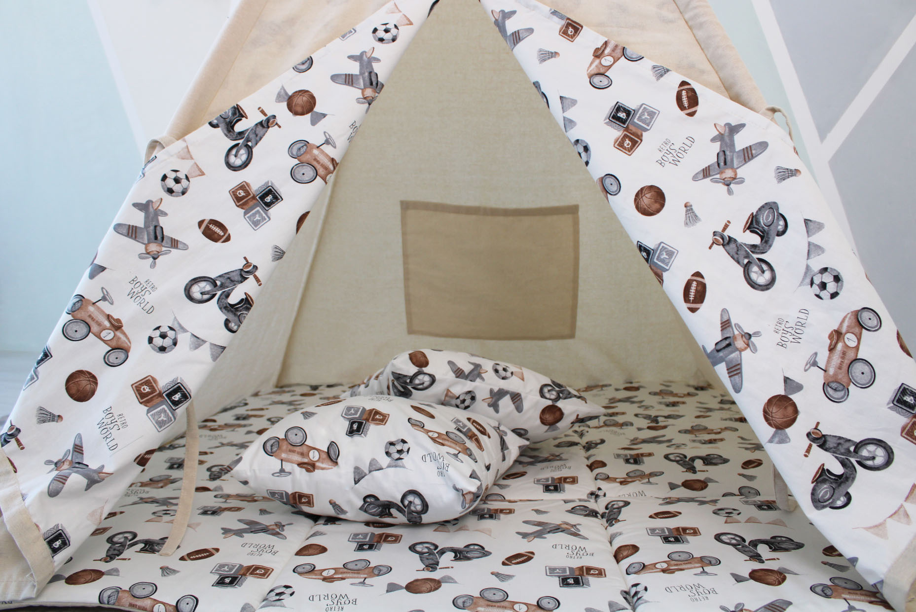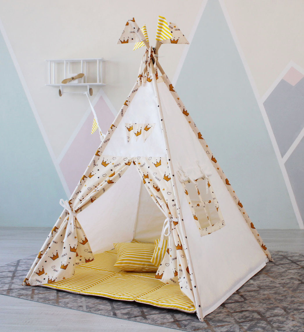 Детский вигвам Хлопковый РЕТРО, с окошком, ковриком и системой антискладывания (стартовый комплект)