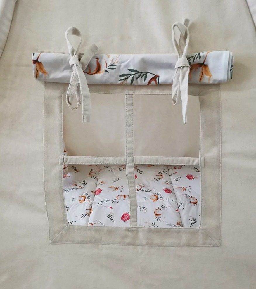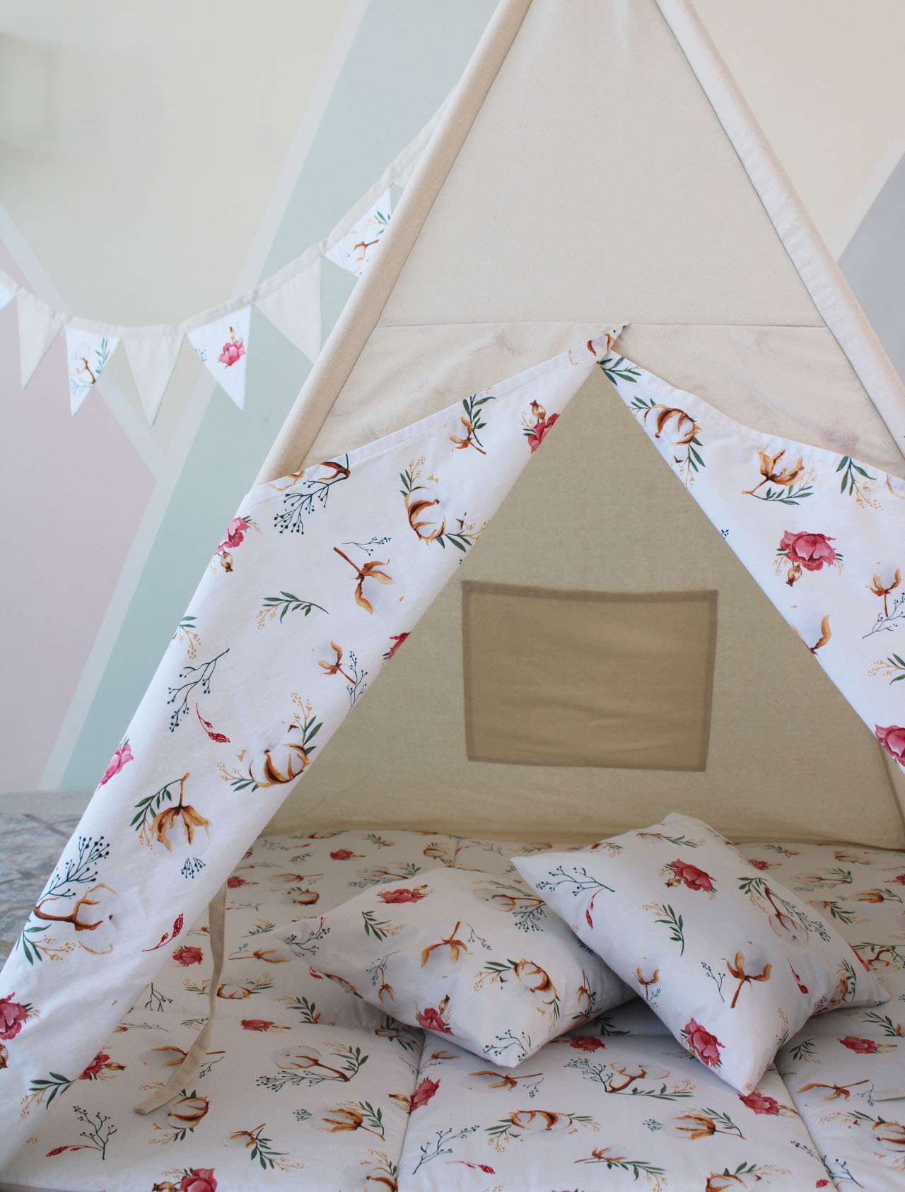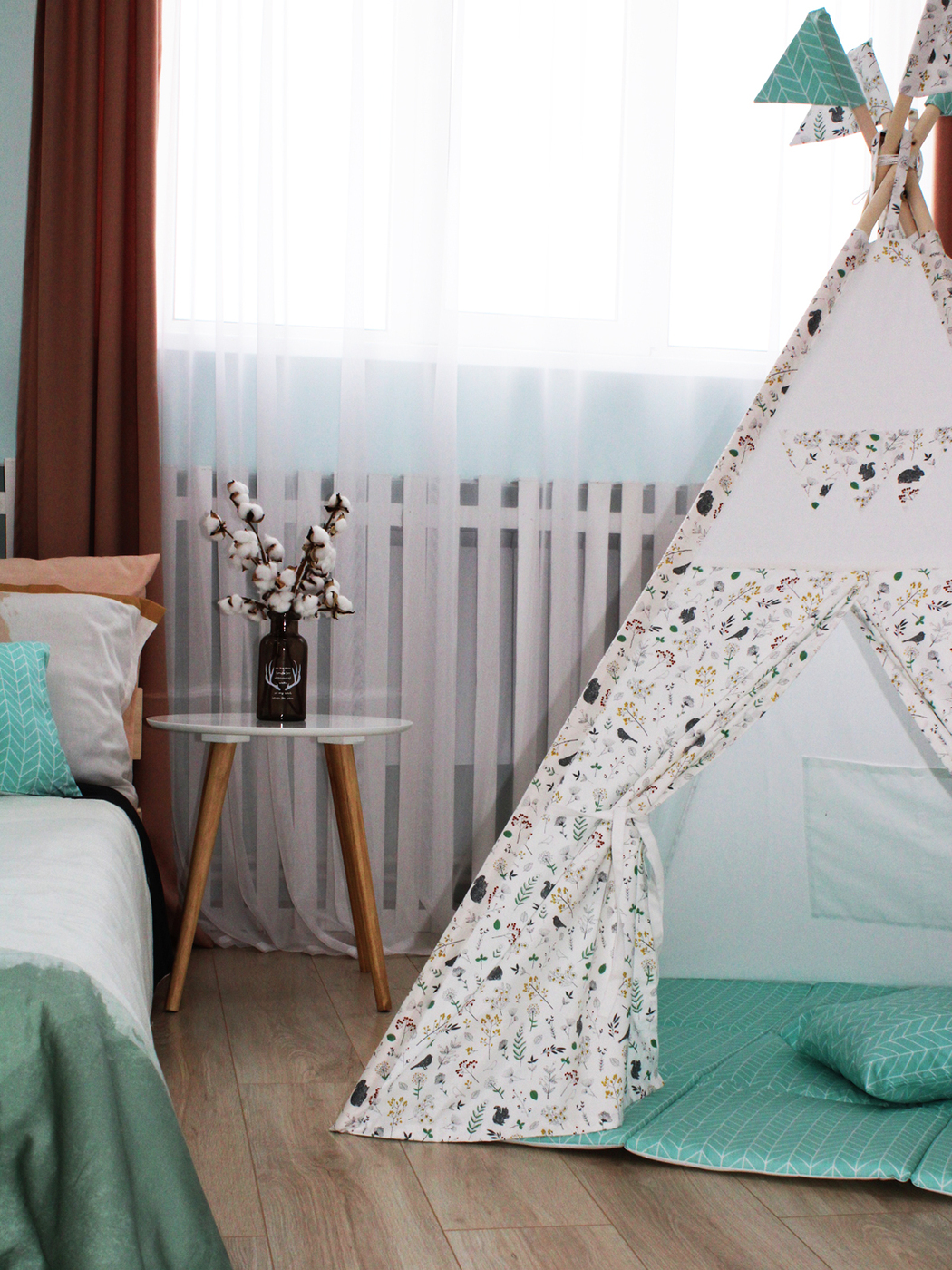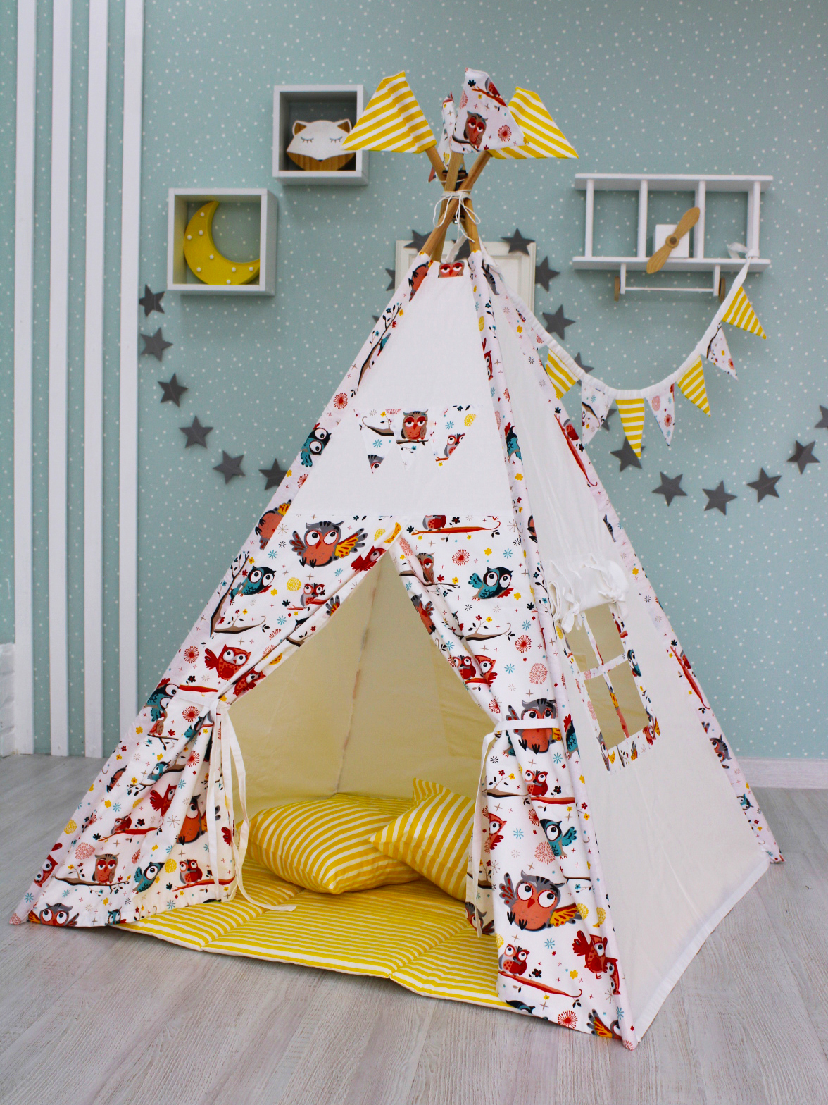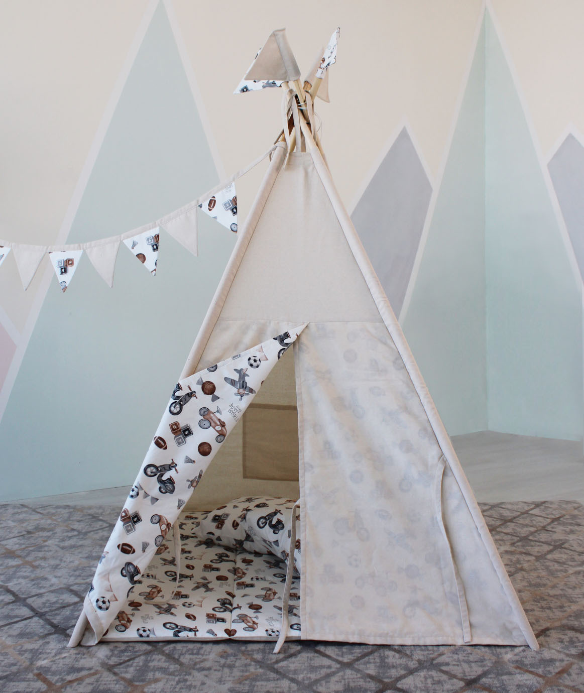 Детский вигвам Хлопковый РЕТРО, с окошком, ковриком и системой антискладывания (стартовый комплект)