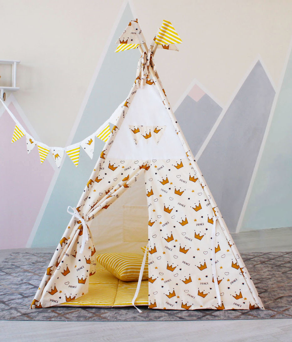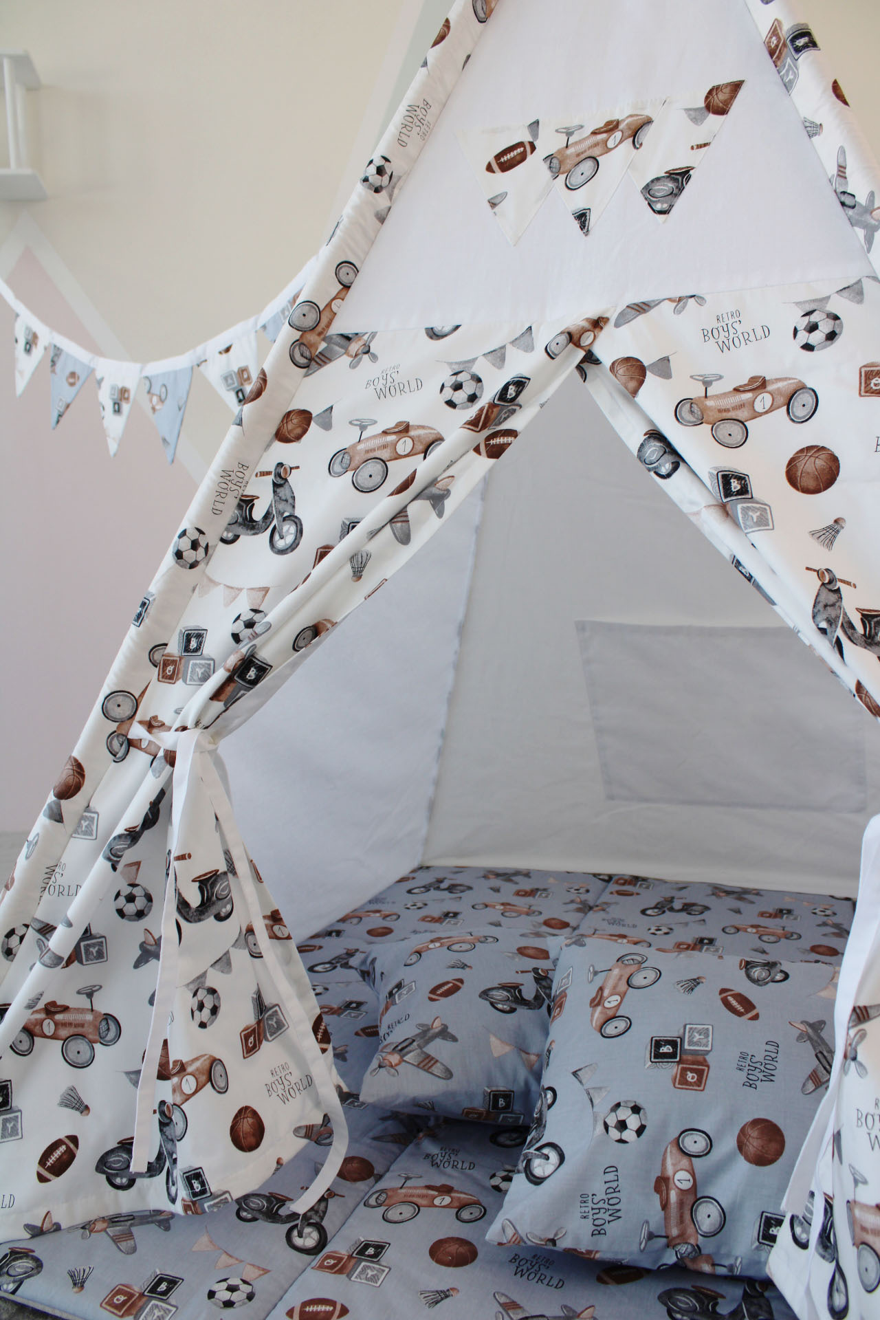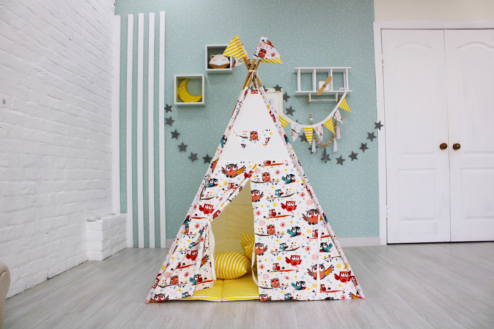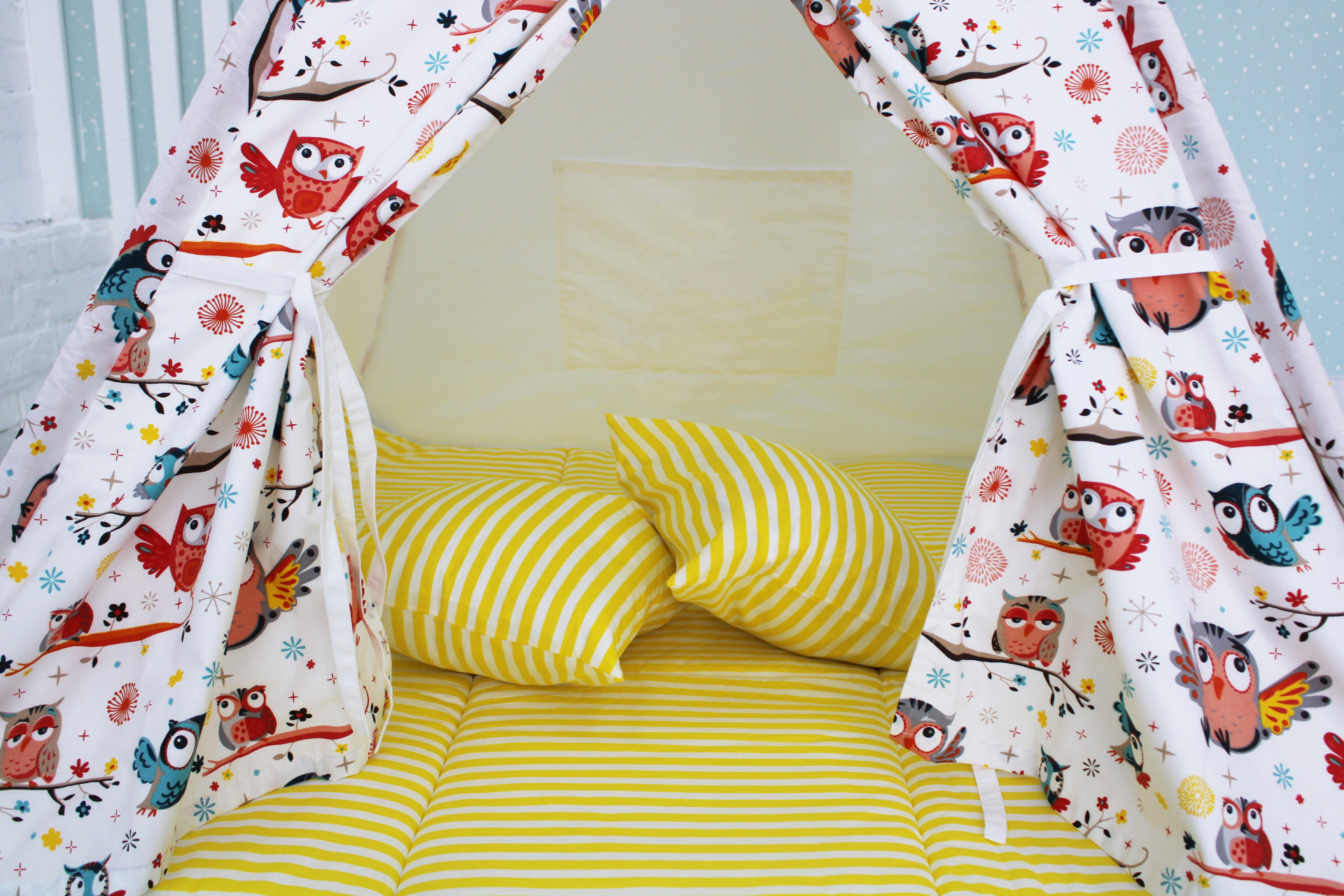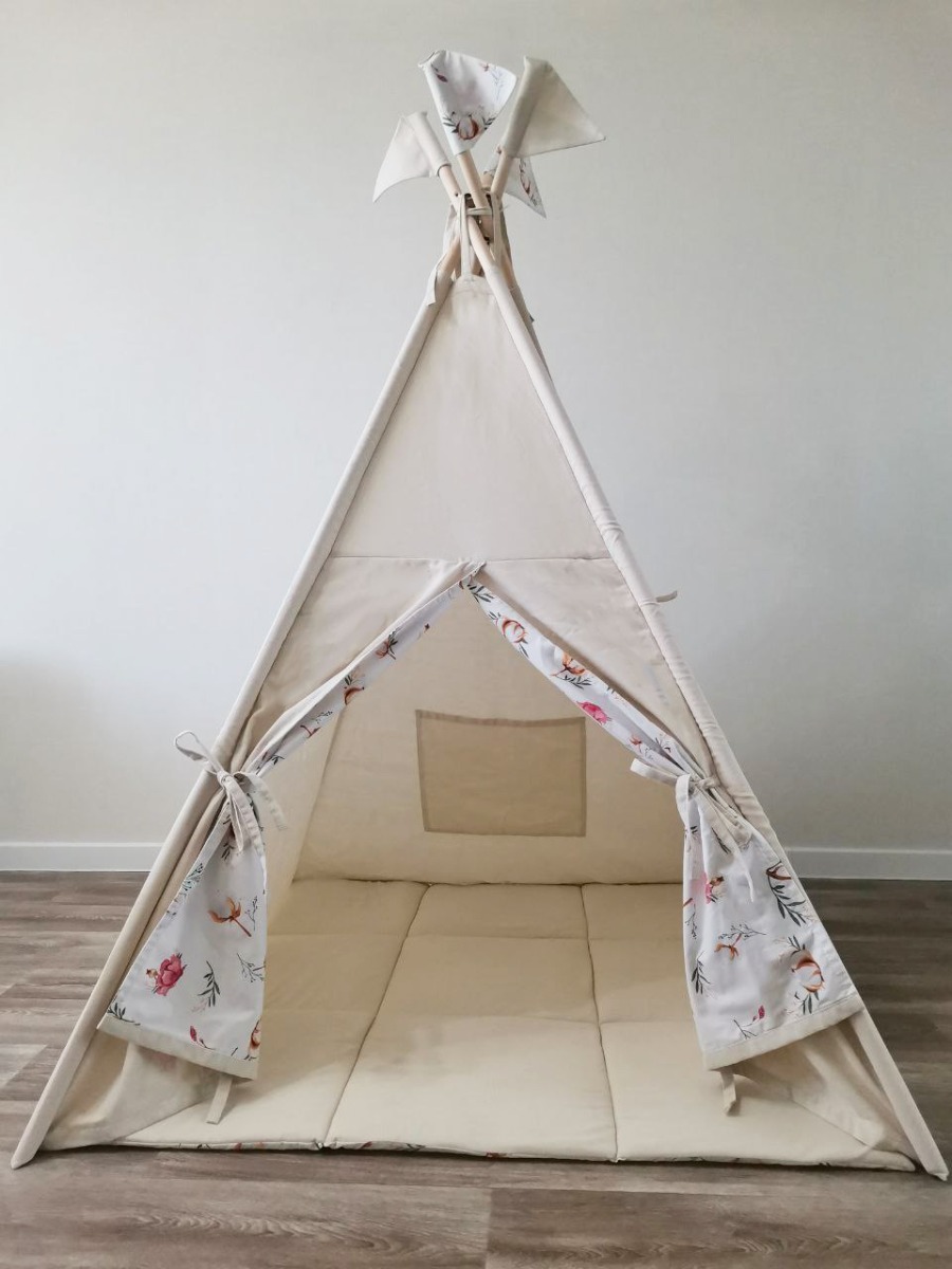 Детский вигвам Хлопковый РЕТРО, с окошком, ковриком и системой антискладывания (стартовый комплект)