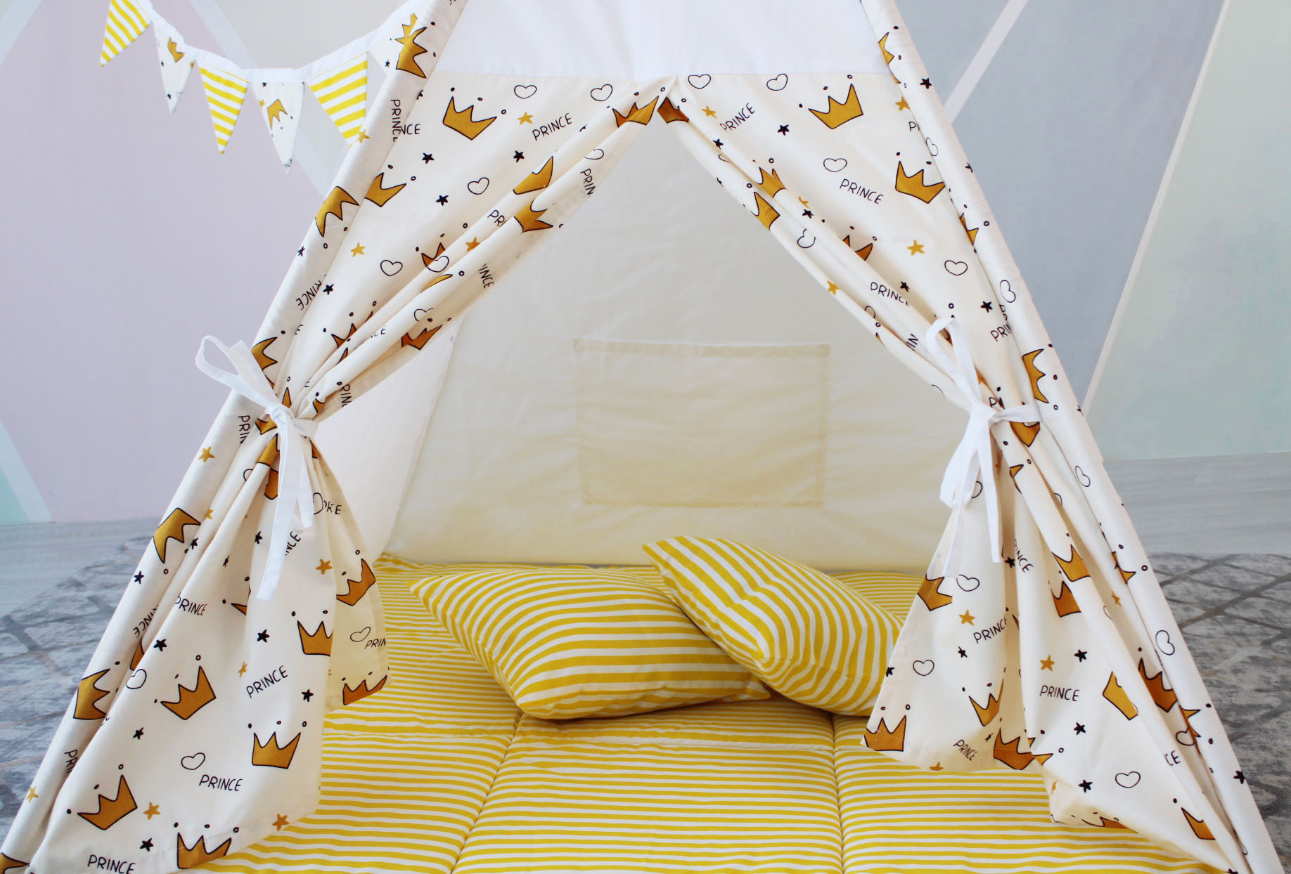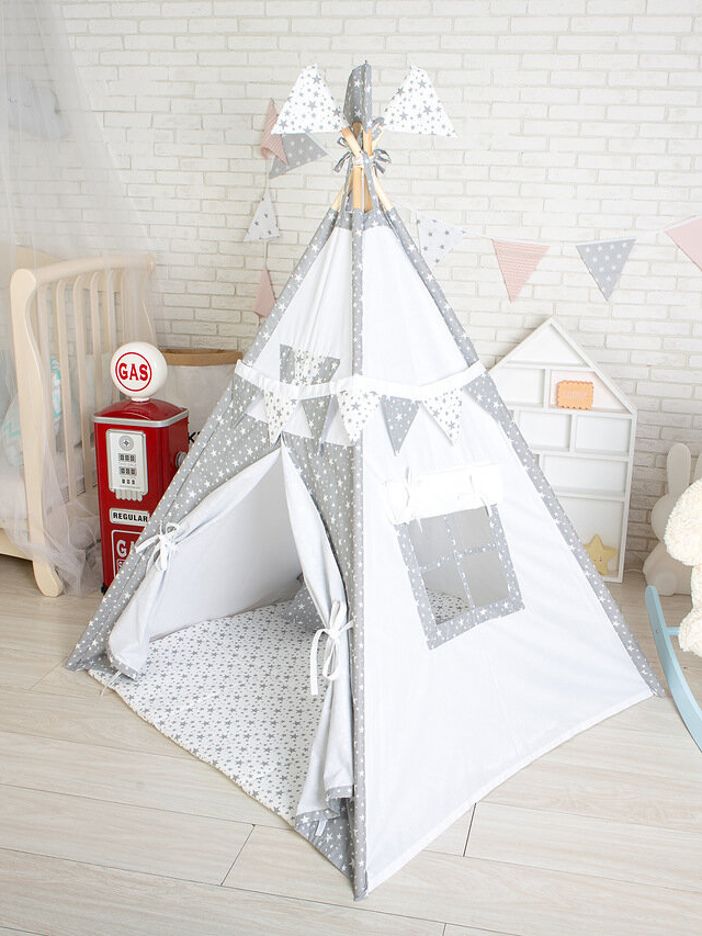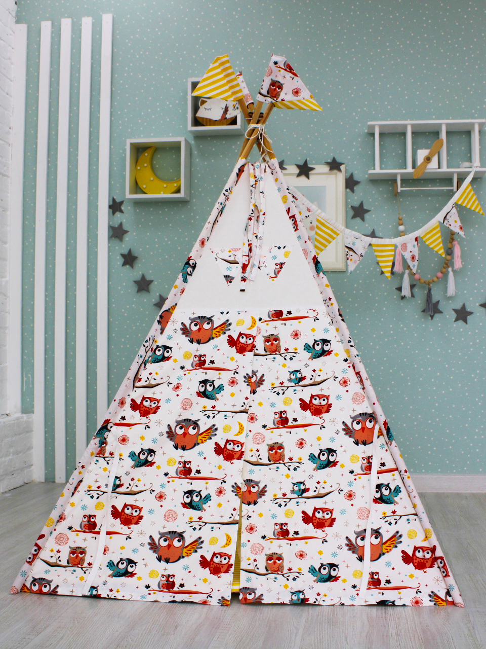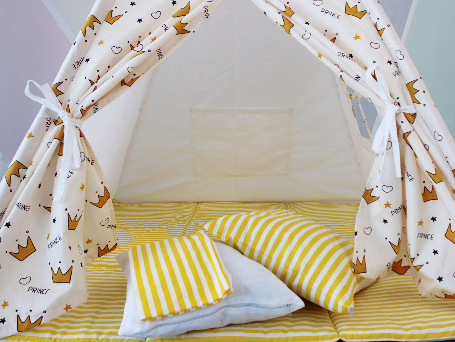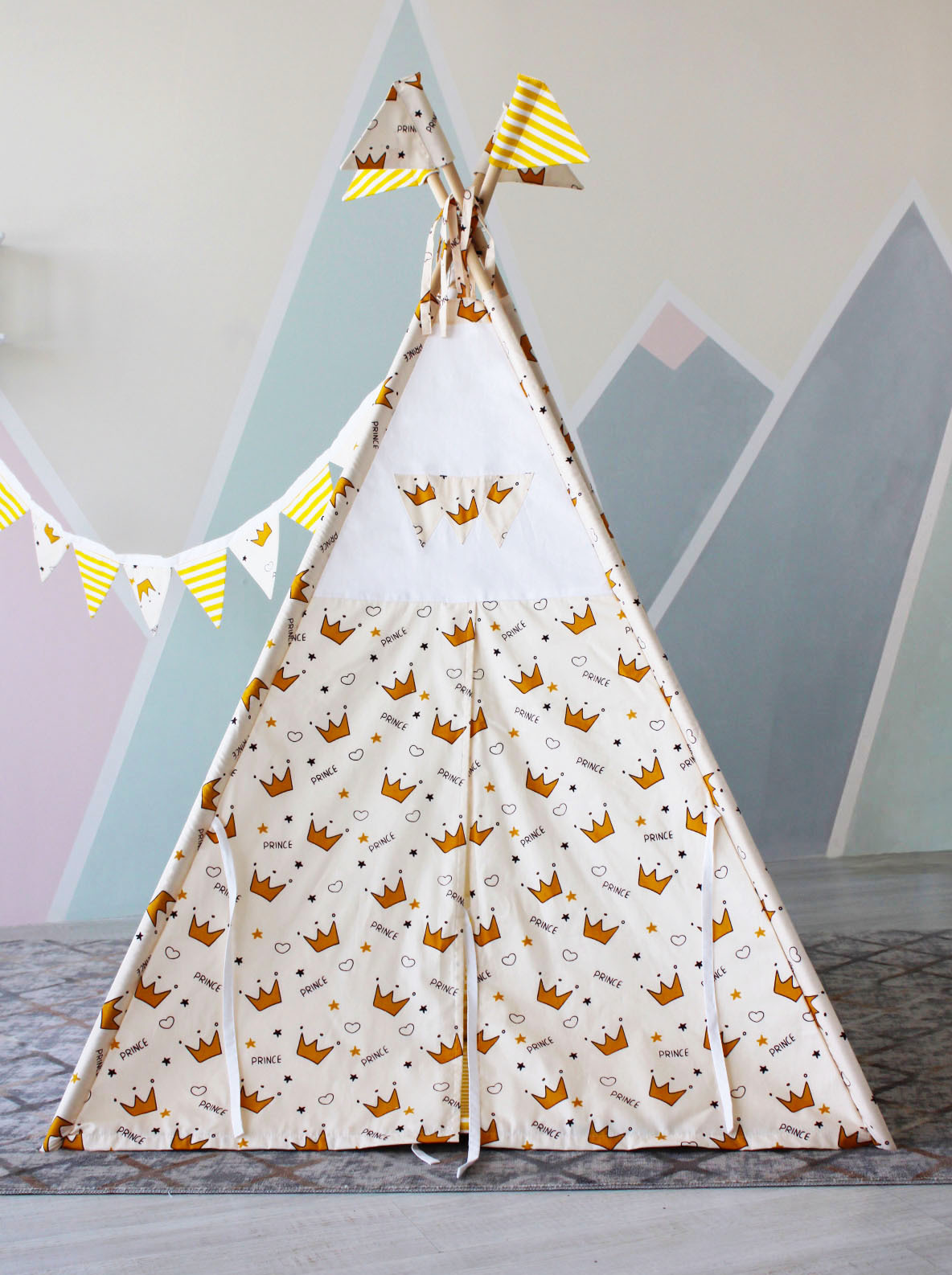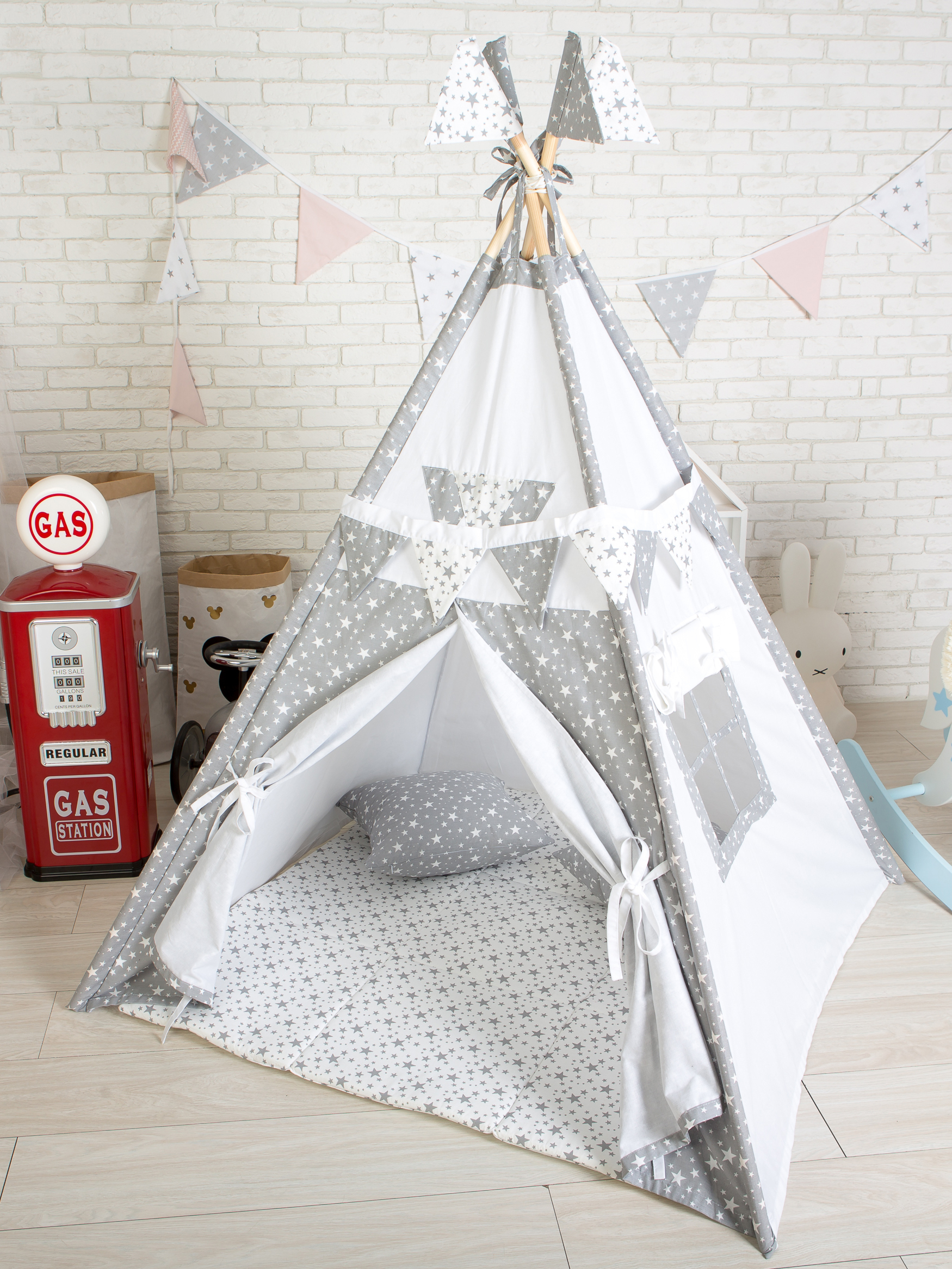 Детский вигвам Хлопковый РЕТРО, с окошком, ковриком и системой антискладывания (стартовый комплект)