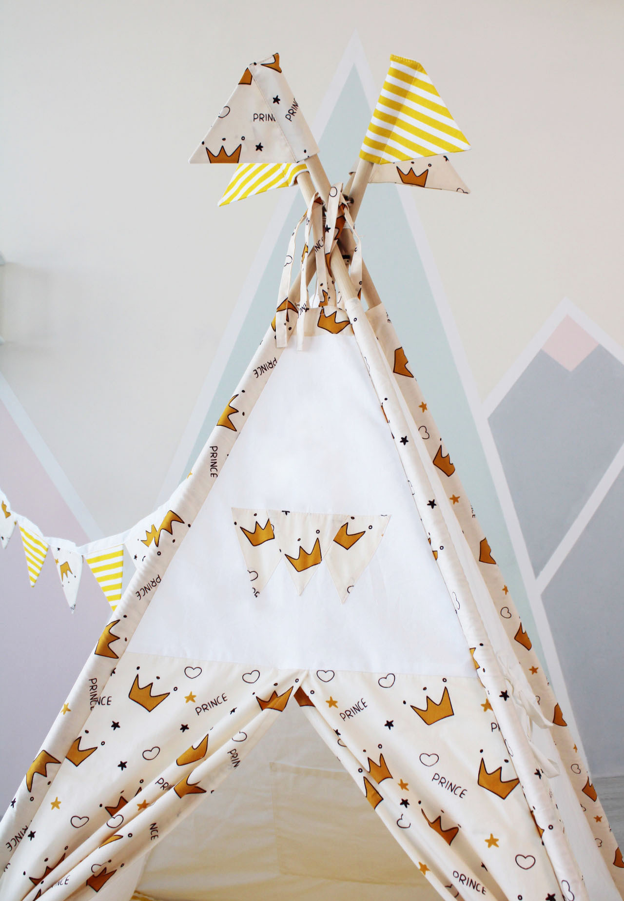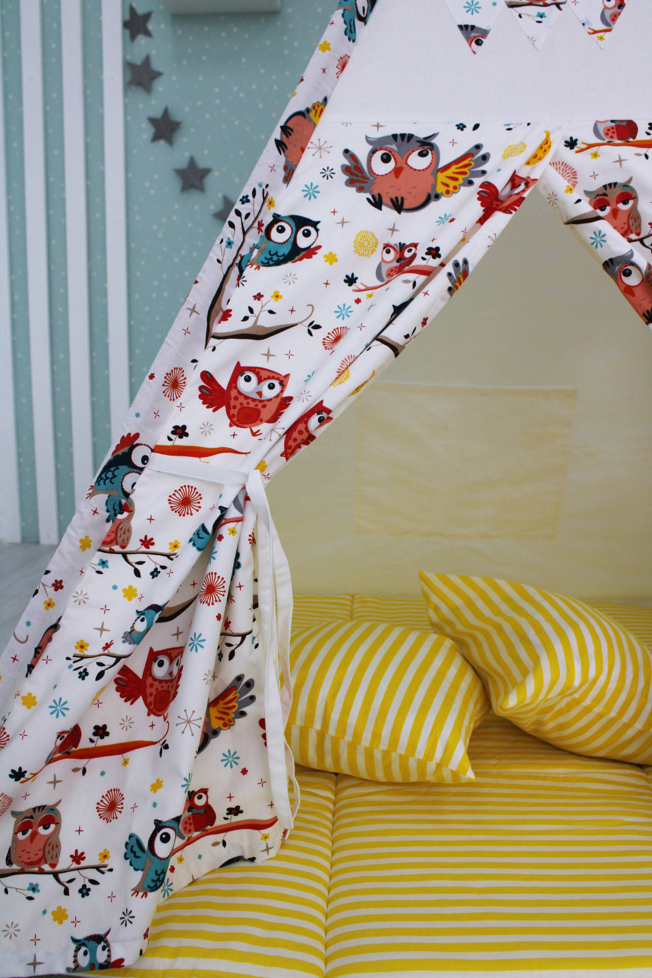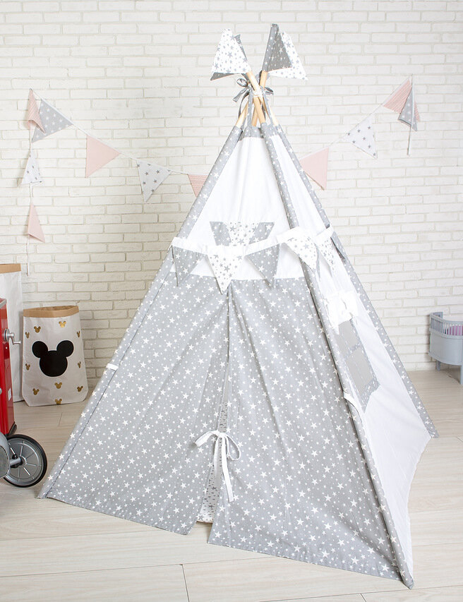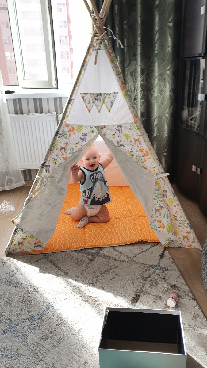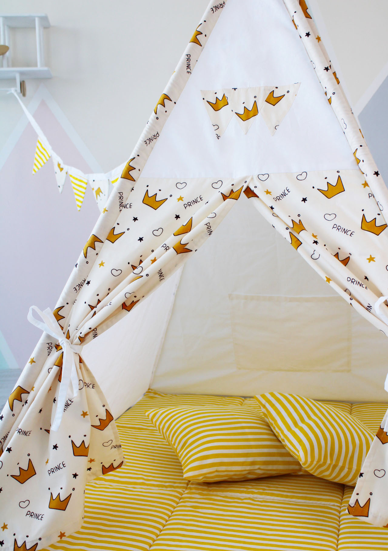 Детский вигвам Хлопковый РЕТРО, с окошком, ковриком и системой антискладывания (стартовый комплект)