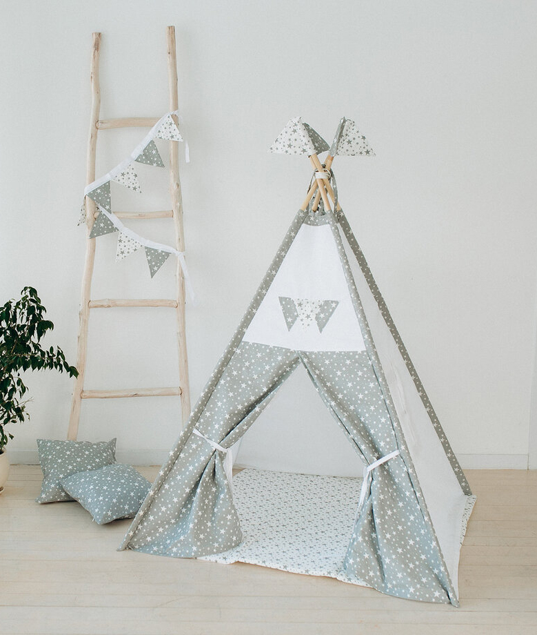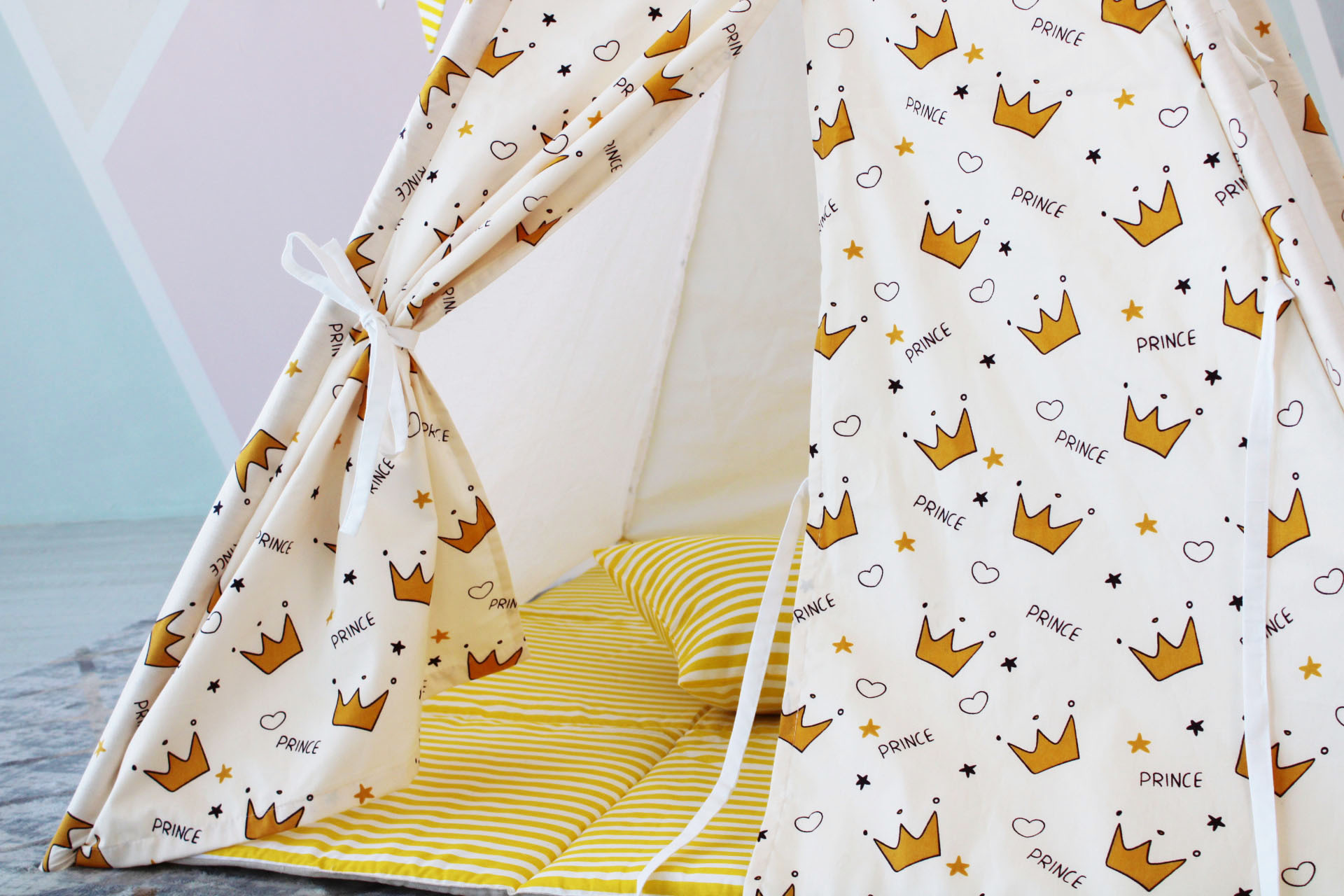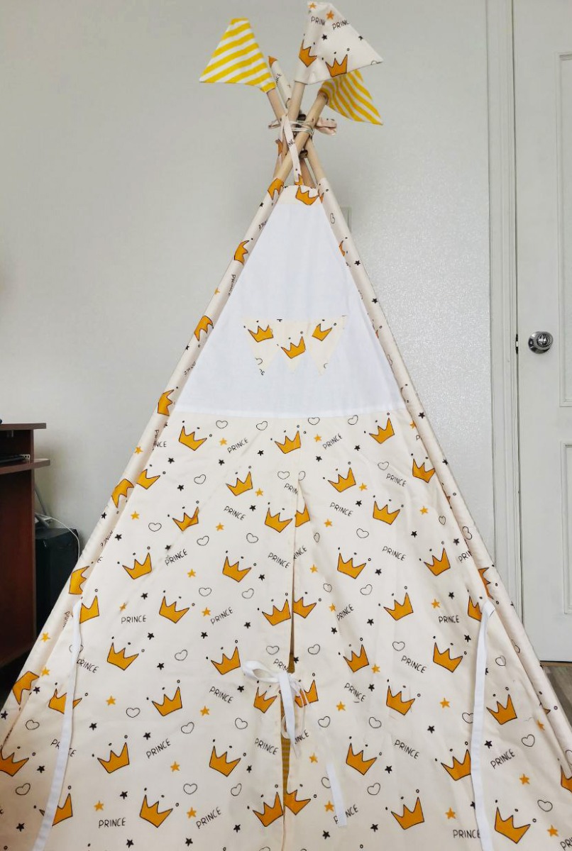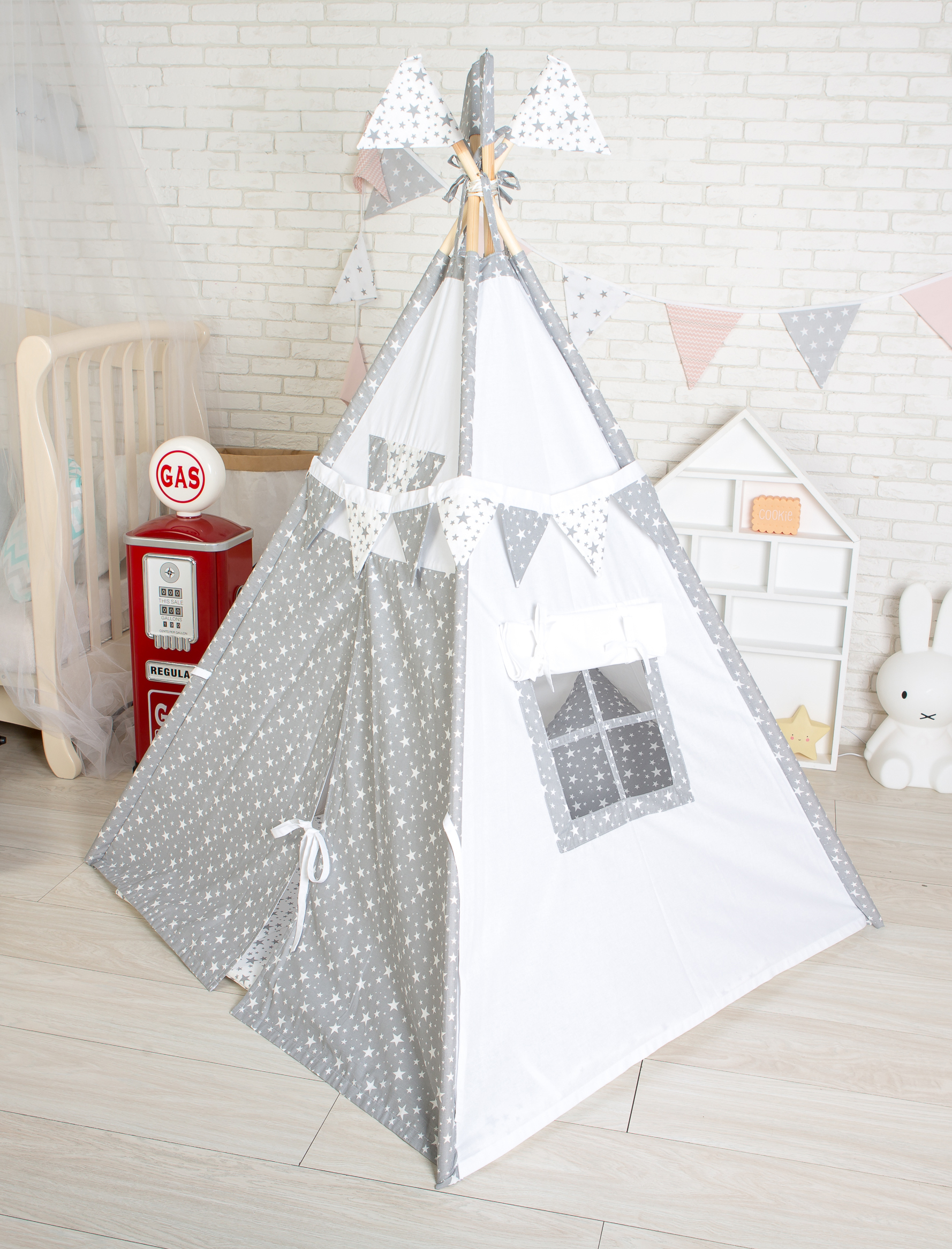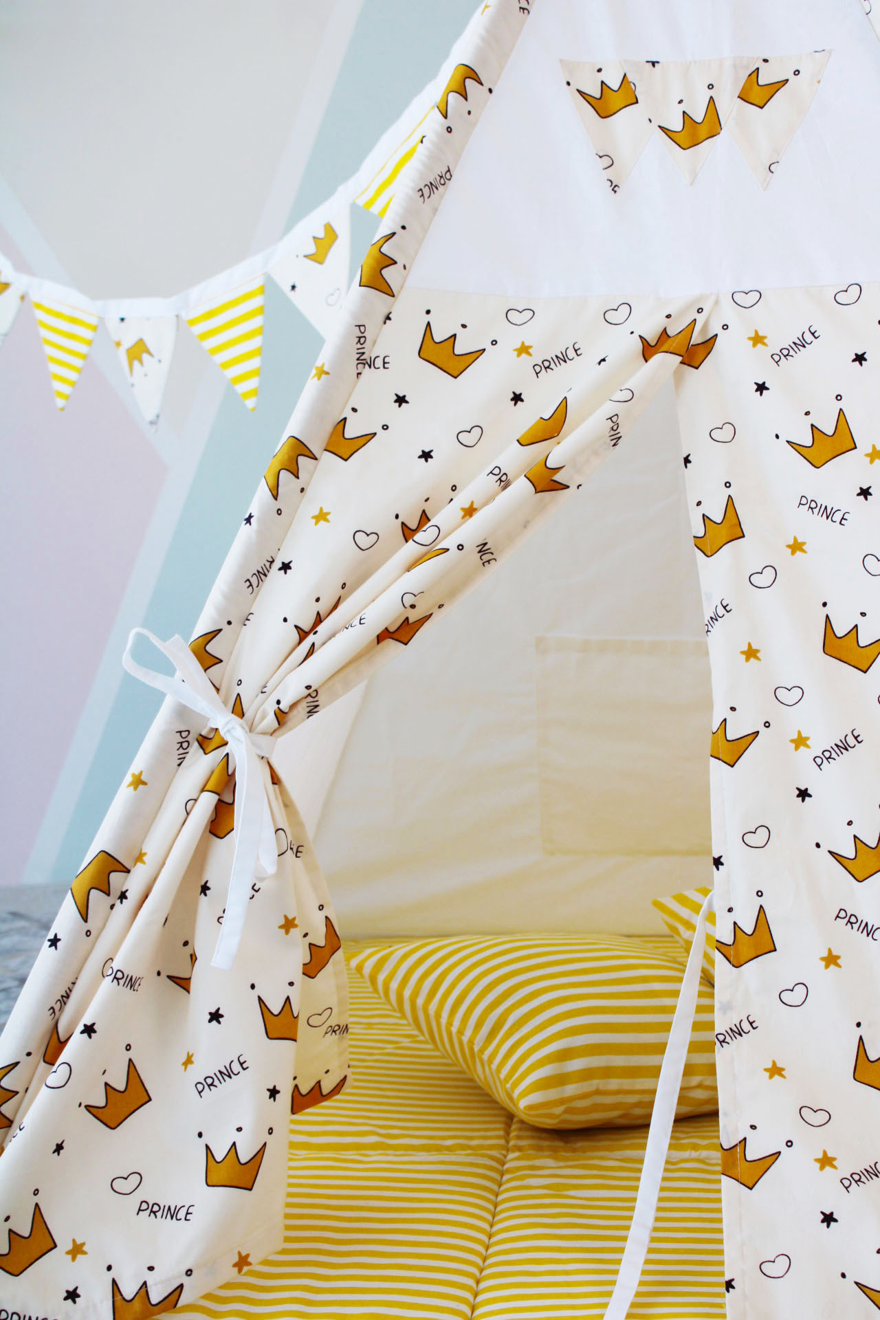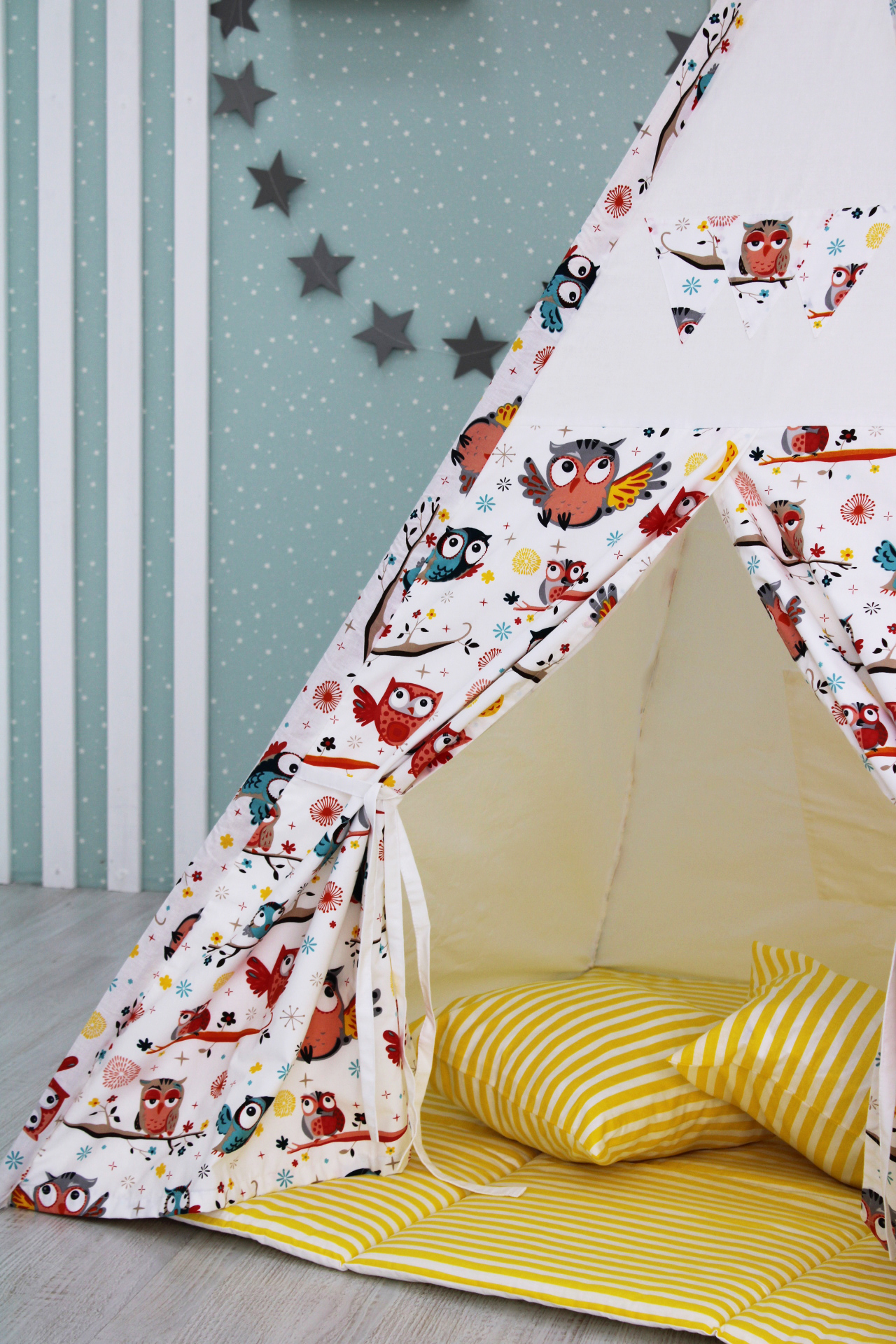 Детский вигвам Хлопковый РЕТРО, с окошком, ковриком и системой антискладывания (стартовый комплект)