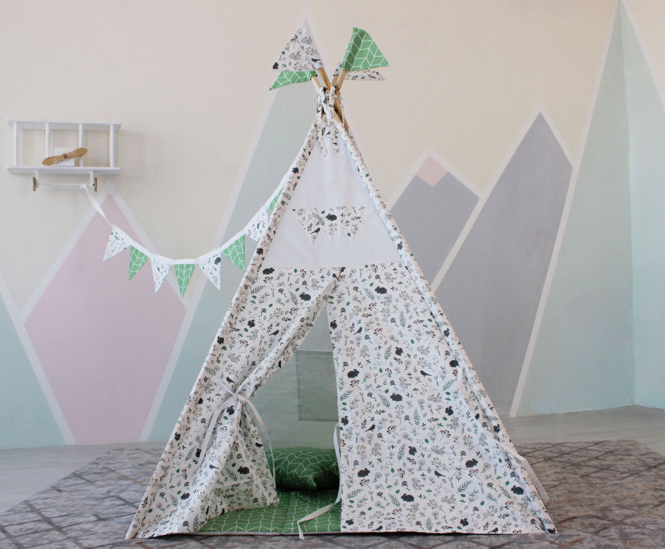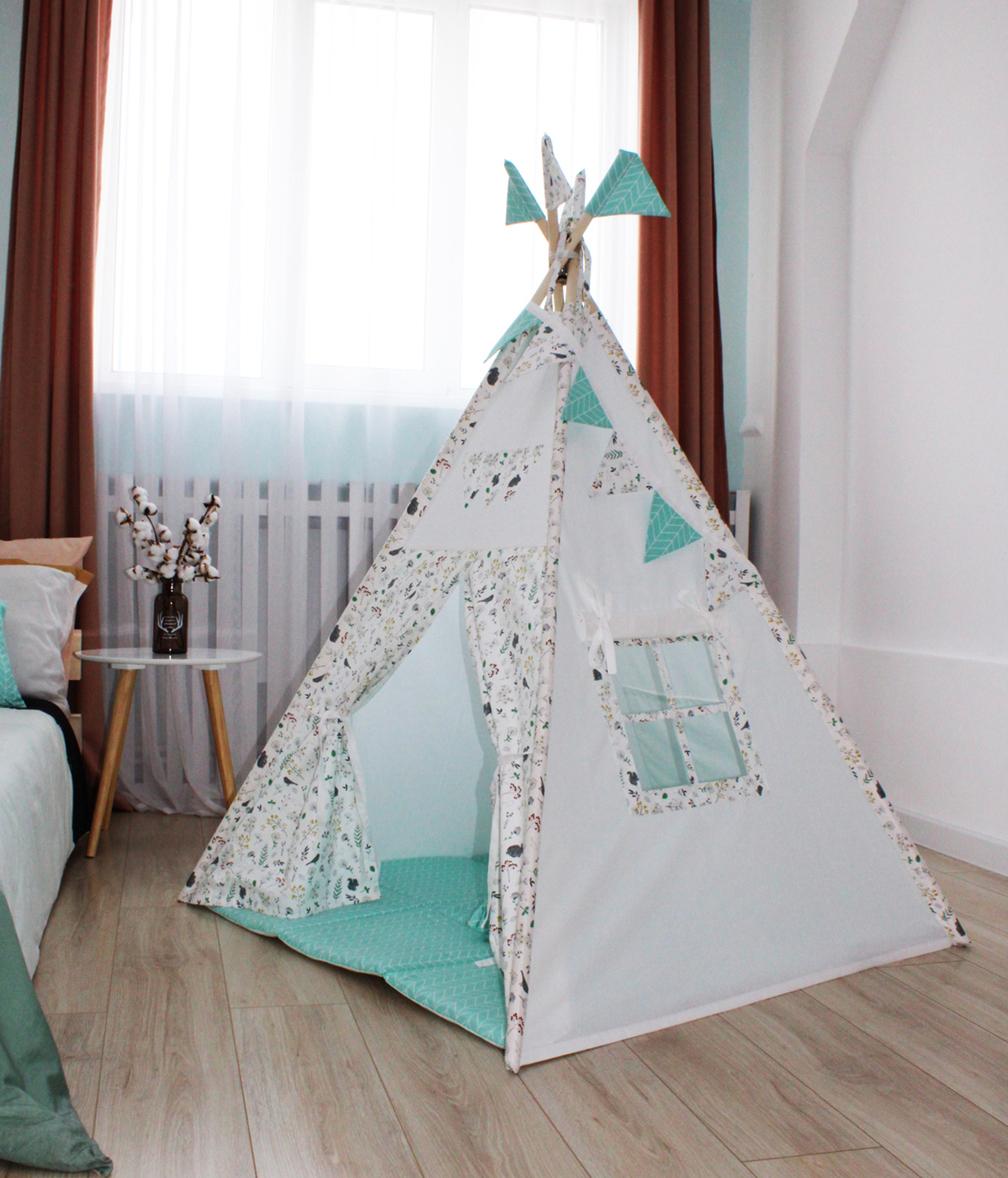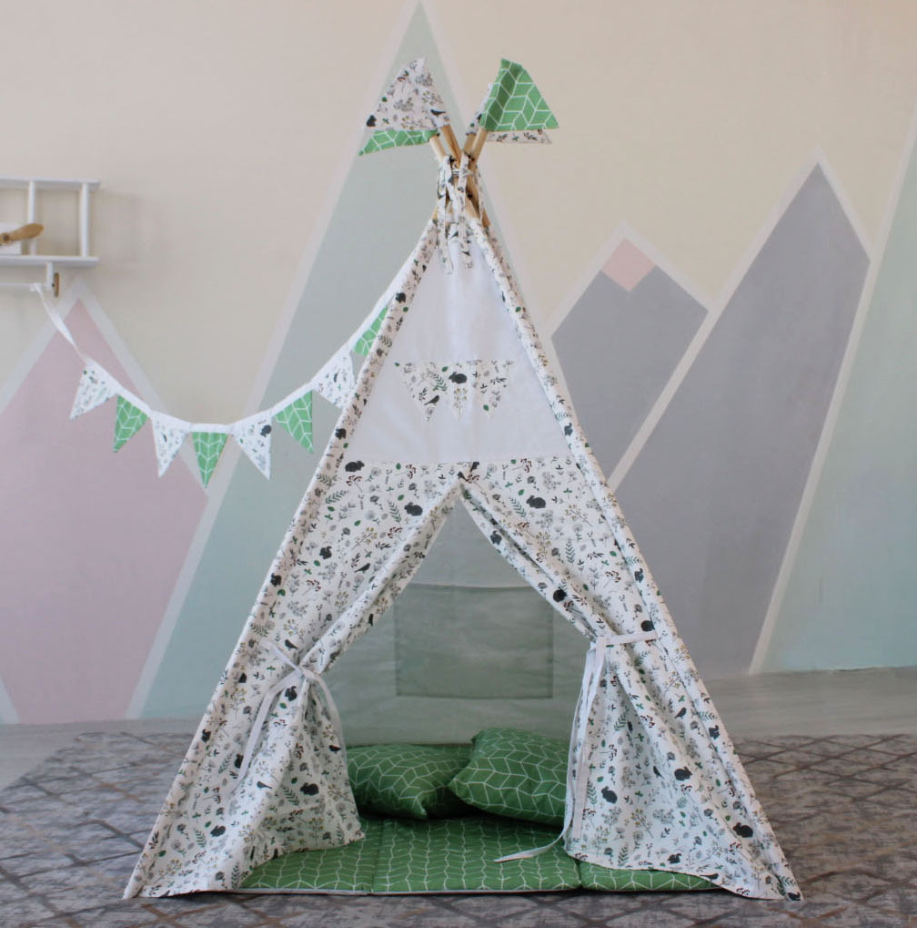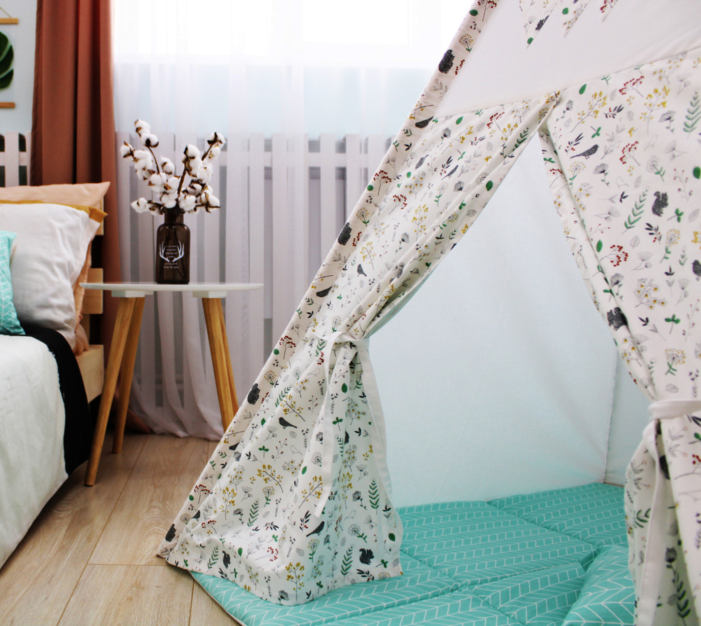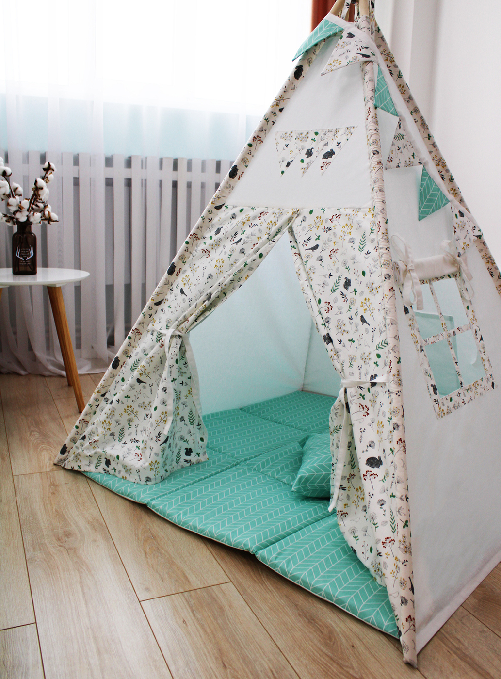 Детский вигвам Летняя полянка, с окошком, ковриком и системой антискладывания (стартовый комплект)