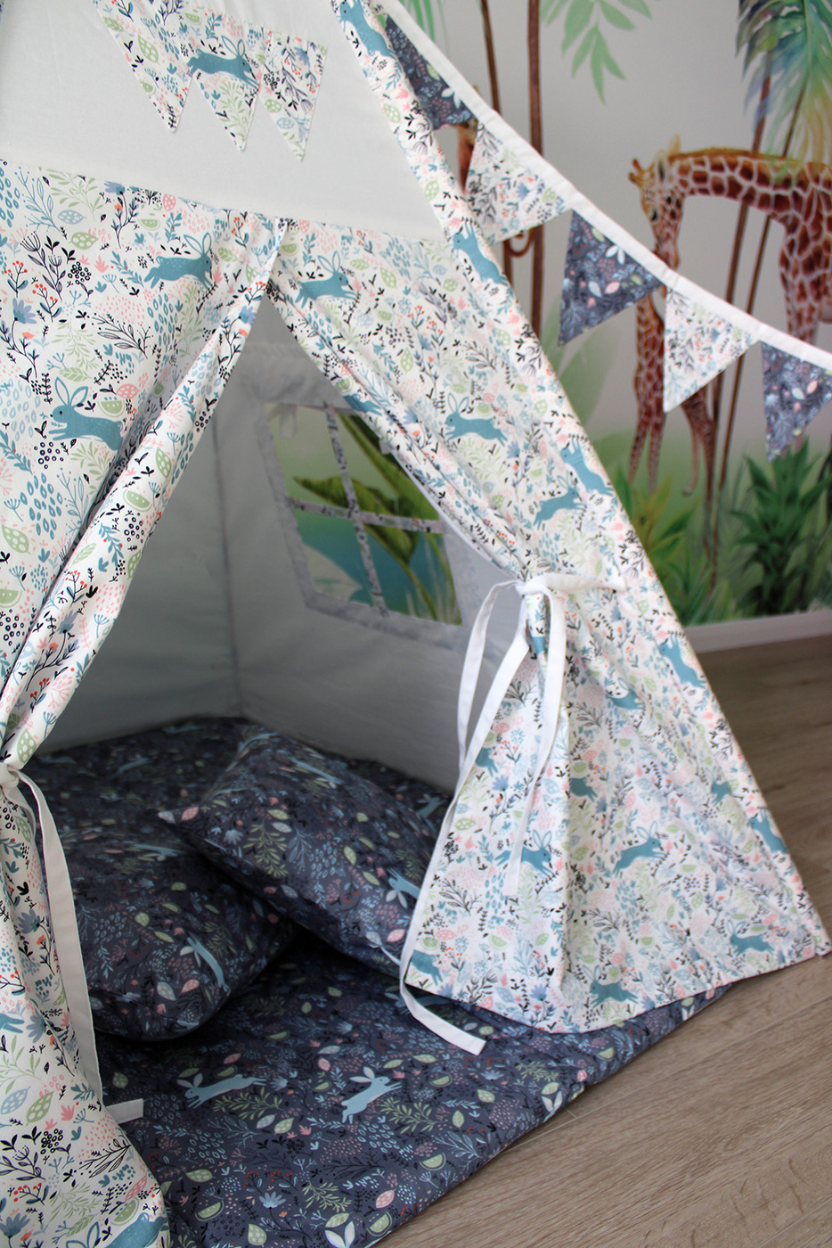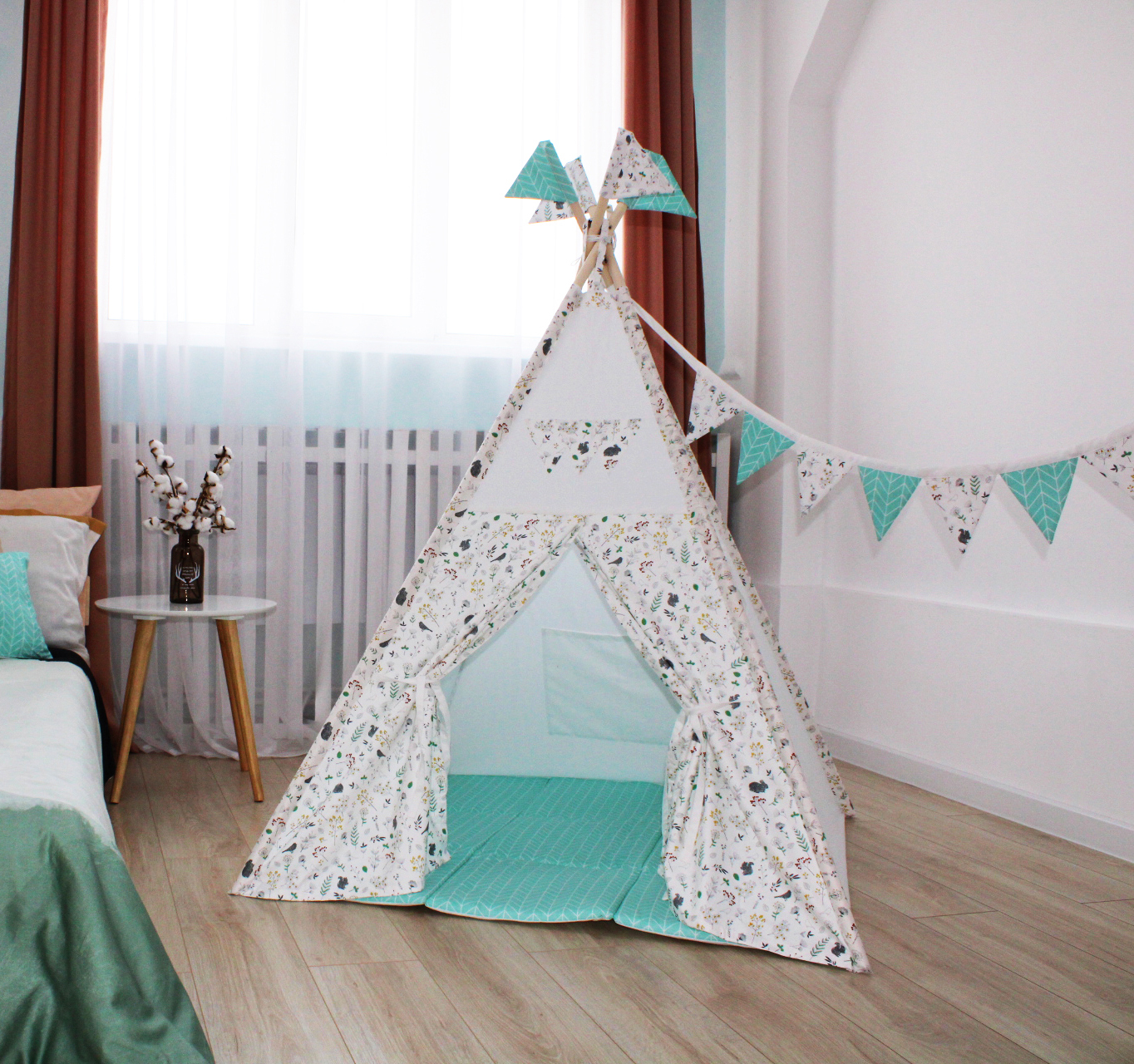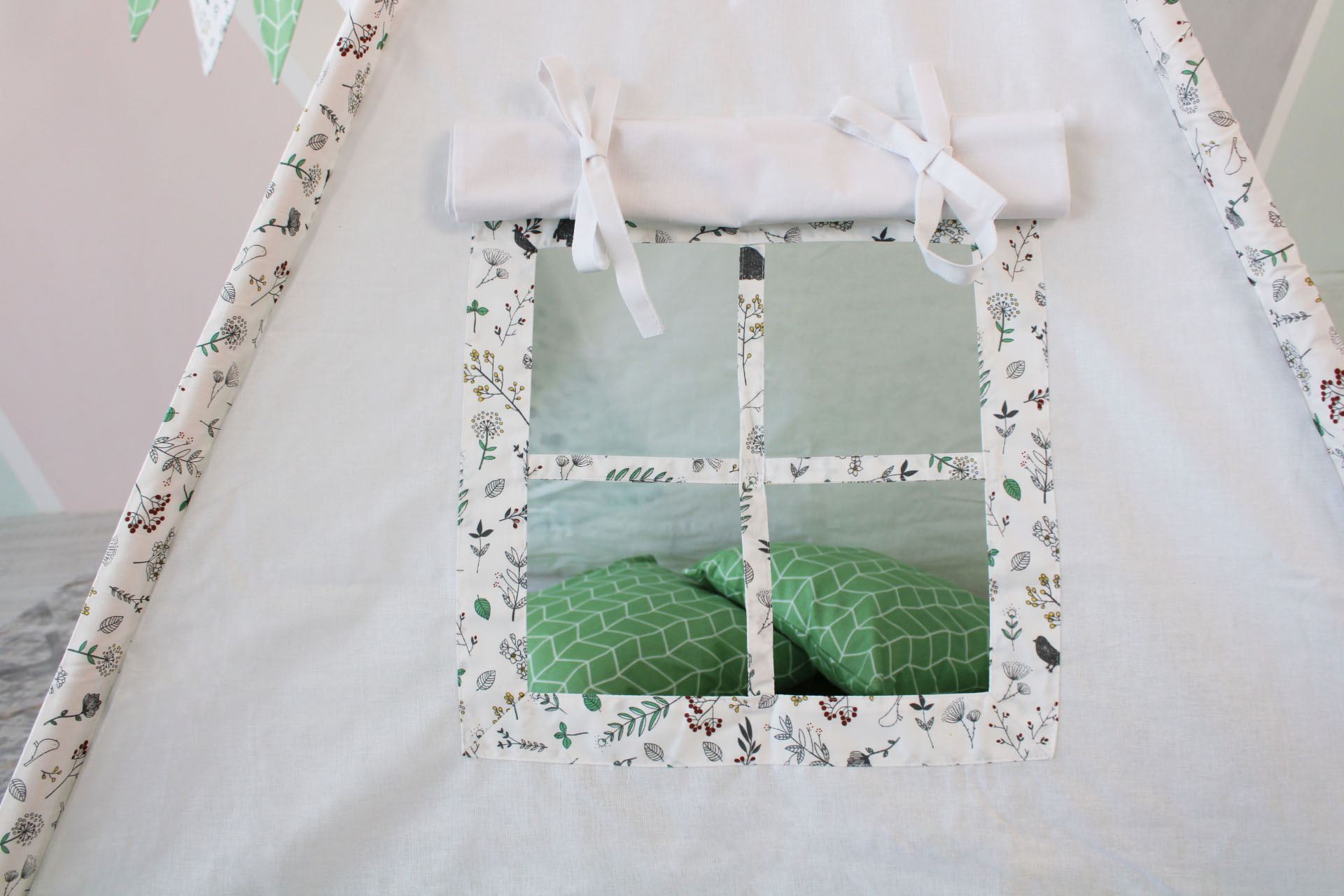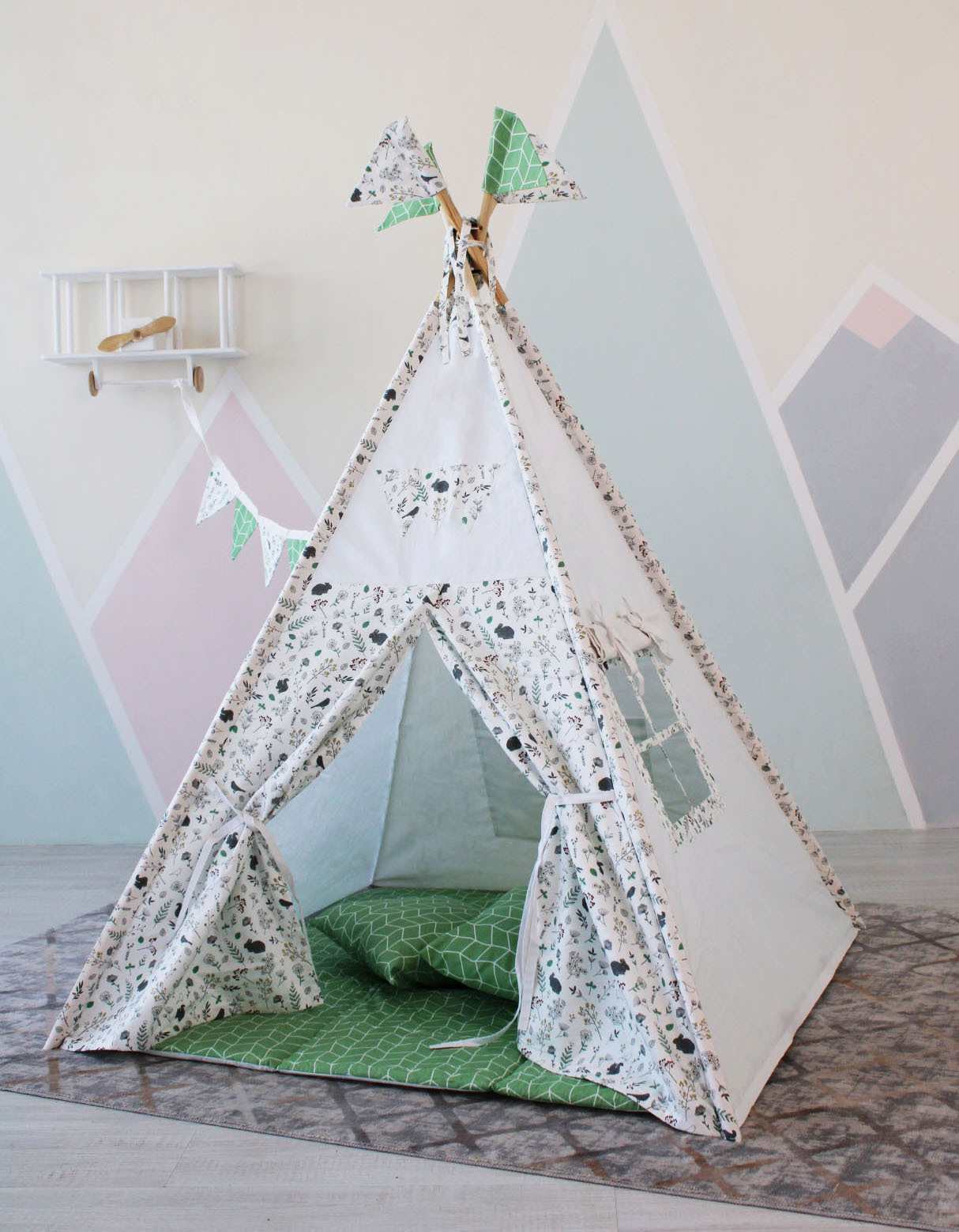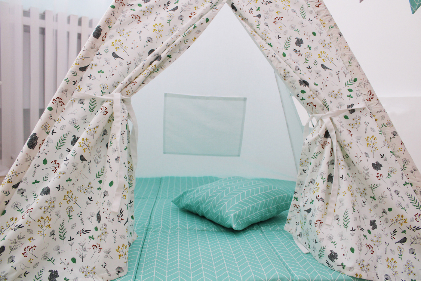 Детский вигвам Летняя полянка, с окошком, ковриком и системой антискладывания (стартовый комплект)