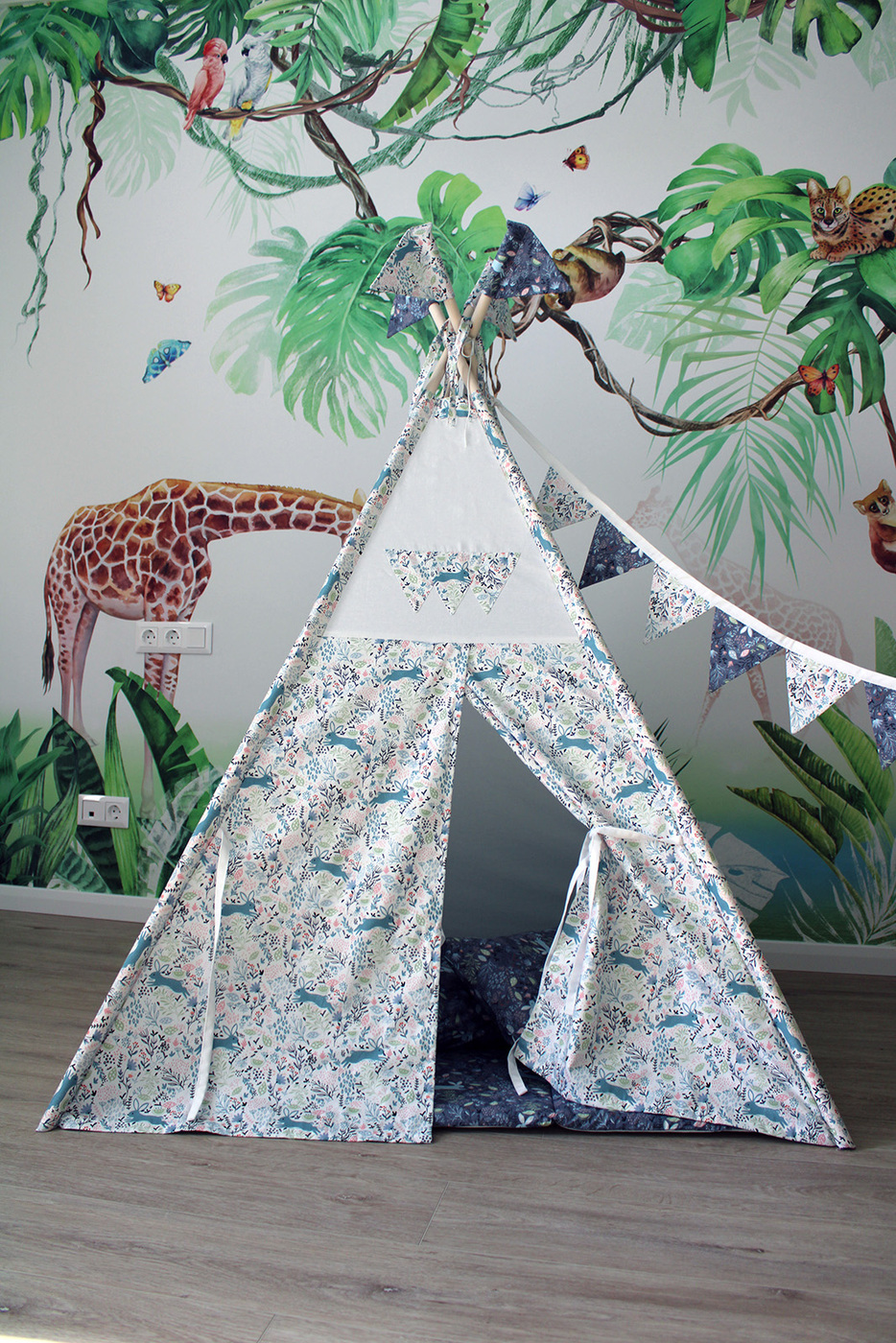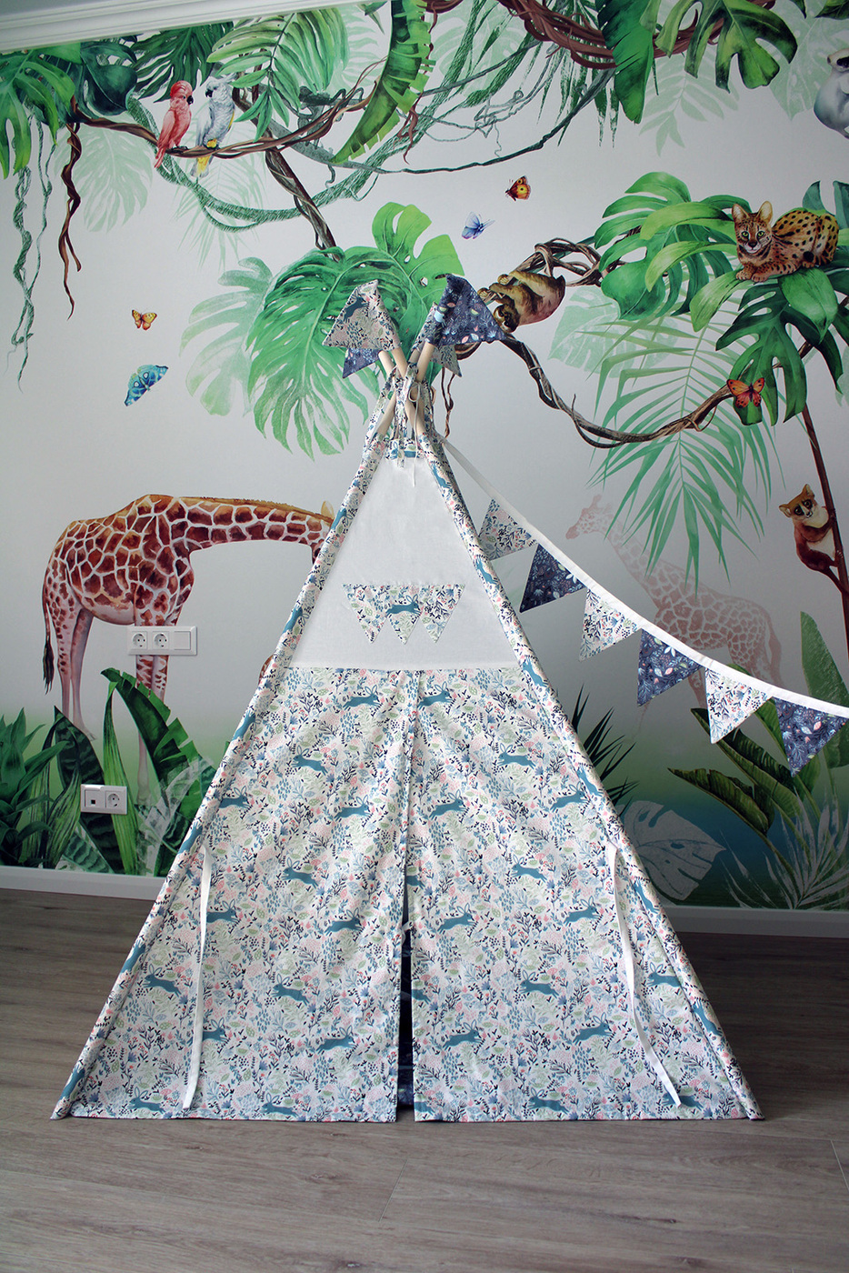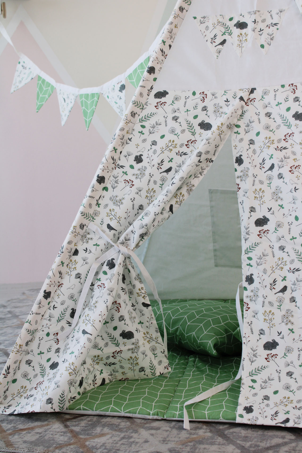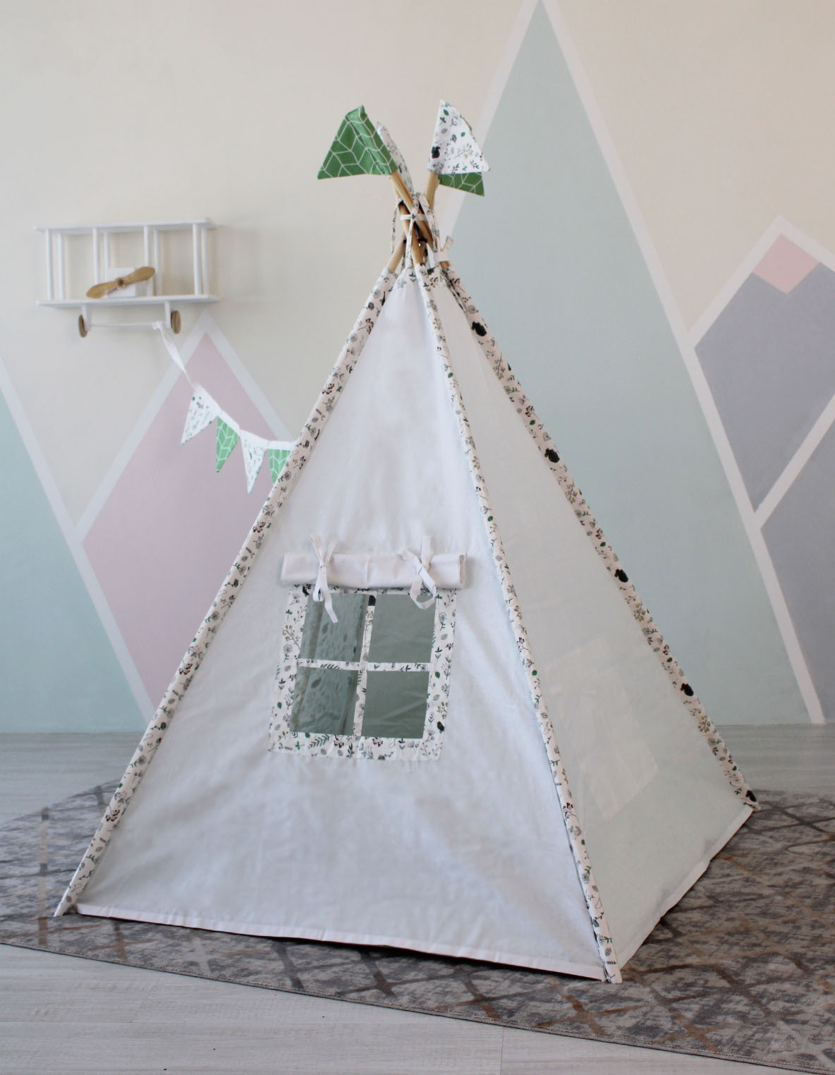 Детский вигвам Летняя полянка, с окошком, ковриком и системой антискладывания (стартовый комплект)