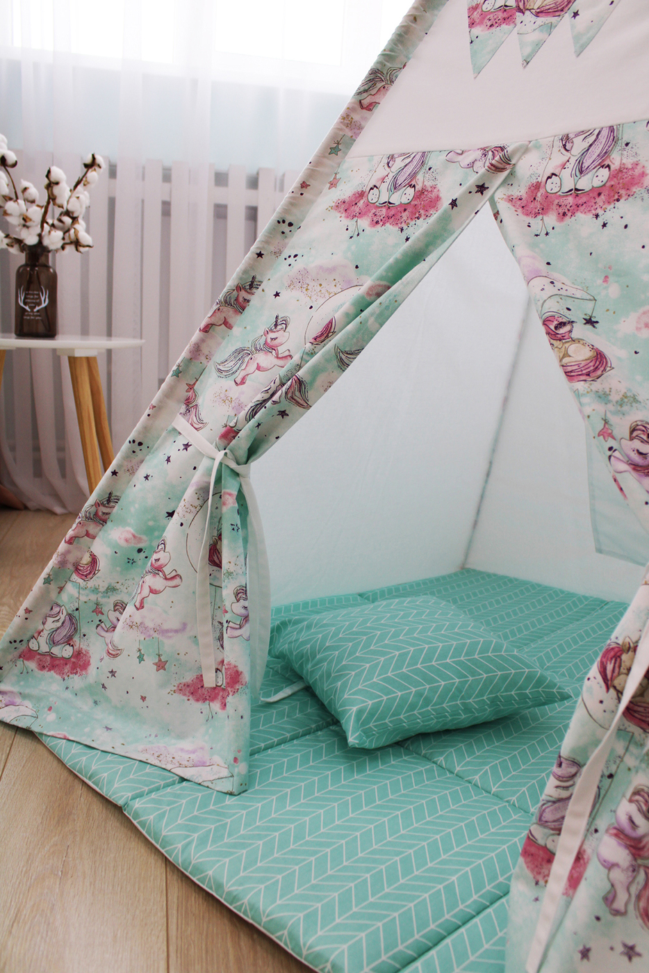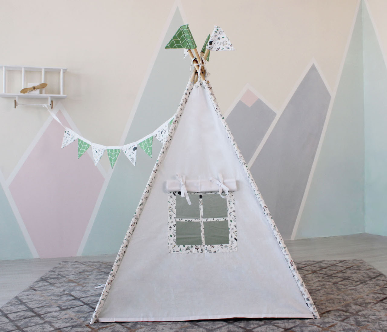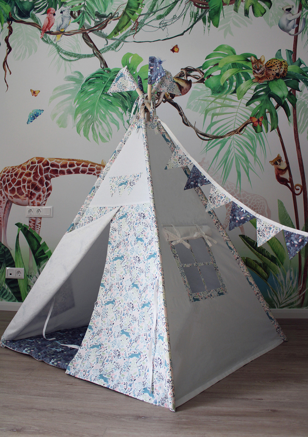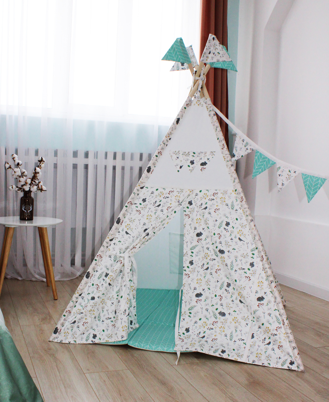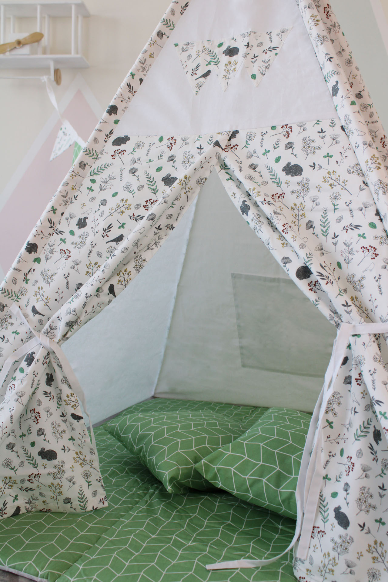 Детский вигвам Летняя полянка, с окошком, ковриком и системой антискладывания (стартовый комплект)
