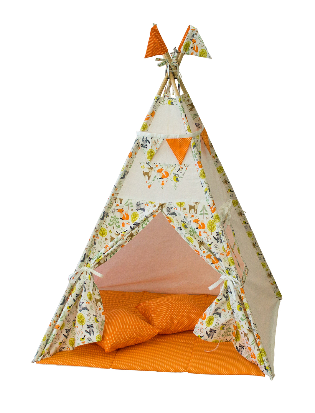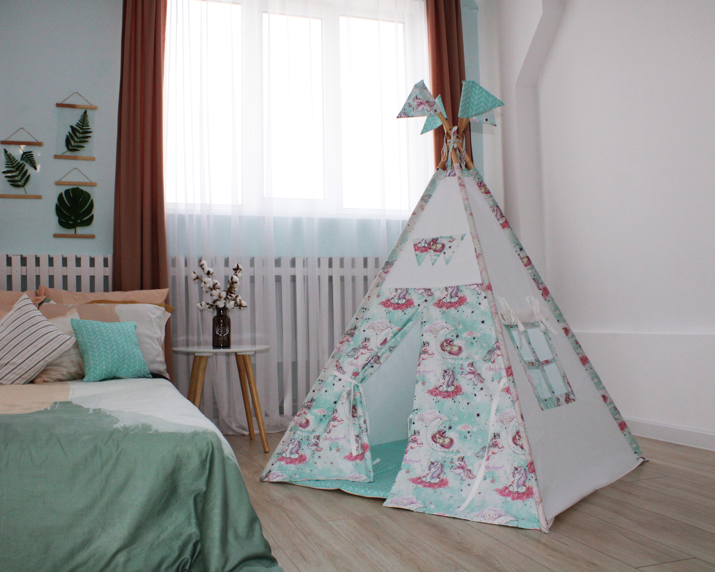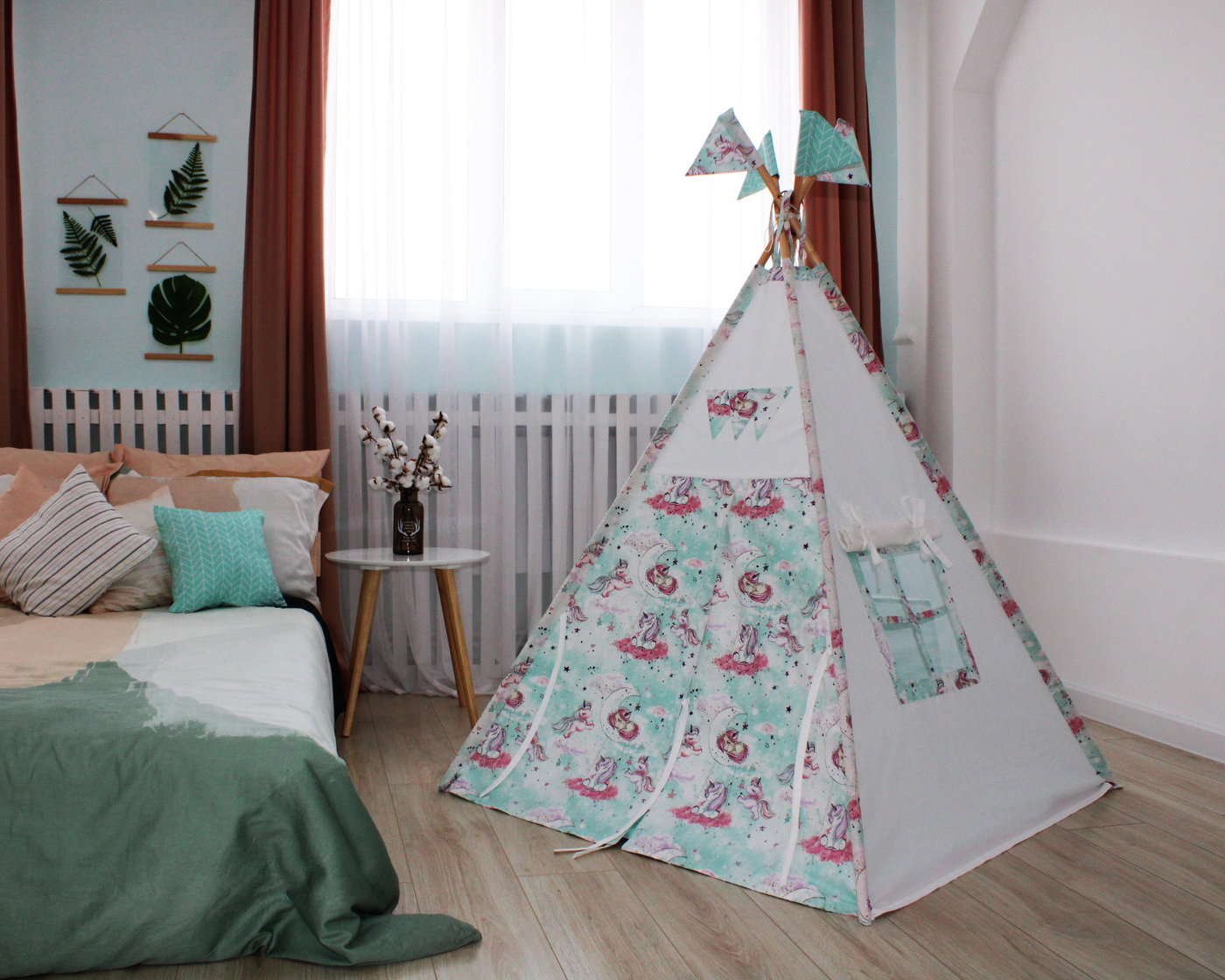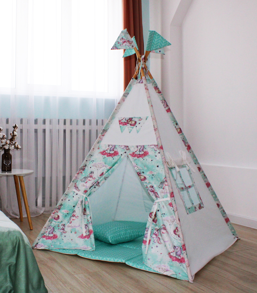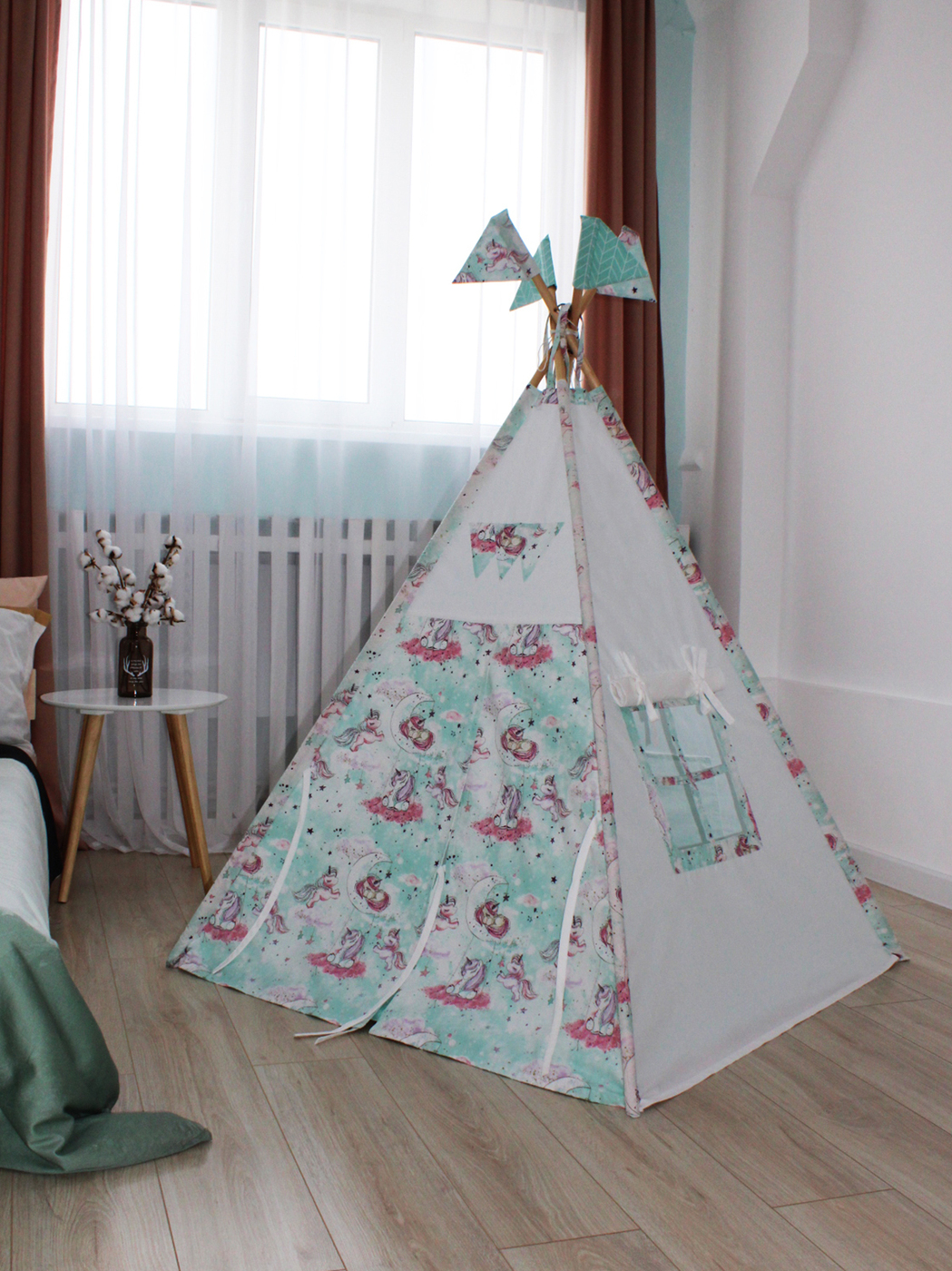 Детский вигвам Летняя полянка, с окошком, ковриком и системой антискладывания (стартовый комплект)