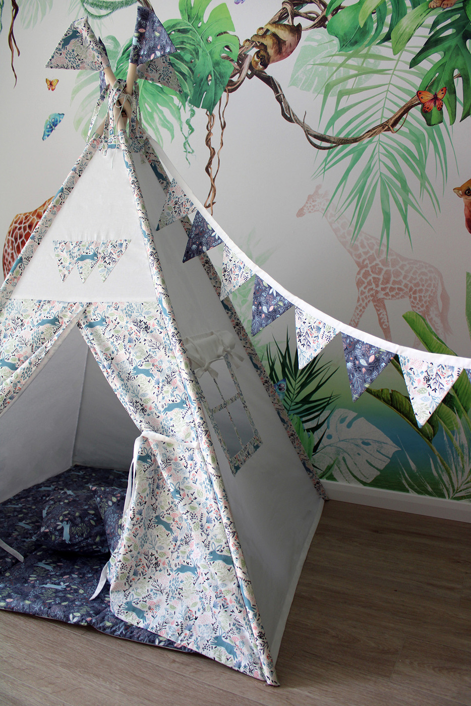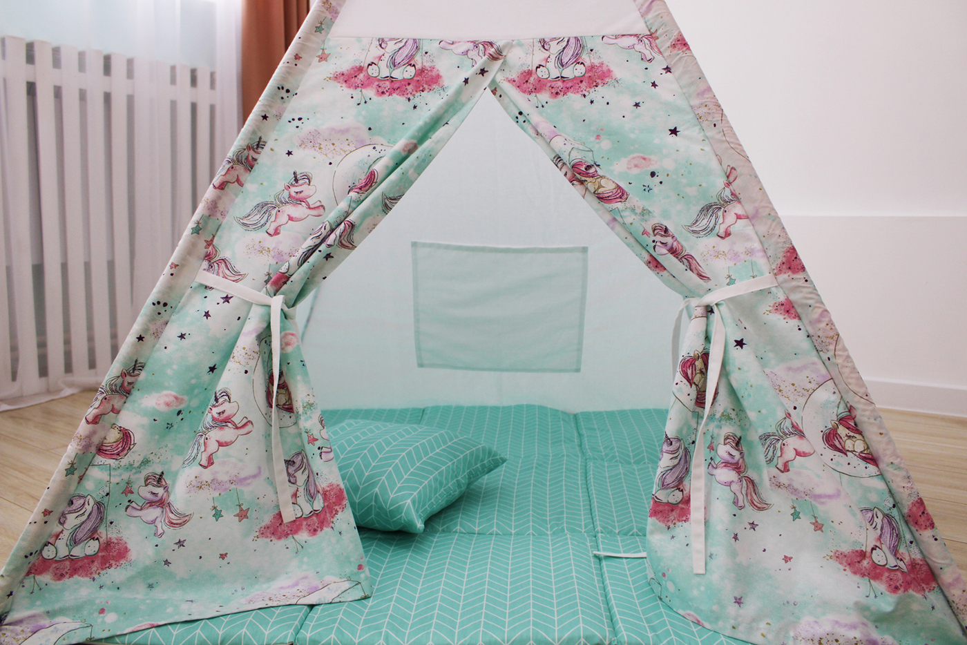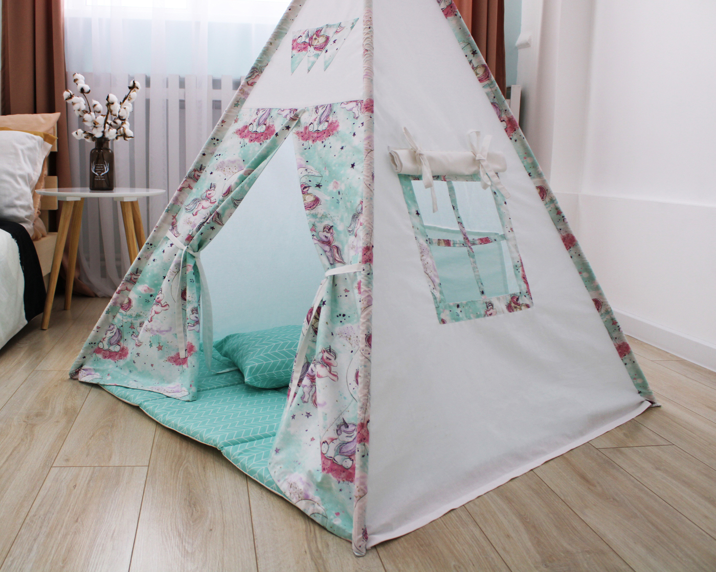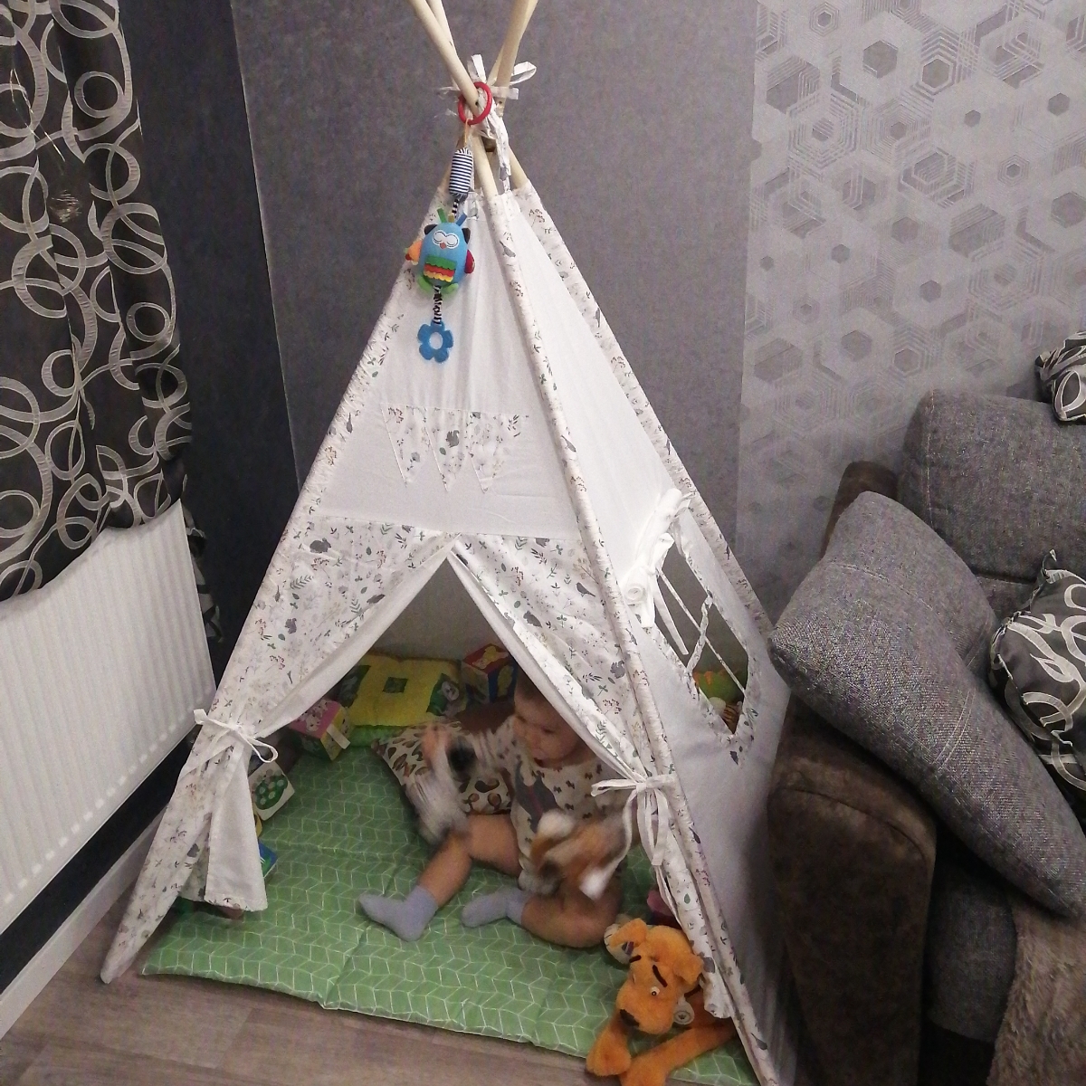 Детский вигвам Летняя полянка, с окошком, ковриком и системой антискладывания (стартовый комплект)
