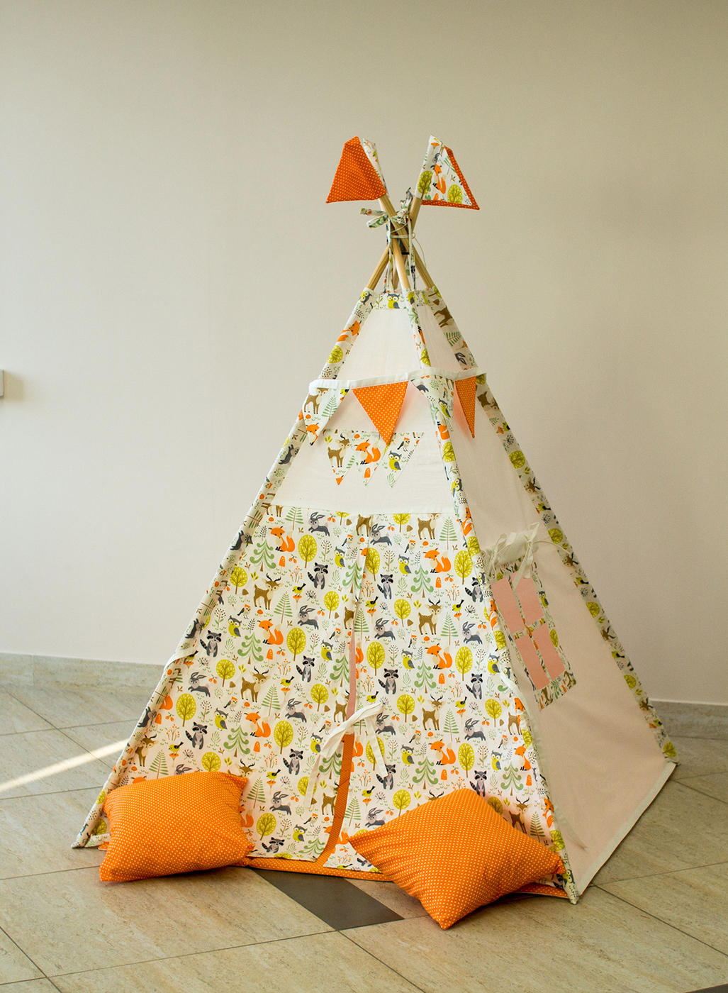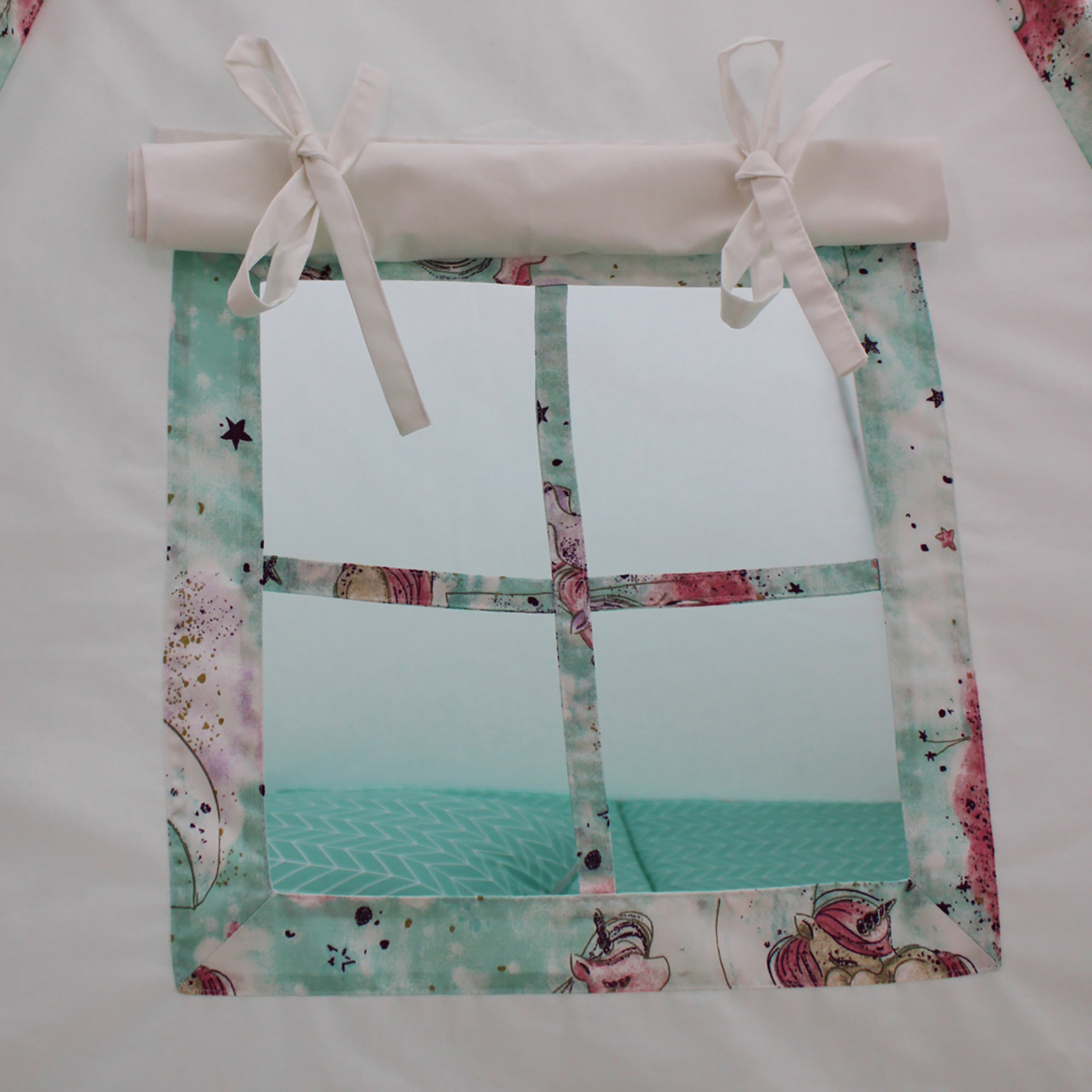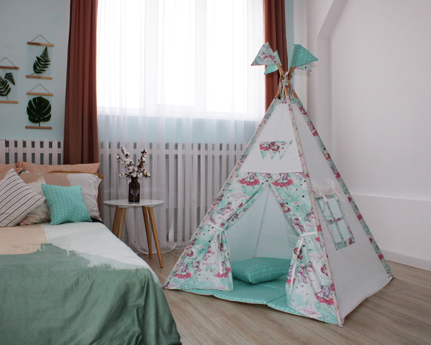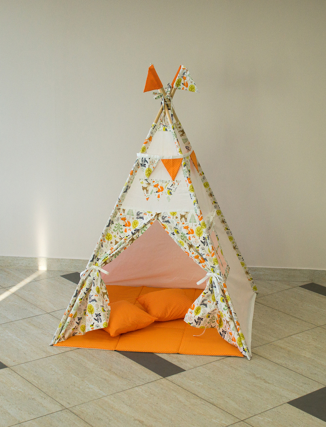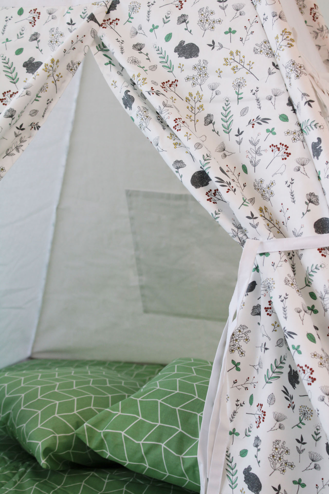 Детский вигвам Летняя полянка, с окошком, ковриком и системой антискладывания (стартовый комплект)