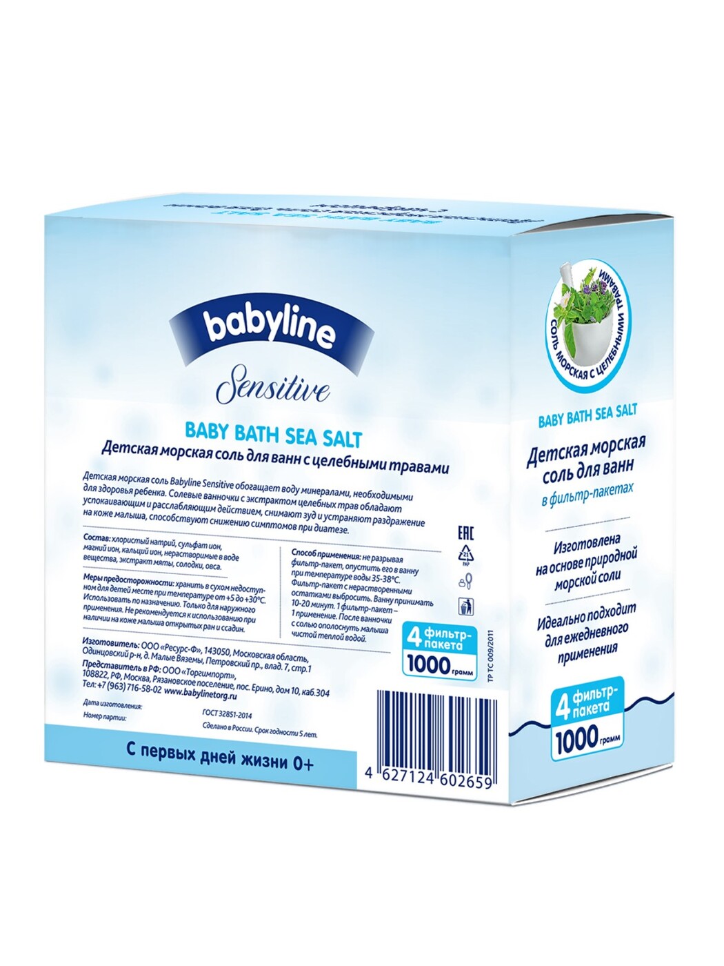 Babyline Sensitive Детская морская соль для ванн с целебными травами, 1000 г