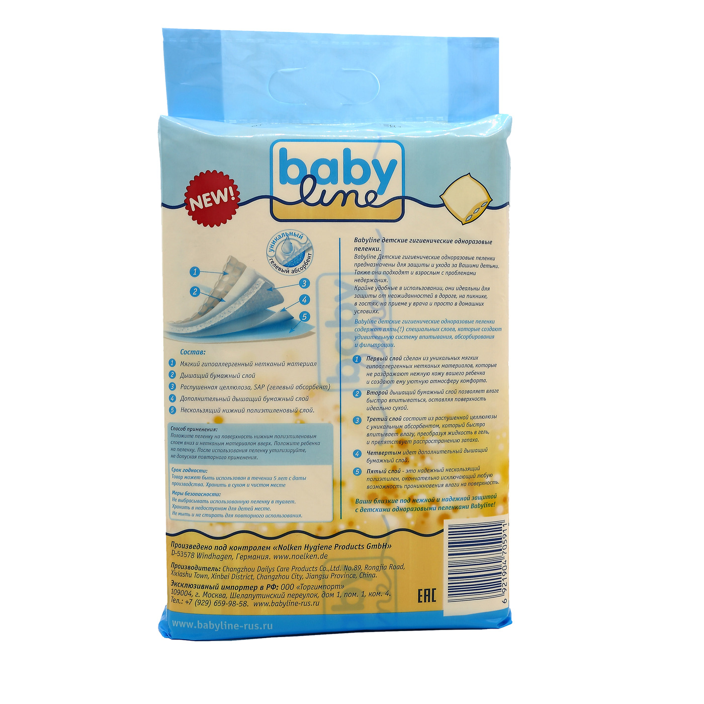 Пеленки детские BABYLINE, гигиенические, одноразовые, 60х70 см, 10 шт