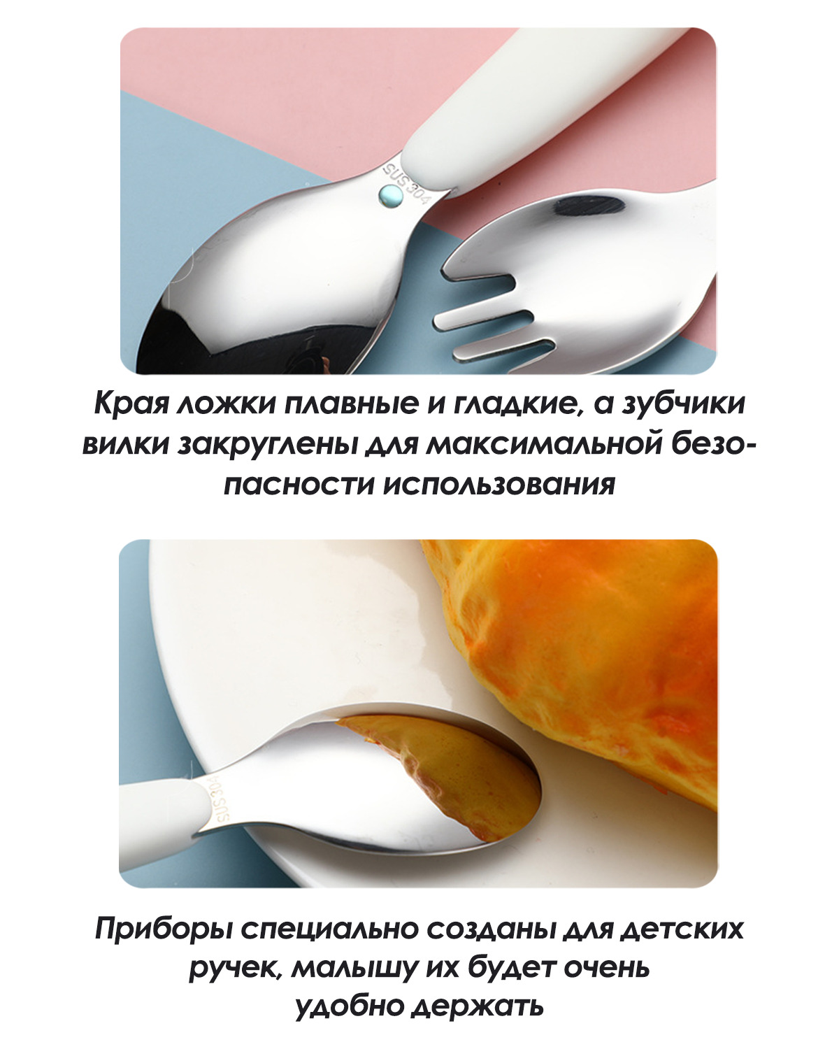Обучающий детский набор для кормления ложка и вилка/ Набор 2 шт. для первого прикорма