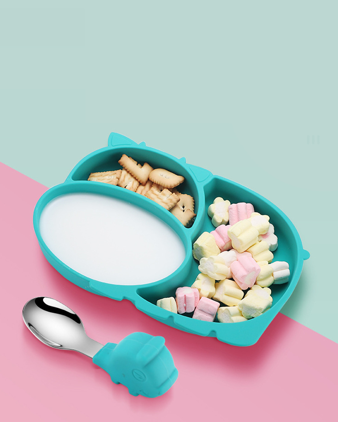 Силиконовая секционная тарелка Коровка на присоске + вилка и ложка, детская посуда для кормления