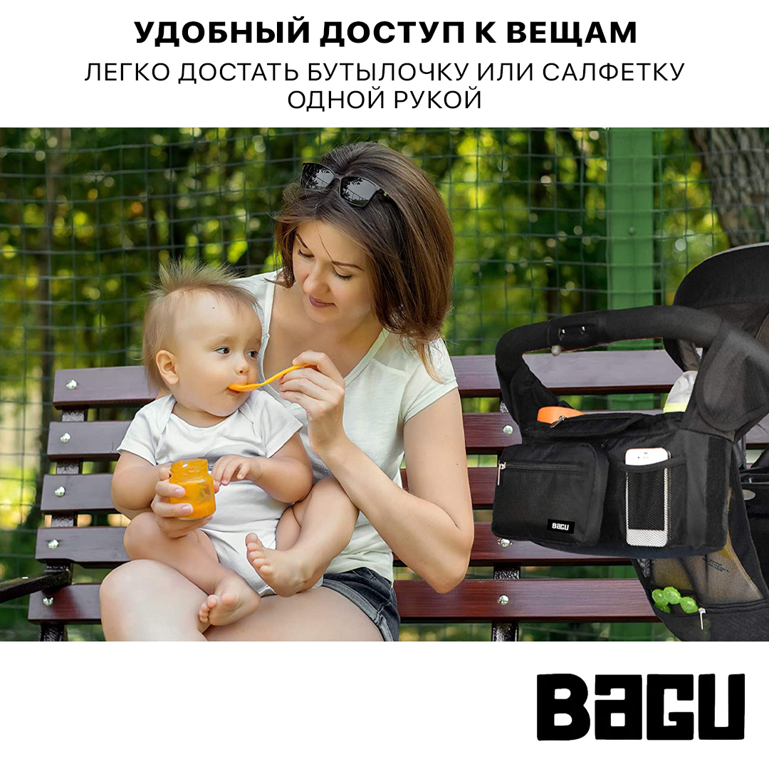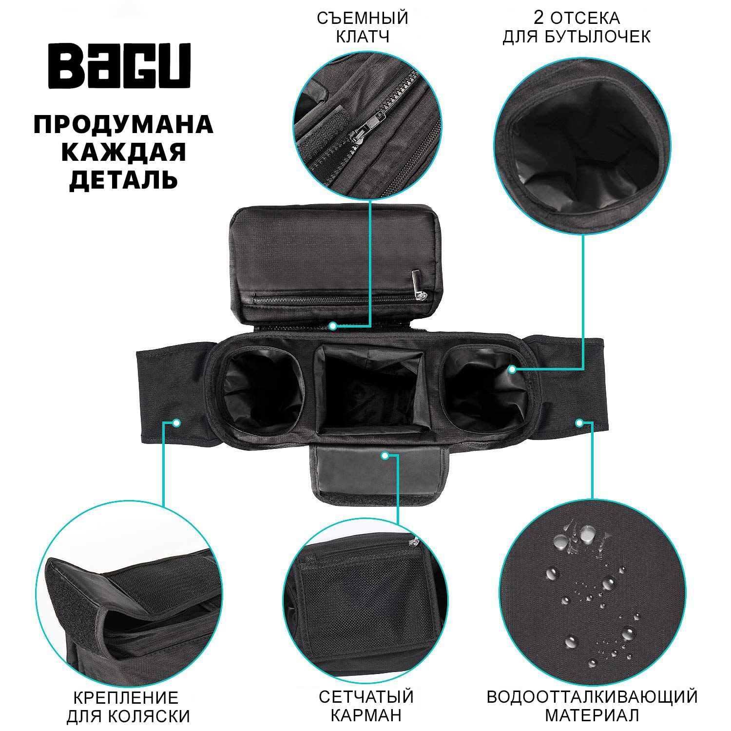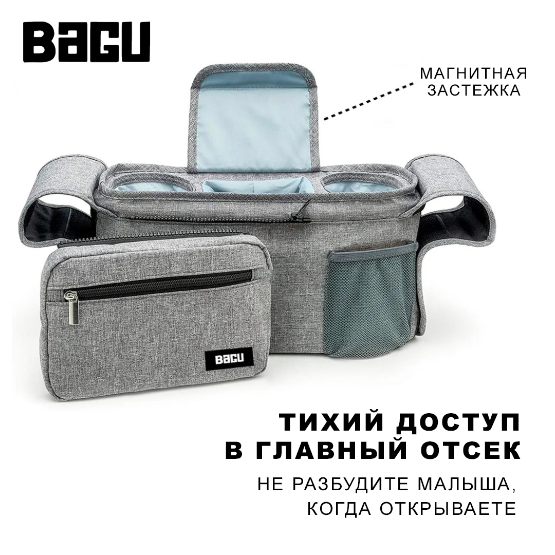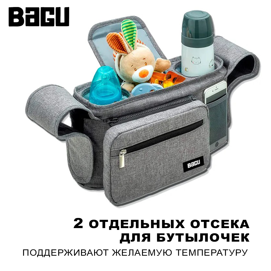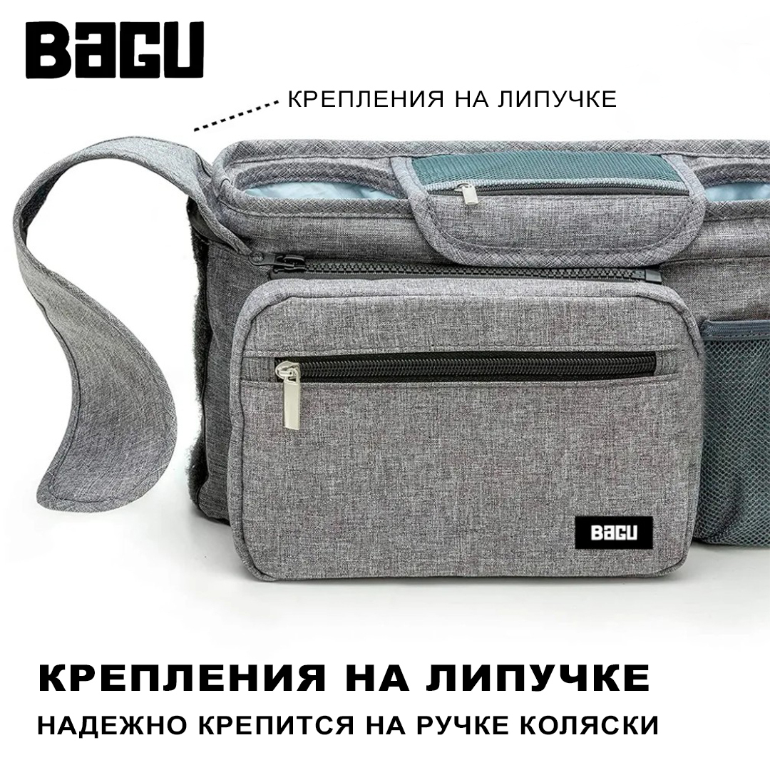 Сумка-органайзер для коляски, сумка для мамы на коляску, сумка на коляску BAGU, серая