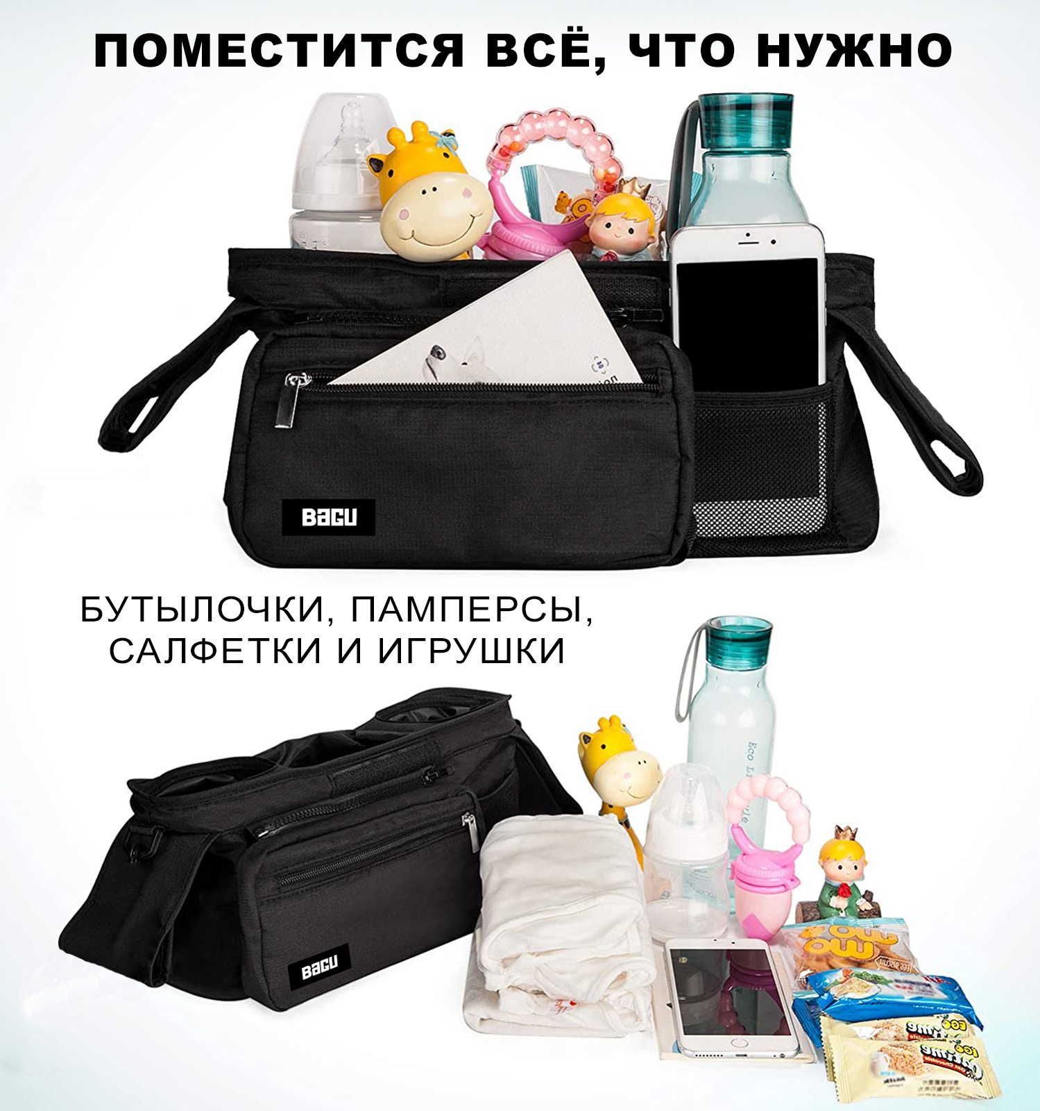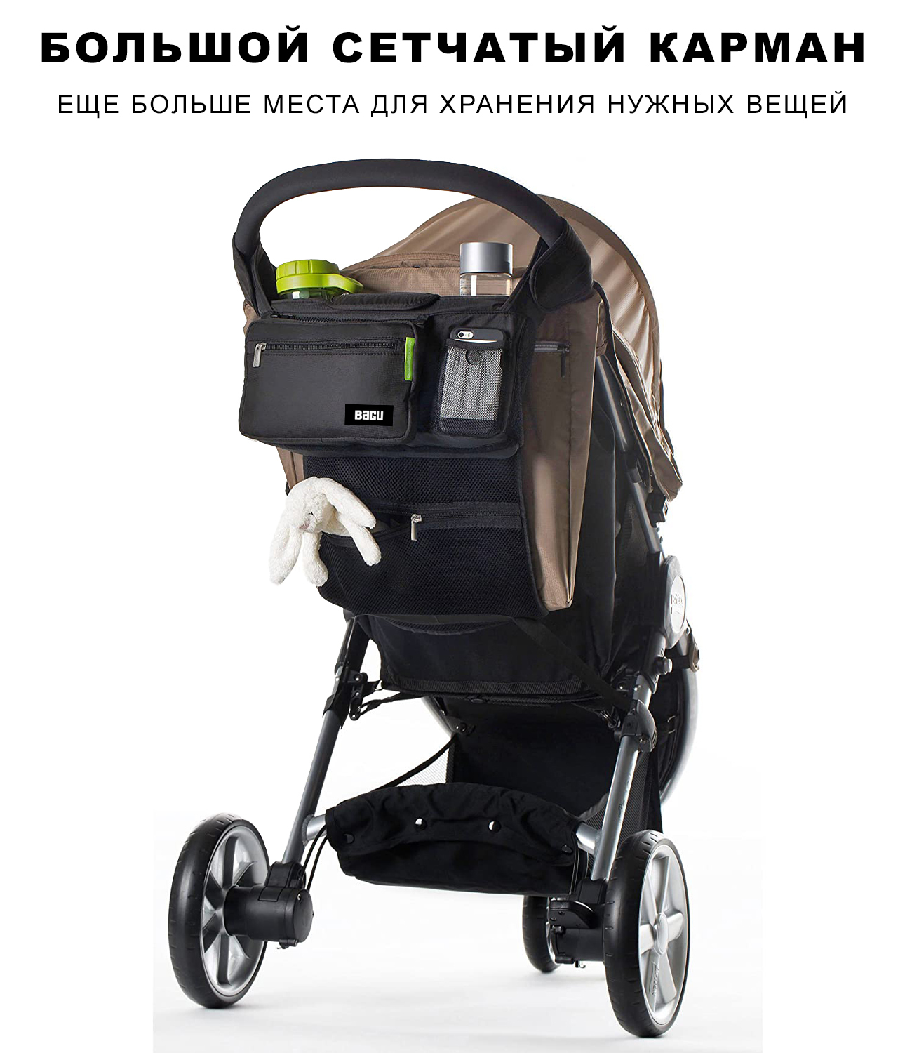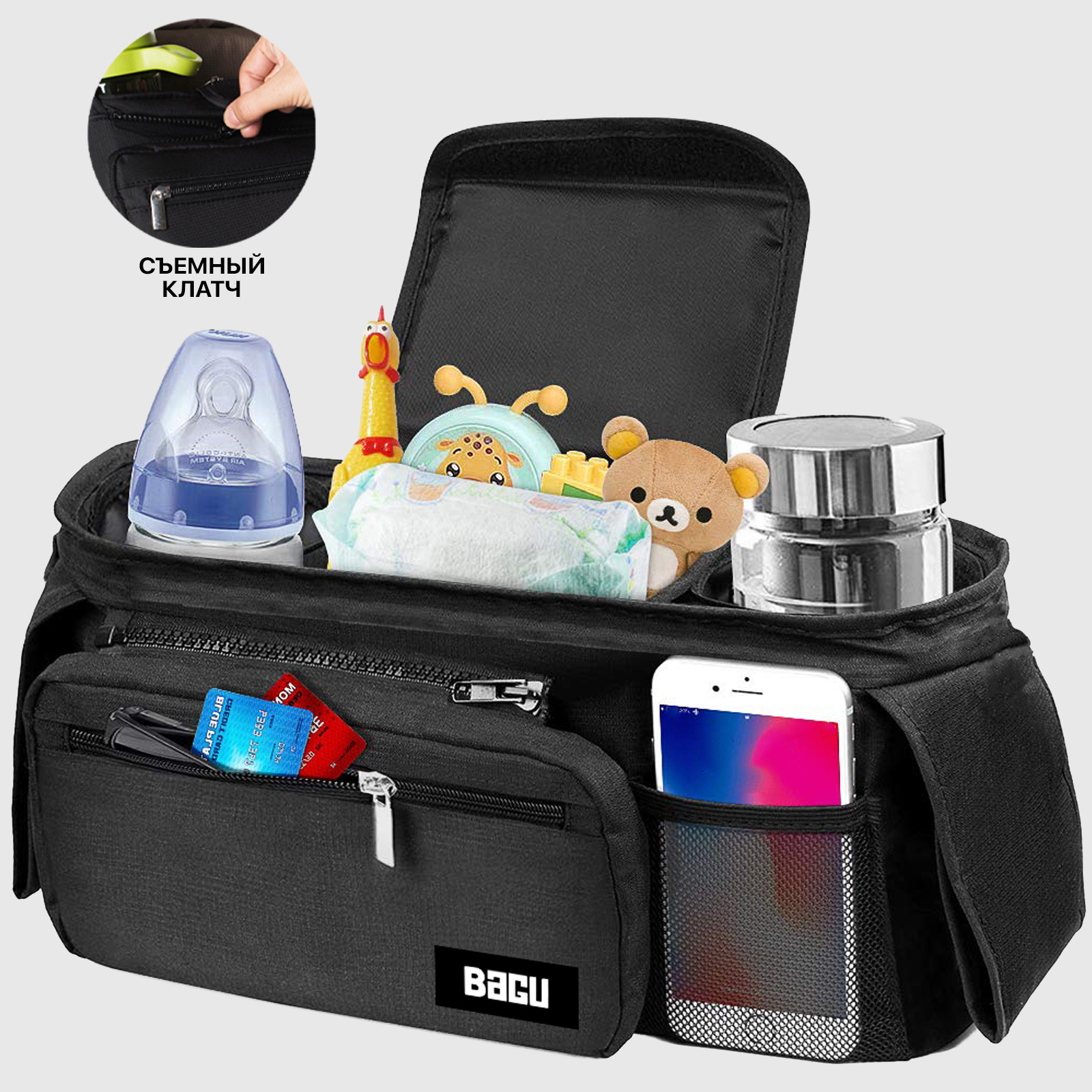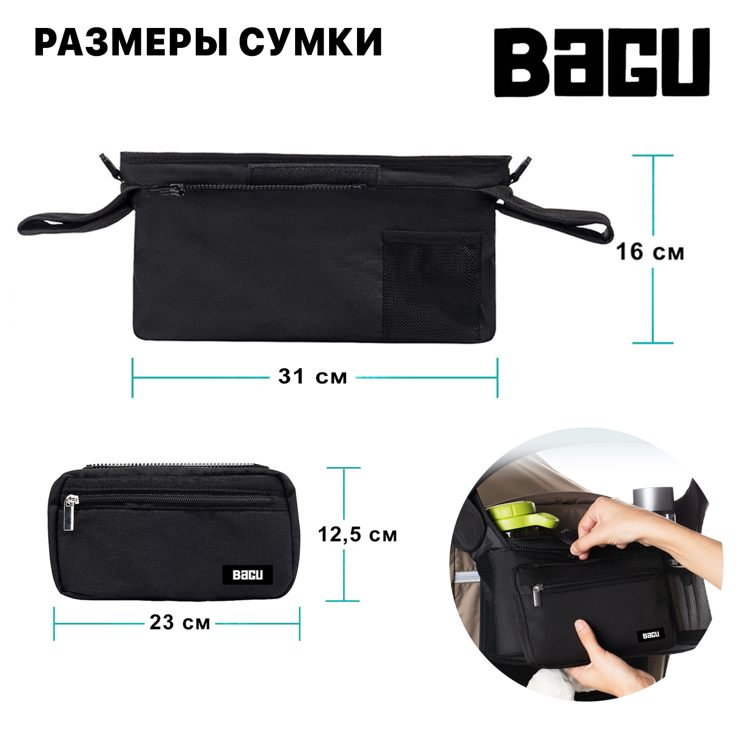 Сумка-органайзер для коляски, сумка для мамы на коляску, сумка на коляску BAGU, серая