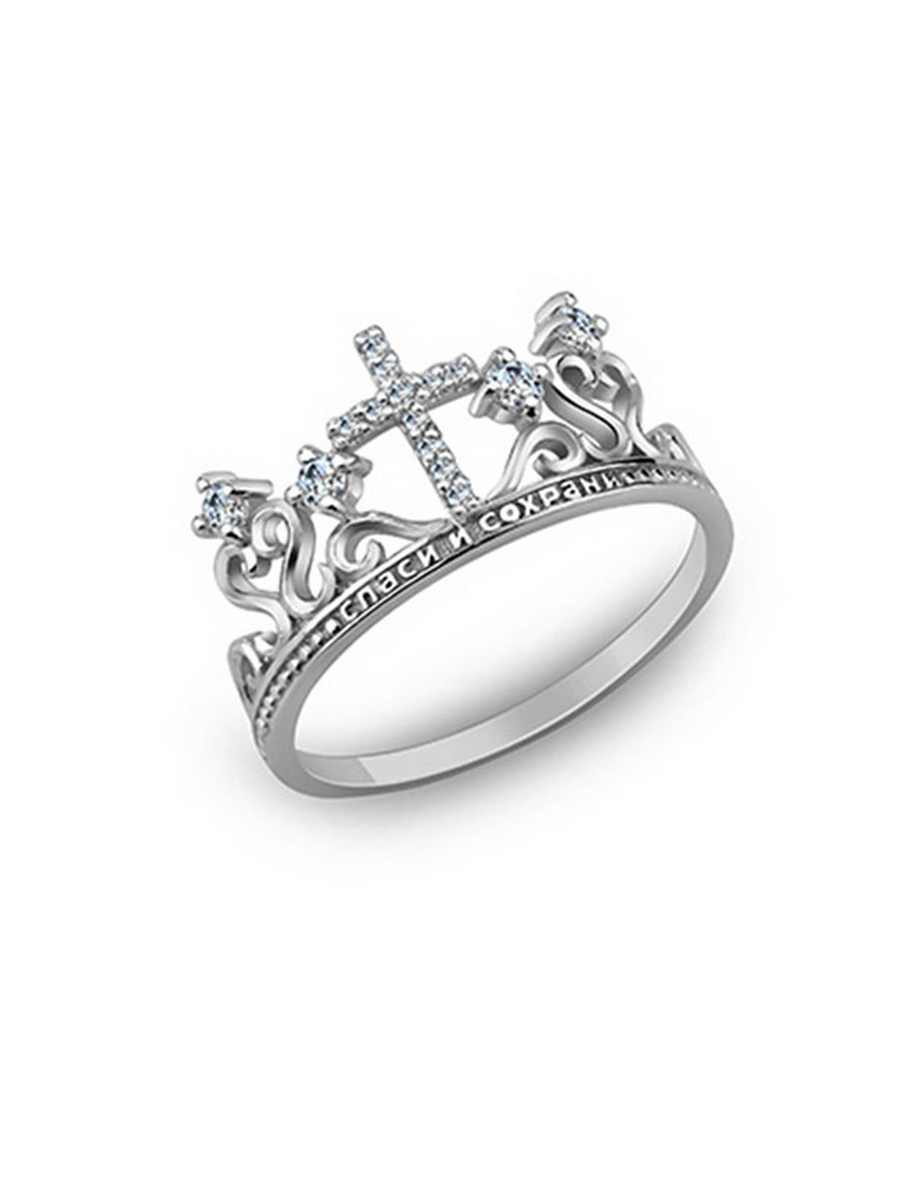 BALTSILVER Кольцо корона "Спаси и сохрани" из серебра с фианитами