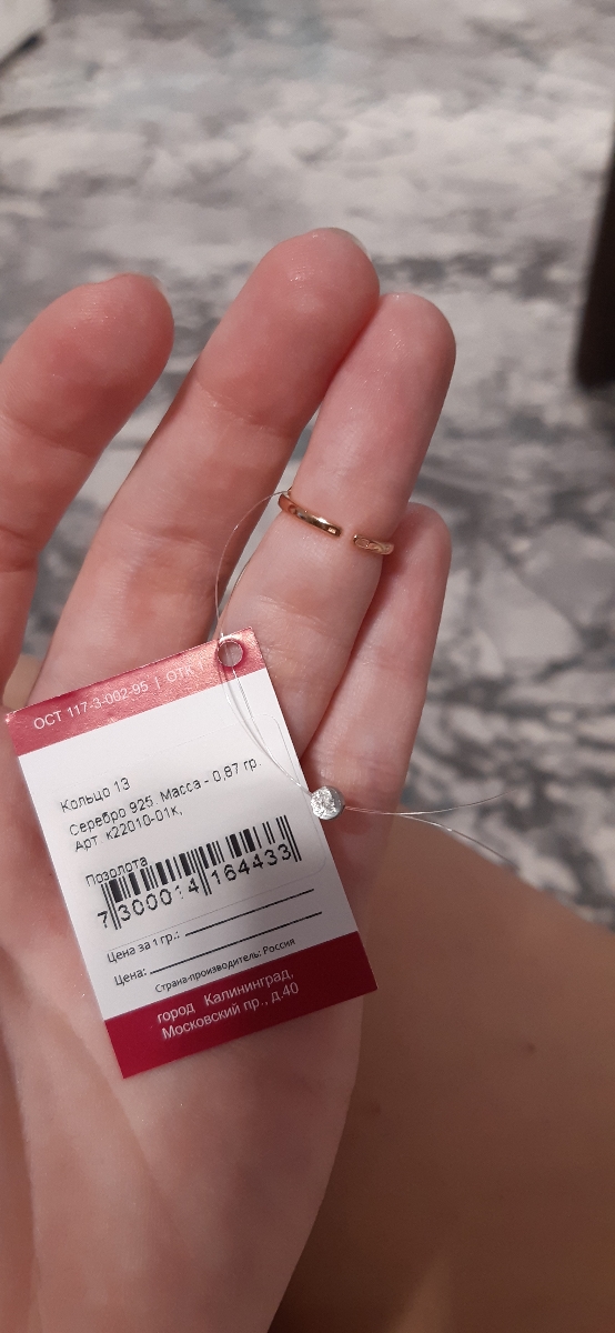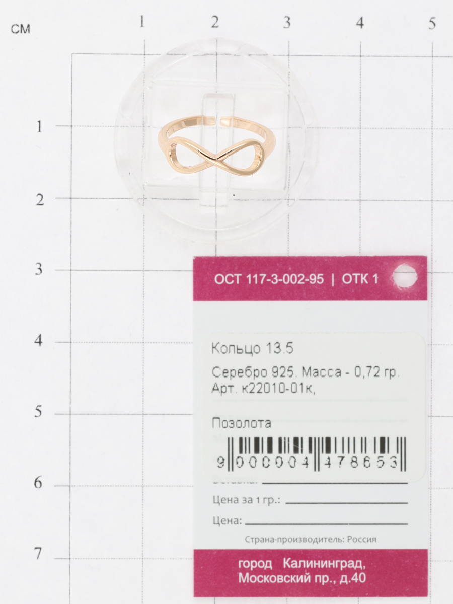 BALTSILVER Кольцо фаланговое бесконечность из серебра с позолотой