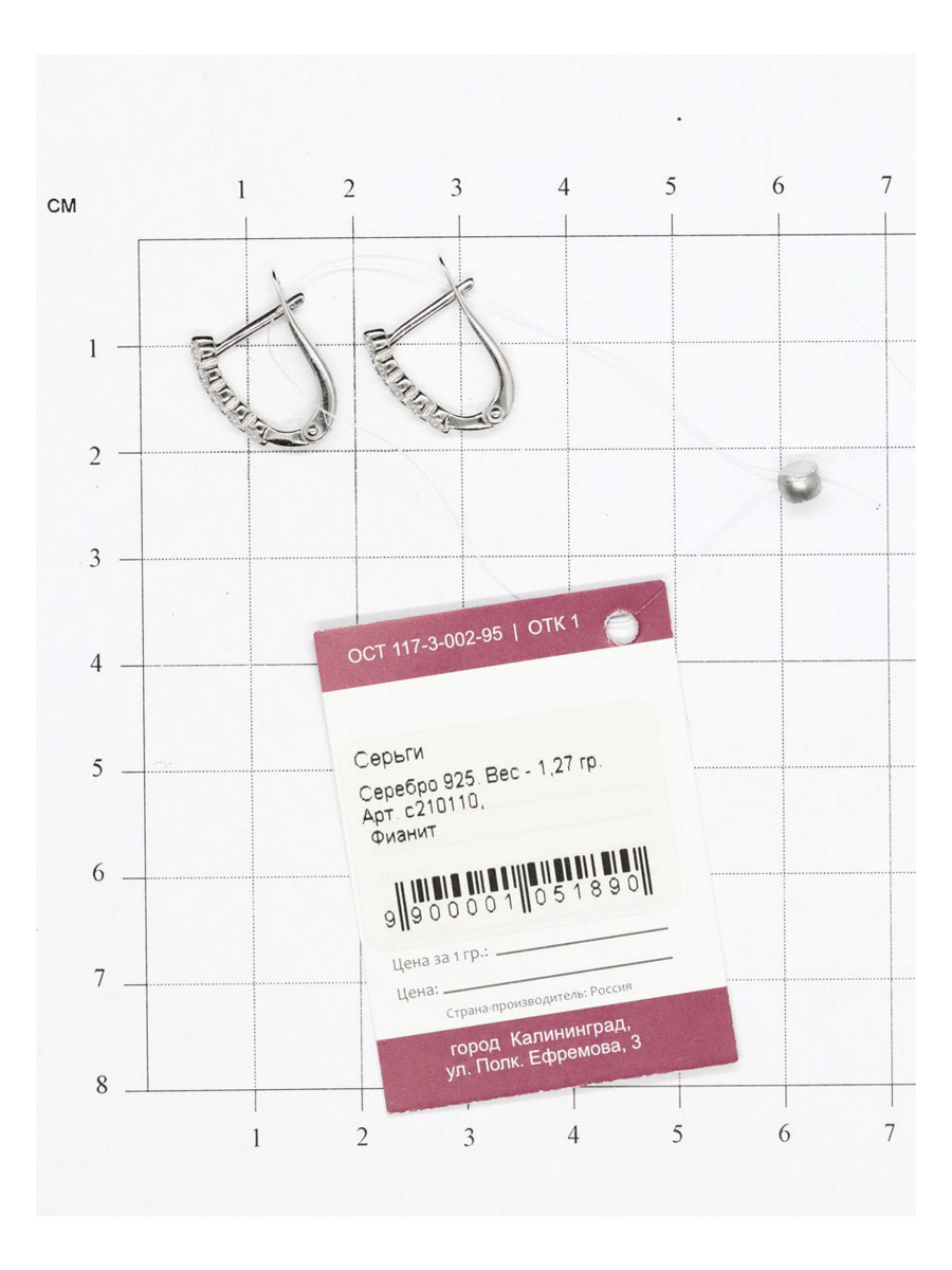 BALTSILVER Серьги дорожка из серебра с пятью круглыми фианитами