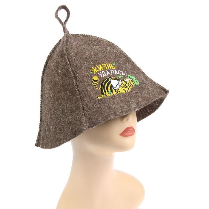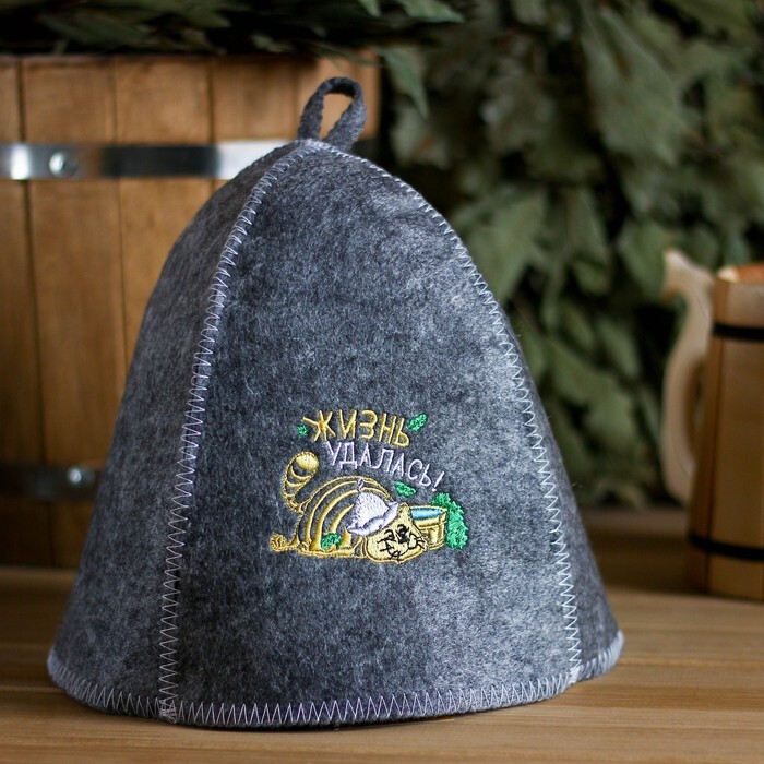 шапка с вышивкой из серого войлока "Жизнь Удалась!"