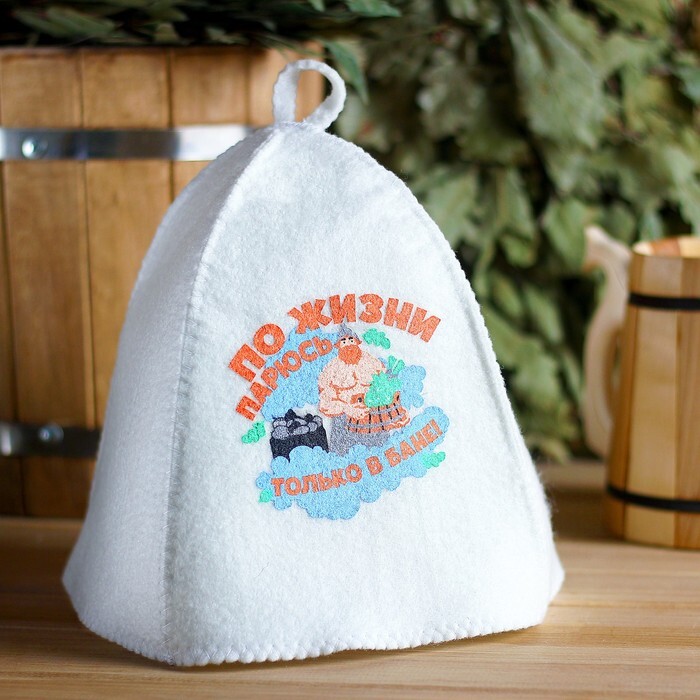 Шапка банная с шелкографией "По жизни парюсь только в бане!"