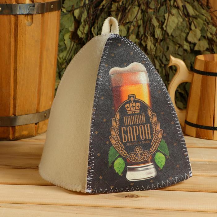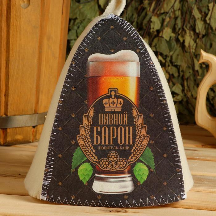 Шапка для бани "Классическая" с термопечатью "Пивной барон (корона)"