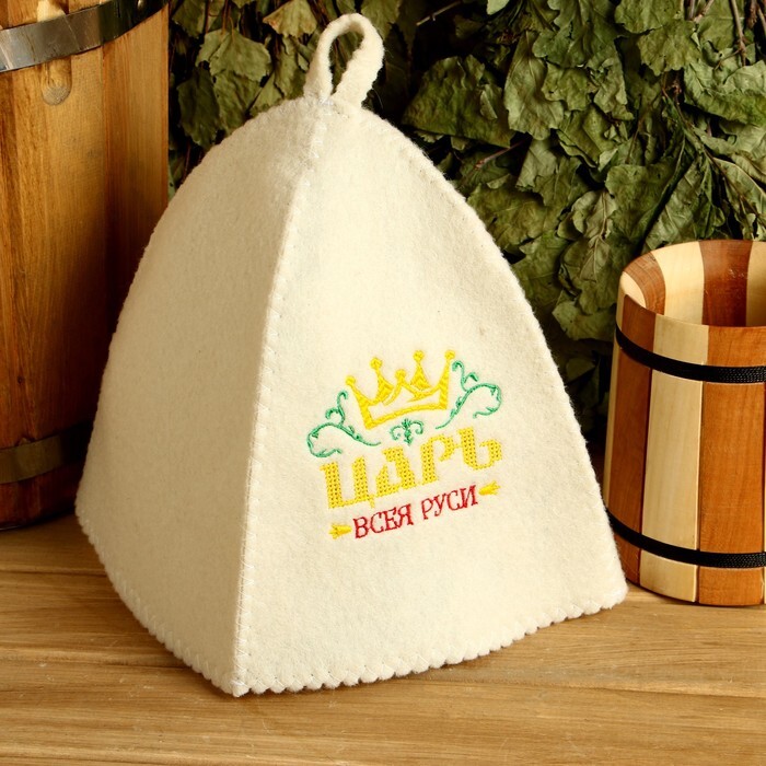 Шапка для бани с вышивкой "Царь всея Руси" белая