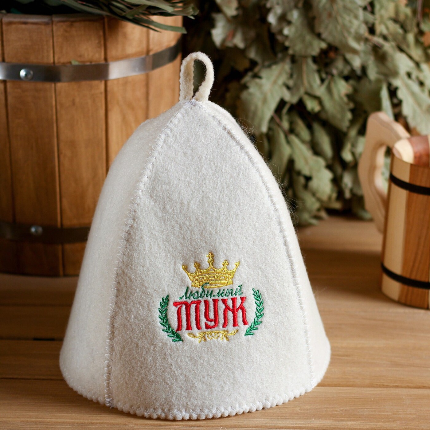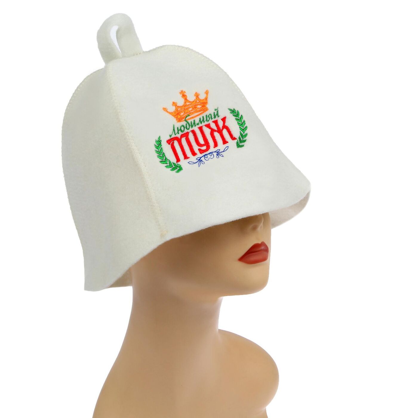 Шапка для бани "Классическая" с термопечатью "Любимая жена (девушка)"