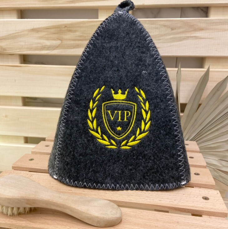 Набор для бани, сауны из войлока серого с вышивкой "Защитник отечества"