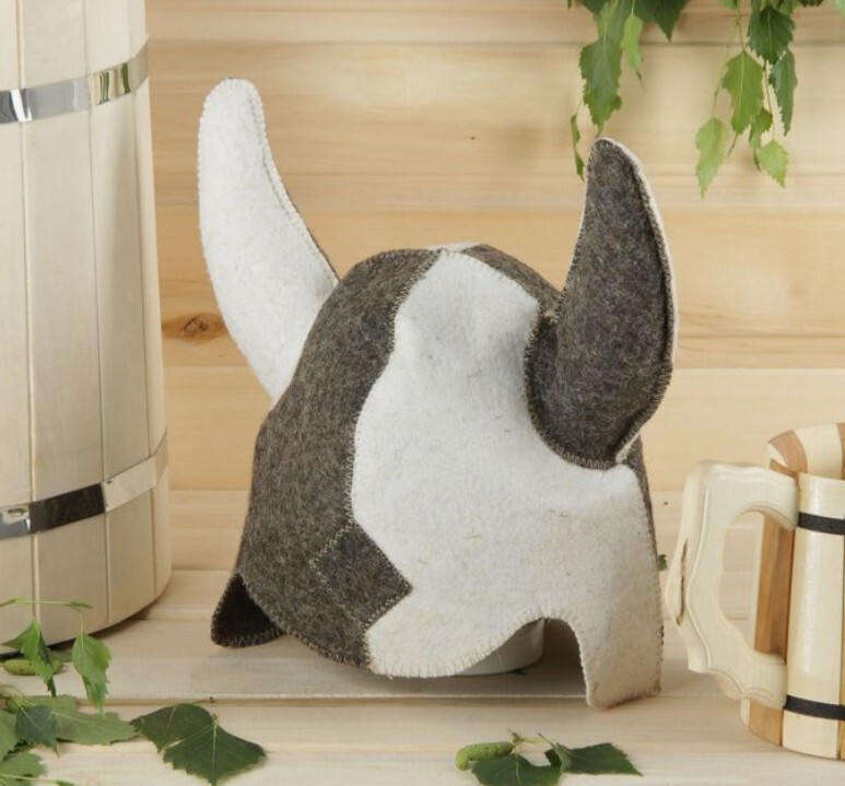 Шапка для бани, сауны из войлока белого с вышивкой " Барбер"
