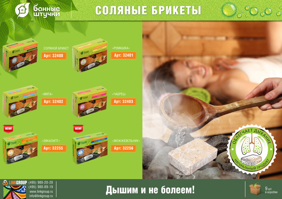 Банные Штучки Соляной брикет с травами для бани и сауны Мята, 1300 гр