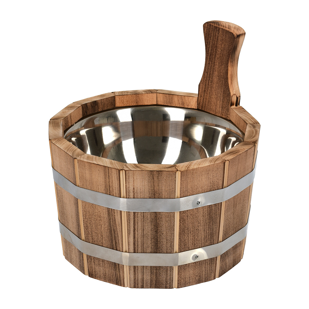 Ушат "шайка" 3,5 л. с нержавеющей вставкой, обожжённая липа, "Банные штучки"